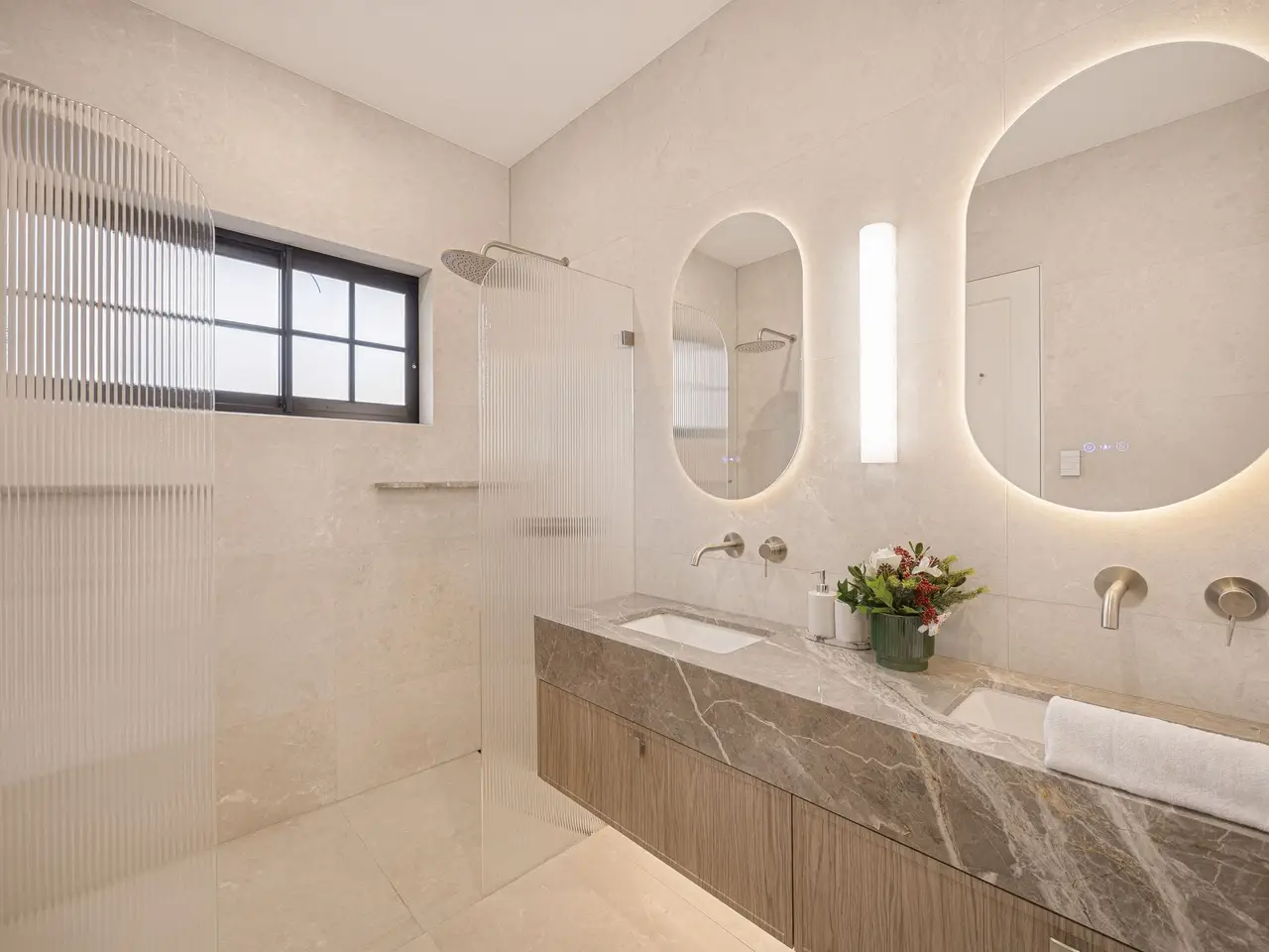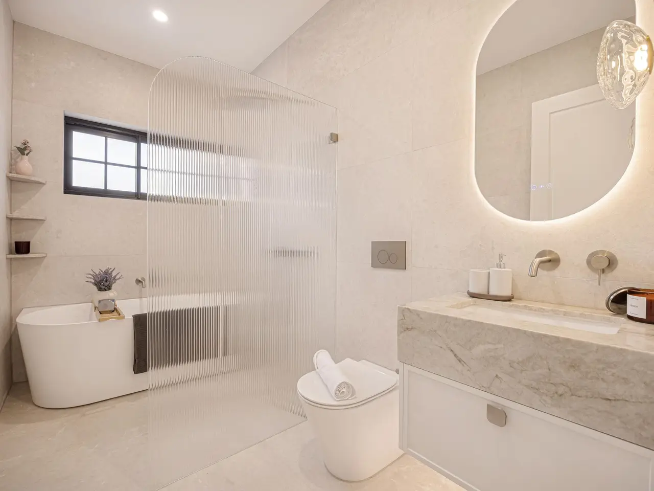 Luxurious fully tiled bathrooms with soaking tub