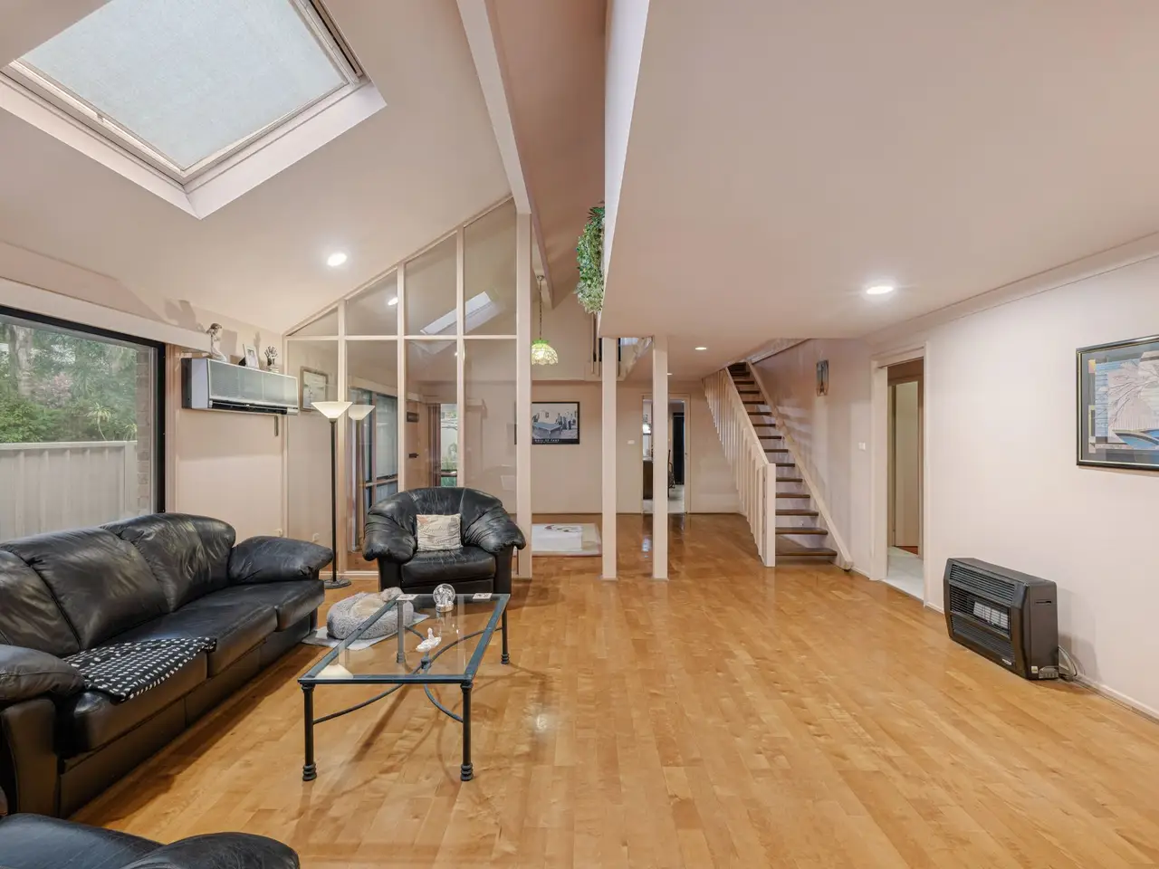 Set on a quiet, tree-lined street adjoining Strathfield Park, this north-to-rear-facing residence celebrates its leafy setting while offering space, privacy and a relaxed family lifestyle. Sunlight fills the interiors through skylights, highlight windows and vaulted ceilings, accentuating polished timber floors and a series of formal and casual living spaces. The backyard features an extensive all-season terrace with a barbecue, overlooking the gated pool and landscaped gardens. This classic home is well-maintained yet offers future scope to add your personal touch in a high-growth location. - Well maintained classic family home within Strathfield's Golden Mile precinct - Elegant collection of formal and casual living spaces set across two versatile levels - Full-width all-season alfresco terrace with built-in barbecue overlooking the pool - Well-maintained kitchen features timber cabinetry, gas appliances and dishwasher - Four bedrooms with built-ins, master suite with private balcony and elevated views - Two full bathrooms both with soaking tubs, one includes a luxe step-up spa bath - Features enjoy high cathedral-style ceilings, extensive highlight windows, skylights - Polished timber floors, air-conditioning, original fittings across both sunlit levels - Potential to renovate, personalise, enhance or add value in a high-growth area - Double garage with internal access, gated block boarded with landscaped gardens - Set within footsteps from Strathfield Park and within reach of elite schools and stations