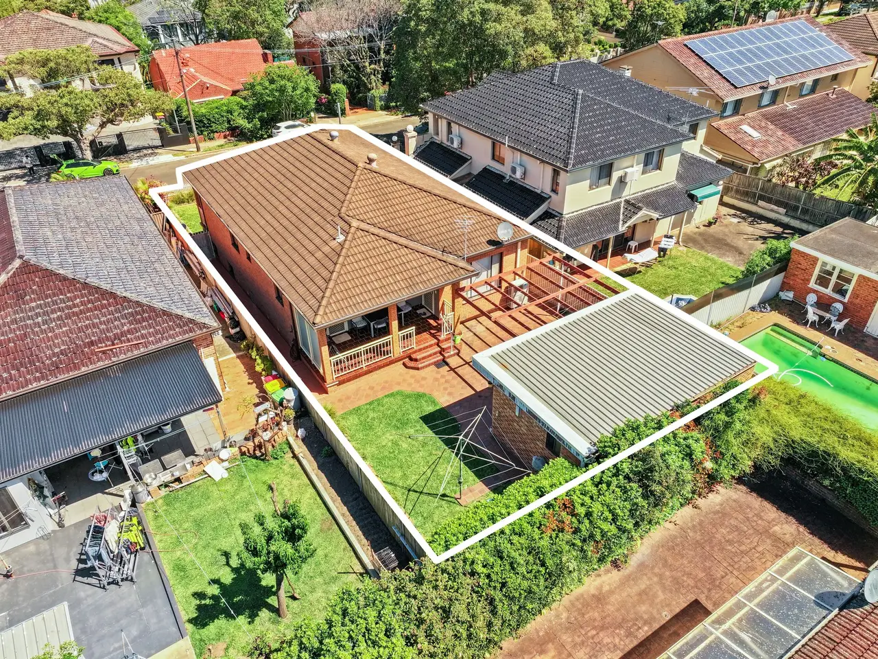Beautifully presented and designed for family versatility, this north-to-rear facing residence combines timeless comfort with a superb sense of space and natural light. Perfectly positioned within 1.5km of Strathfield Station and elite local schools, it ensures everyday convenience in a highly sought-after pocket. The home's adaptable layout offers a series of indoor and outdoor living zones, complemented by a private detached workshop. - Versatile layout with multiple living zones across a light-filled, dual-level design - North-facing yard framed by manicured hedges, ensuring privacy and warmth - Detached workshop with bathroom and kitchen facilities, perfect for an extended family - Elevated front verandah, alfresco terrace, open-air patio for private entertaining - Well-maintained timber kitchen featuring a dishwasher and quality gas appliances - Three generous bedrooms, each fitted with built-in robes, polished timber floors - Full main bathroom with a corner spa tub plus an additional guest w/c and laundry - Timber flooring, large highlight windows and a welcoming ambience throughout - Double garage with internal access, plus driveway parking, and plenty of storage - Conveniently located close to city transport, shopping and prestigious schools