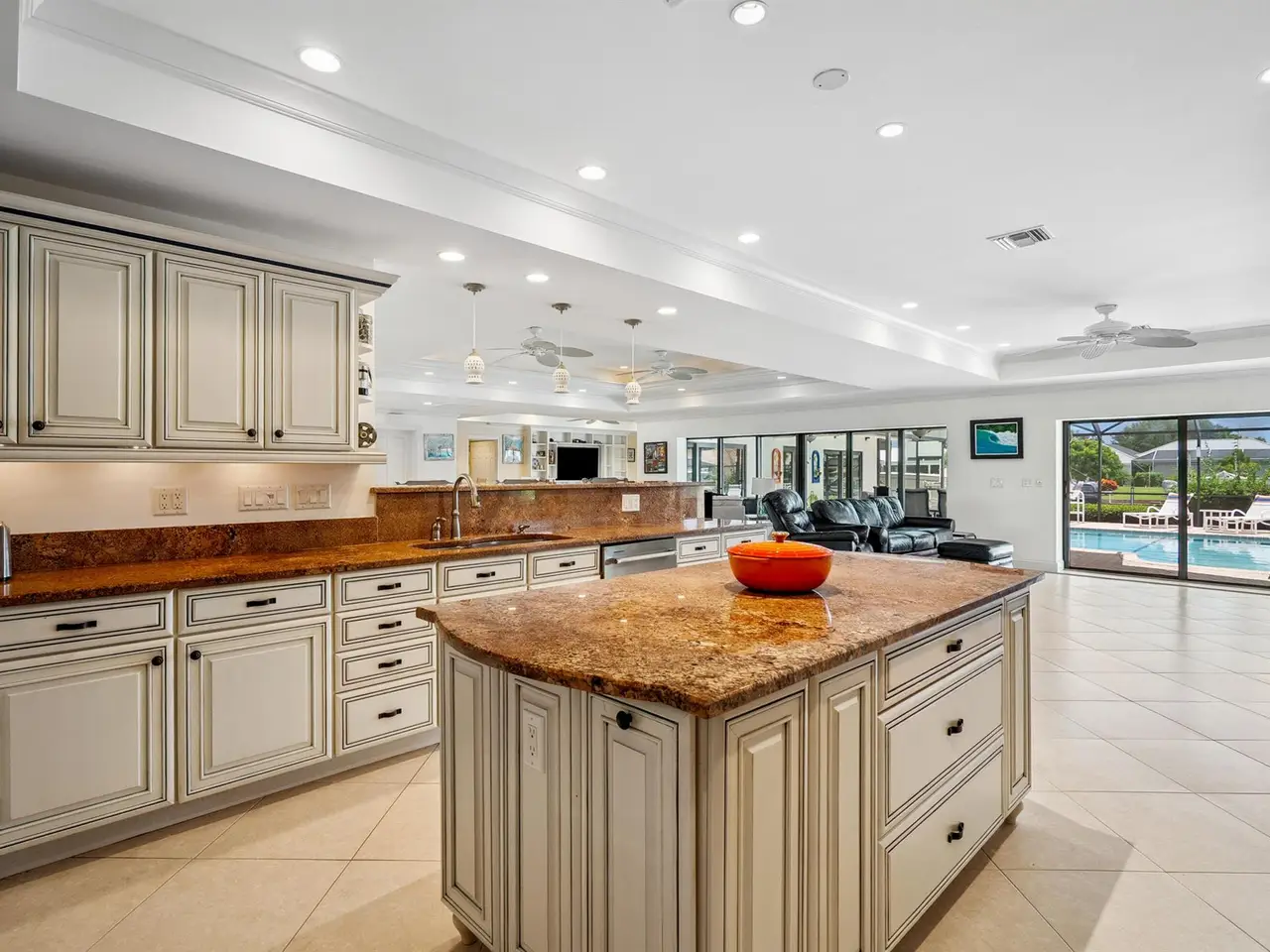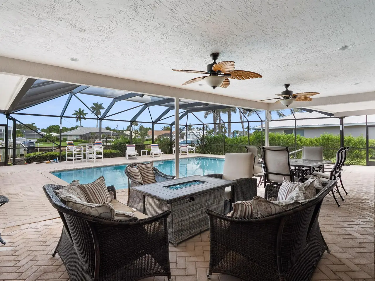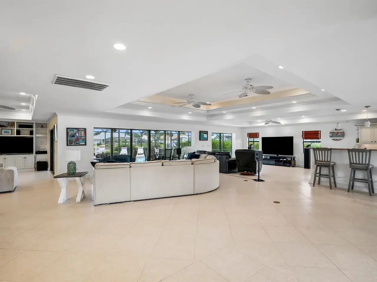 Welcome Home to your impeccably renovated 3-bdrm, 3-bath waterfront home with private dock located in the prestigious, guard-gated Stuart Yacht & Country Club. Perfectly positioned on a quiet cul-de-sac with direct canal access, this residence blends luxury living with effortless coastal charm. Designer chef's kitchen boasts custom cabinetry, Thermidor 6‑burner gas range & wall oven, wine fridge and newer S/S fridge, dishwasher & microwave. Airy and open living area perfect for entertaining or just relaxing, impact glass window's/sliders throughout, owner's suite w/ spa bath; 2 en‑suite guest rooms. Step through the sliders to your newly screened lanai and stunning pool! 30,000 lb boat lift with newer Seawell cap and tiebacks (2019). Enjoy this low HOA gated community with golf