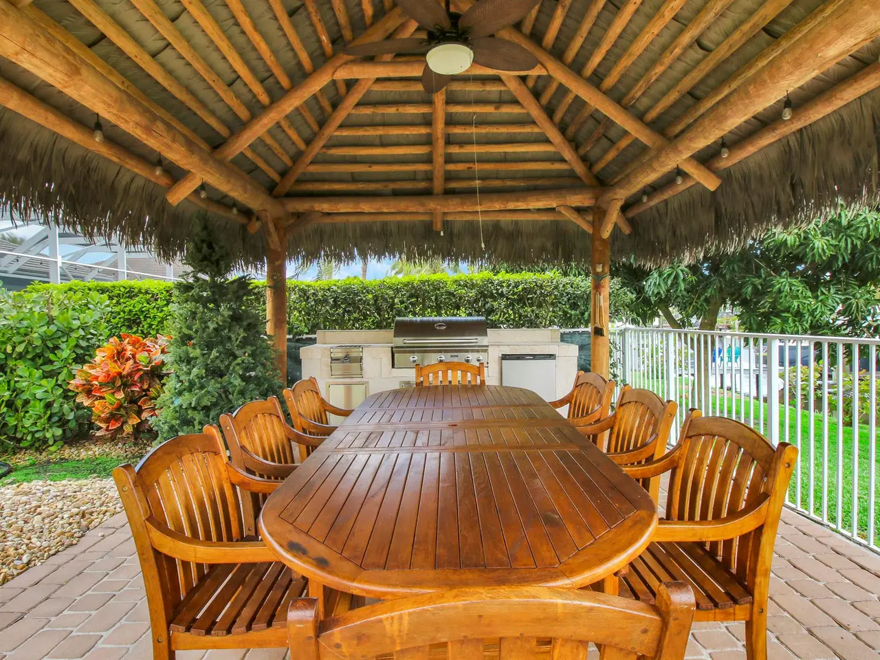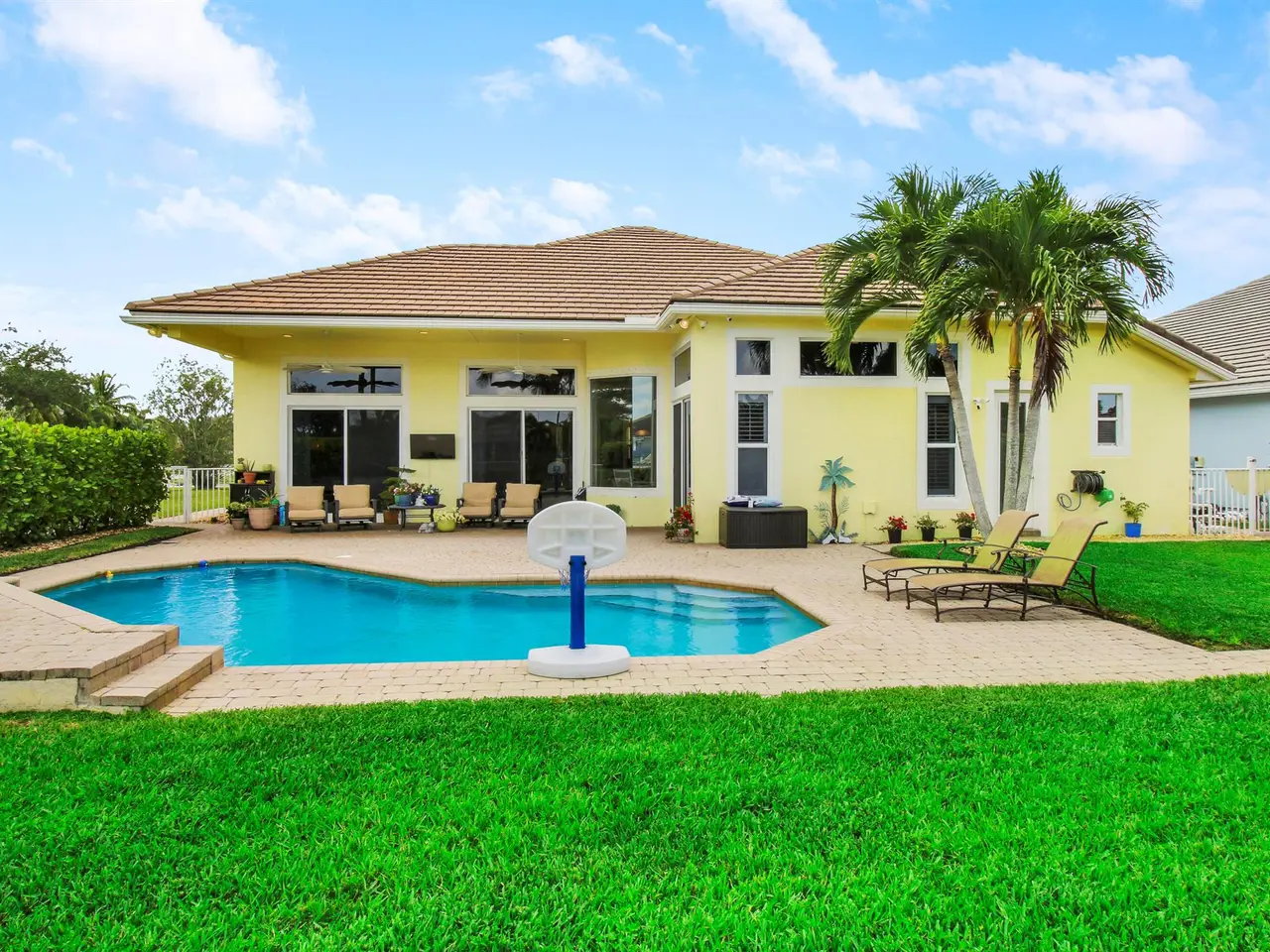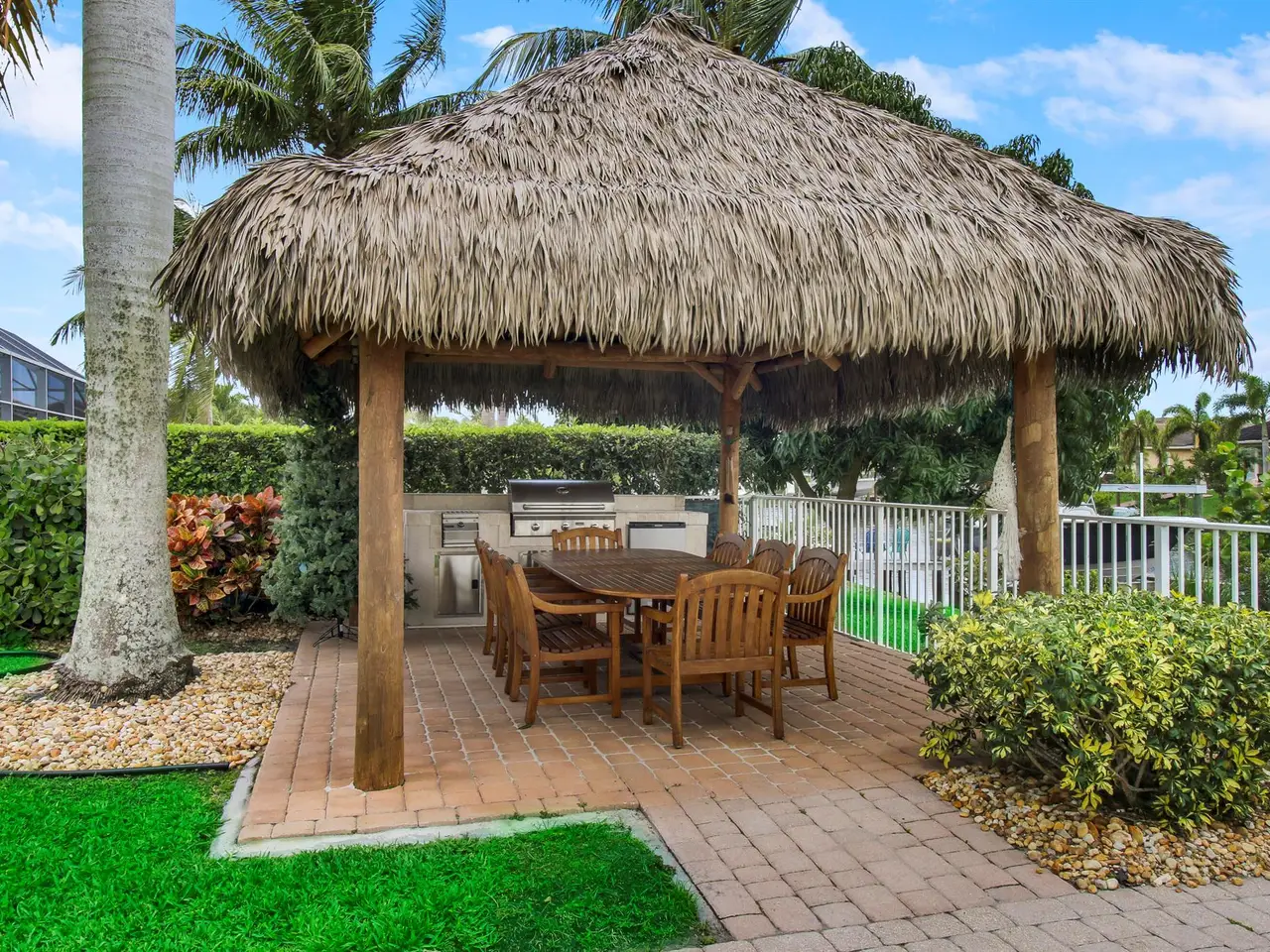 Come see this impressive waterfront pool home located in a gated boating community. This 4 bedroom (plus den/office), 3 bath home is on a deep-water canal with a dock (updated in 2020) and a 13K lift located behind the home with ocean access and no fixed bridges. Great outdoor living with a fenced backyard with an awesome heated saltwater pool and a Tiki Hut with a built-in outdoor style kitchen, lush landscaping and on a corner-lot add to a private setting. The interior of the home is nicely appointed with formal dining and living room and a large combo kitchen and family room. The kitchen comes with stainless steel appliances, 42'' cabinets, granite countertops, double oven, and a center island. Large 3 bay garage allows for good storage. Both A/C units replaced in 2023. Whole house Generac 22kw generator installed in 2020. Easy access to I-95.
