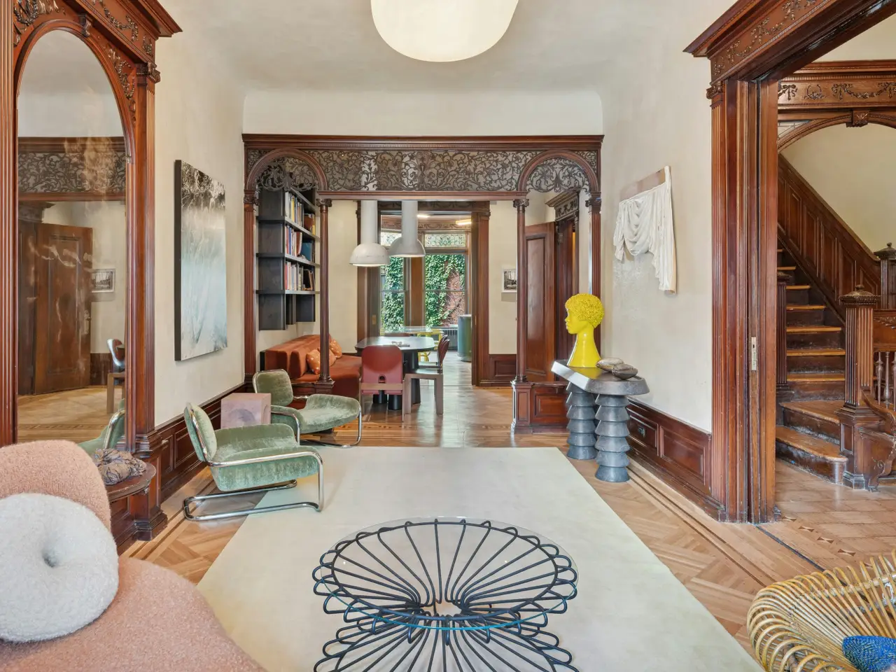386 Stuyvesant Avenue was constructed in 1894 and is located on the prestigious "Doctor's Row" in Bedford Stuyvesant Brooklyn. Embodying all of the charm, exquisite craftsmanship and masterful attention to detail that is typical of its era, this home is still full of its original woodwork, even after undergoing a very thoughtful and modernizing renovation. It is a grand four-story, 19'' x 48'' home with over 3200 square feet of interior space and roughly 1000 square feet of exterior space in the backyard. All new mechanicals, electrical, and windows make this Brooklyn Townhouse rental a rare find and completely turn-key. Not only that, but the entire interior of the house was also re-imagined and designed by the world-renowned architect and interior designer, Michael Chen. Parlor floor: 10''4 ceiling height Classic Living and Dining rooms Chef's kitchen with abundant natural light provided by the very large bay windows (w/ stained glass insets.) There is also a small half-bathroom just off the main entrance hallway Second floor: Large master suite w/ loads of natural light Upholstered built-in banquet window seat Walk-in closets Windowed master bathroom that features dual sinks and a full glass standing shower A seating area that can function as an office, dressing room, or small library is located on the other end of the floor. Third floor: Three additional bedrooms A lovely full bathroom with a classic free-standing cast iron tub Large laundry room with additional shelves and storage. Restored skylights that brighten up the stairway, hall and floor during the daytime Garden Floor: 1000sf Backyard that is steps away from a full "Summer Kitchen, "outfitted with a refrigerator, sink, and plenty of storage space. Separate garden apartment w/ dedicated entry/exit not included in the rental Other notable features include: Washer / Dryer Dishwasher Hardwood Floors Decorative Fireplaces Soaking Tub and Showers High Ceilings Bay Windows Skylights Windowed Bathrooms Recessed Lighting Walk-in Closets Backyard Eastern, Western and Southern exposures Transportation: The express A train is just several blocks away, along with a number of bus route options. While the Townhouse does not have a garage, there are always more than enough of spaces for parking on the street.
