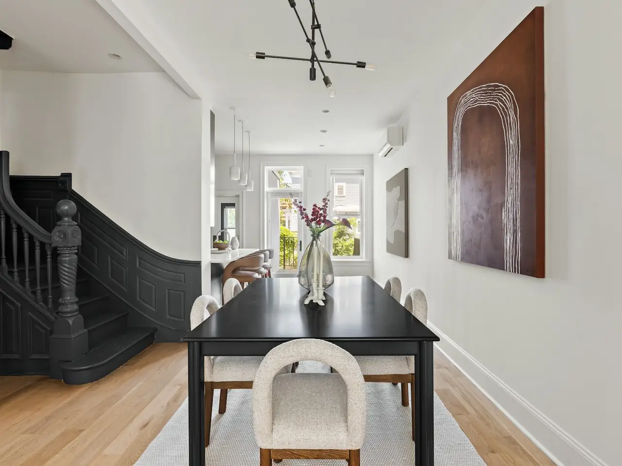 StuyHeights Brownstone with Roof Deck Soak up the sun and skyline views from your private rooftop deck, accessed via a fully retractable skydoor-just one of the many standout features of this meticulously updated brownstone at 271 Decatur Street in Stuyvesant Heights. In a city where private outdoor space is rare, this home offers multiple opportunities to enjoy the outdoors in style. The parlor level welcomes you with striking contrast: natural light fills the space while black wainscoting, moldings, and original restored staircase banisters add bold sophistication. Wide archways create a gracious flow from the living room to the formal dining area and into a sleek, modern kitchen outfitted with black cabinetry, geometric tilework, and a full suite of stainless steel appliances. On the garden level, an oversized bedroom, full bath, and a versatile recreation space offers ultimate flexibility-perfect as a guest suite, home office, or additional sleeping quarters. Step outside to your private backyard retreat for al fresco entertaining or quiet morning coffee. The second floor features two spacious bedrooms, a stylishly tiled full bath, and a bonus room ideal for a study or additional bedroom. Upstairs, the third floor mirrors the layout with three more bedrooms, another full bath, and abundant closet space throughout. One more flight brings you to your rooftop-a true urban oasis-perfect for lounging, entertaining, or taking in panoramic Brooklyn views. Conveniently located near the A and C trains at Utica Avenue and surrounded by beloved neighborhood favorites like Peaches and Saraghina, this home offers the perfect blend of charm, space, and connectivity.