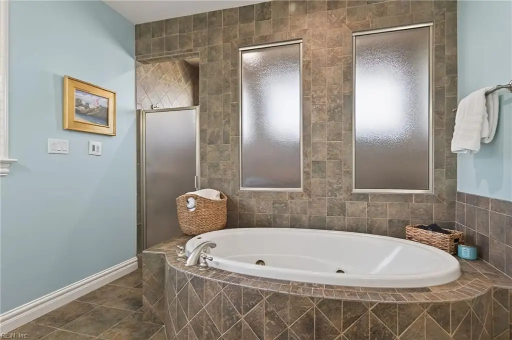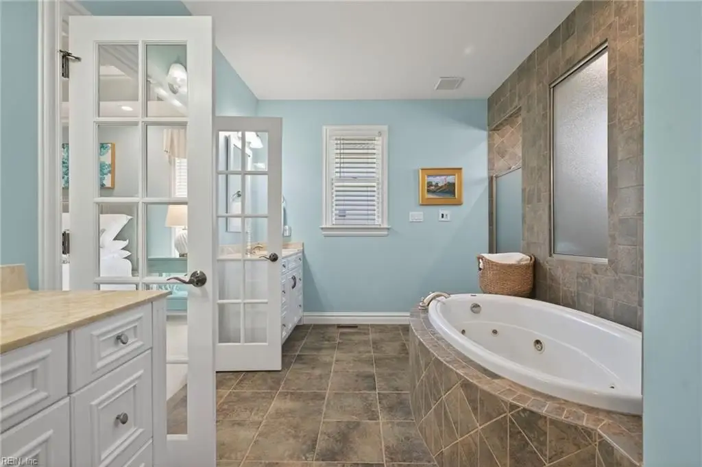 Ensuite bath with quartz countertops and jetted tub
