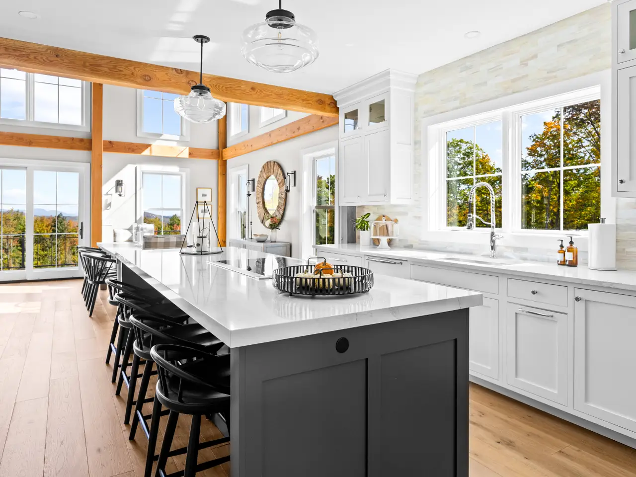 Experience Mountain Living at Its Finest. Why wait to build when this brand-new, custom-designed Yankee Barn stunning retreat is waiting for you now? The home is crafted with Douglas Fir beams and elegant half-lap joinery. Expansive elevated windows flood the open-concept interior with brilliant natural light. The main level includes a welcoming entrance onto the farmer's porch. Then, entering the home, a powder room to your right and a bedroom ensuite to the left; a state-of-the-art kitchen awaits, featuring a double-thickness quartz center island and marble backsplash, Thermador appliances, and a double wall oven. The living/dining area features a warming stone fireplace and opens to a generous deck, showcasing breathtaking mountain views. Upstairs, you'll find the primary ensuite with a private office and luxurious bath. The lower level is plumbed and ready for a future bathroom, bedroom, and family room, with walk-out access to a private backyard and space for additional gardens. Outdoor enhancements include lush gardens, stonework, private patios, and a two-bay garage with a loft, all on over 20+/-AC. Located on prestigious Blake Road, once home to the historic Peckett’s Inn, it was the summer retreat to many wealthy visitors and Hollywood elite. This property offers timeless charm in the heart of Sugar Hill. You'll be close to all the White Mountains have to offer. Great opportunity! Land in CU.