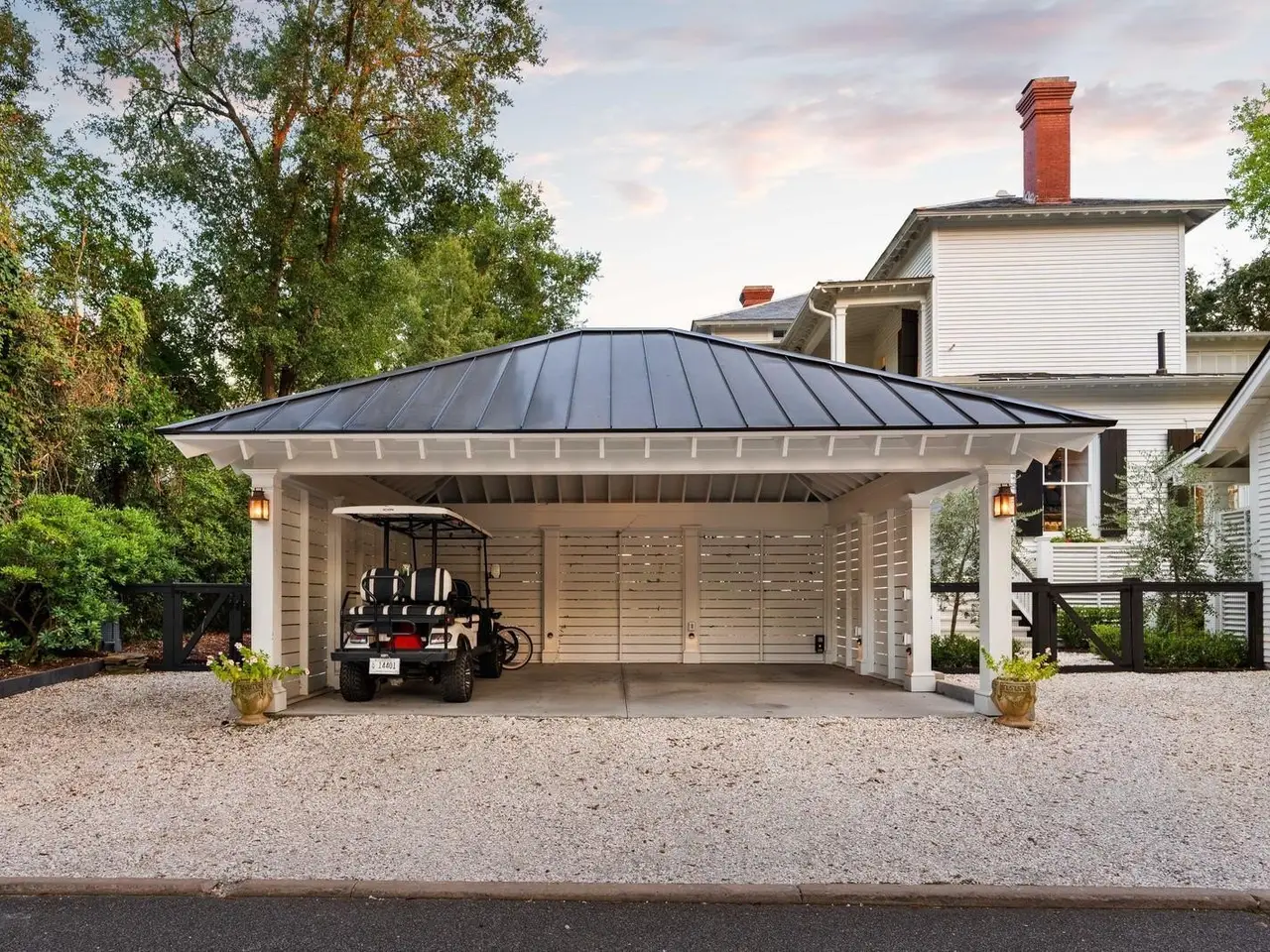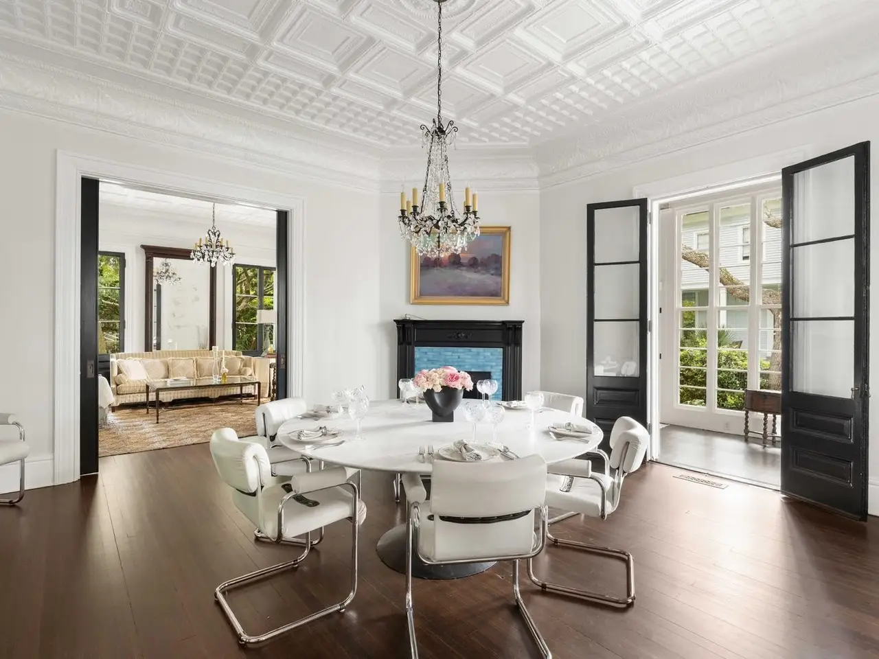 On one of Sullivan's Island's quietest oak-lined streets, steps from the beach, stands a piece of history. Originally constructed in 1900 by the Army Corps of Engineers, this storied home stands watch as island life reveals itself, holding fast to its original bones. Thoughtfully restored, its character remains intact--pressed-tin 11-foot ceilings, vertical grain heart pine floors, original chandeliers, and five working fireplaces, every update made with modern living in mind. Spanning more than 6,000 square feet across three levels, the residence offers six bedrooms and five-and-a-half baths, with bedrooms opening onto wraparound porches that capture ocean breezes directly from the Atlantic.Rooms framed by beautiful crown moulding are made all the more beautiful by the sunlight pouring through 11' walls of floor to ceiling windows. The renovated kitchen is both soulful and state-of-the-art: Granite countertops, Moroccan zellige tile, an antique island topped with a Murano glass light fixture, and professional-grade Thermador appliancesincluding twin refrigerators, double ovens, wine fridge, freezer, and nugget ice machine. Outside, the grounds unfold like a private garden estate. Mature oaks stretch overhead, palms sway in the salt air, and citrus trees brighten the landscape. A crushed oyster shell dining terrace invites long evenings under the stars, while a historic cistern tells the story of another era. The utility shed and carport stand ready to support your island adventures, along with a whole-house generator for peace of mind. This beautiful home, set within the Officers' Quarters district, balances serenity with convenience better than any on the island: the beach, tennis and pickleball courts, island restaurants, public boat ramp and Downtown Charleston all close at hand. Yet here, on this high ground shaded by grand old oaks, quiet still reigns.