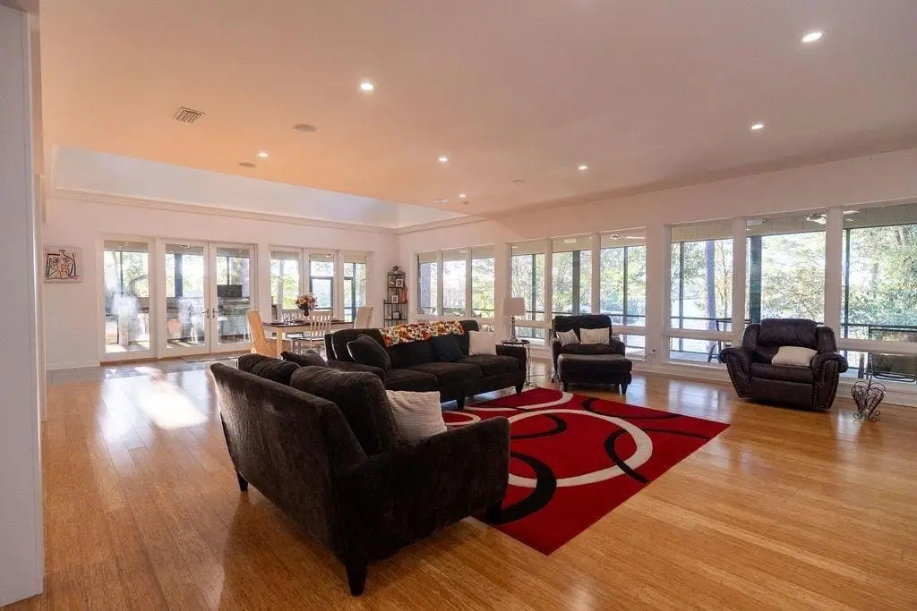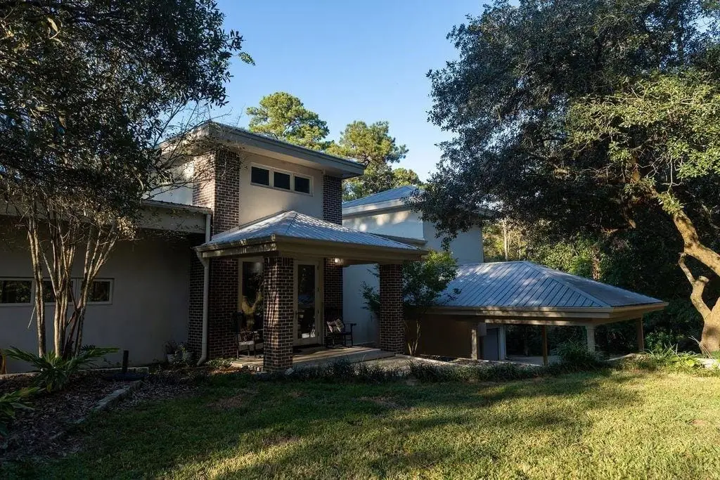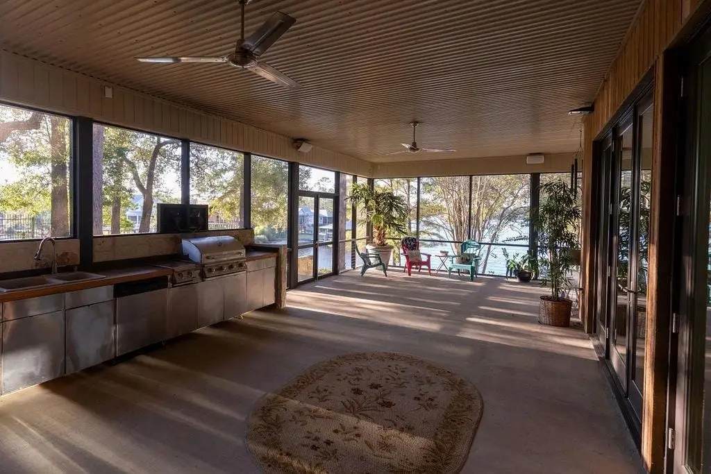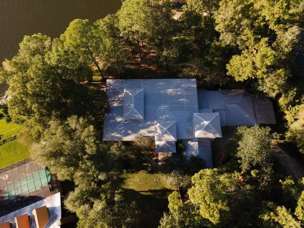 Experience refined waterfront living on this 2.2-acre estate with 186 feet of deep-water frontage along beautiful Fish River. This 5,200 sq. ft. concrete constructed home with a metal roof blends modern design with elegant Asian-inspired details and offers the perfect balance of sophistication and natural beauty.Interior Highlights:Step inside to an open, light-filled floor plan surrounded by expansive windows that showcase panoramic water views. The Thermador-equipped chef's kitchen features premium appliances, sleek cabinetry, and clean, contemporary lines. With three laundry rooms, generous living areas, and thoughtful design throughout, the home delivers both comfort and functionality in every detail.Exterior Features:Enjoy seamless indoor-outdoor living with a screened outdoor kitchen featuring a built-in grill, dishwasher, sink, and refrigerator ideal for entertaining by the river. The property includes a sprinkler system, heated and cooled metal building with a car lift, and a second metal building with RV storage. Surrounded by mature trees and natural landscape, this estate offers privacy, tranquility, and a true connection to the water. Buyer to verify all information during due diligence.
