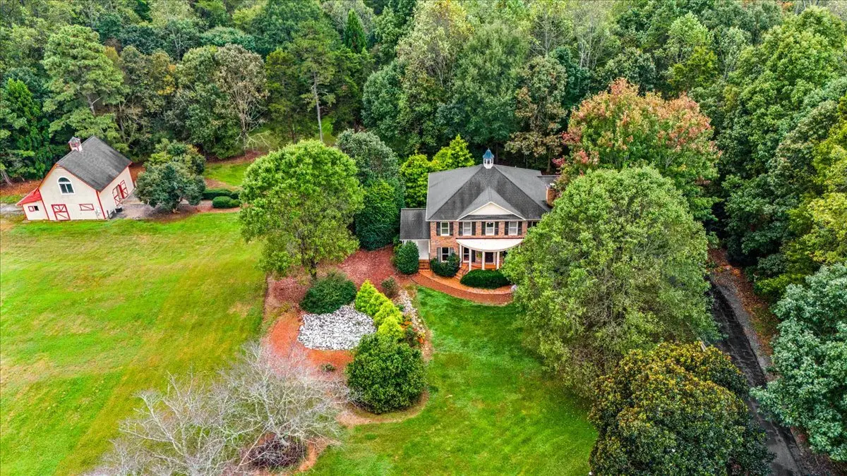 Welcome Home to this STUNNING, unique estate, spanning 6 acres! It offers a blend of historic charm and modern amenities. The home is a beautiful reproduction of the Josiah Smith House in Charleston, South Carolina. It boasts a grand entrance hall with a curved staircase that wows. Flexibility to have primary bedroom up or down or use main level primary as office or library. Large rooms, great closets, beautiful and expansive living room. The secluded, park-like setting offers mature trees and mature landscaping, which can be enjoyed from the expansive coved porch or deck. For equestrian enthusiasts, the property is fully equipped with a 4-stall barn that includes a tack room. The upper level of the barn provides a finished open living space, complete with a kitchen, a full bath, and a bedroom. The estate ensures ultimate, well thought out privacy! Come make this house, HOME.