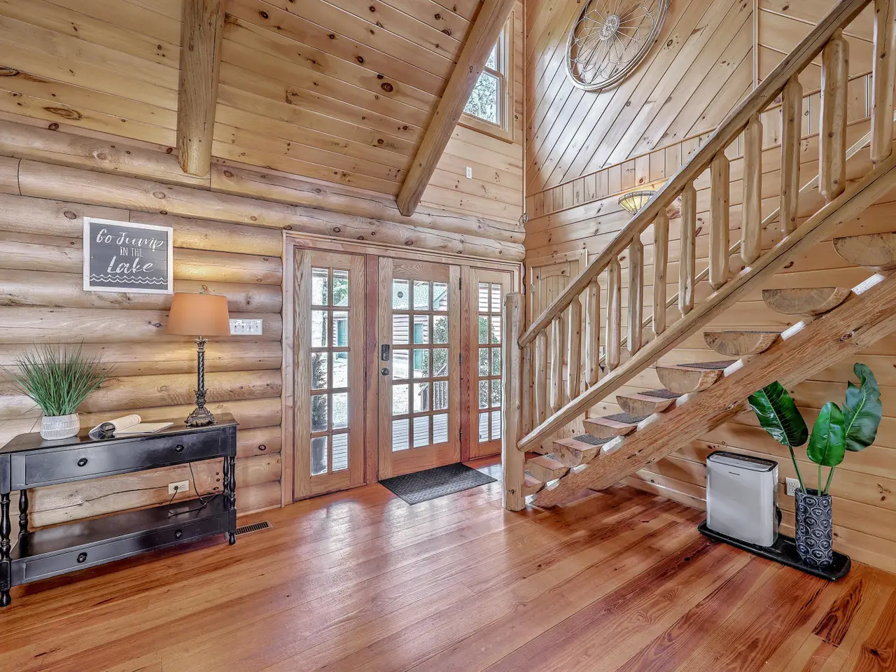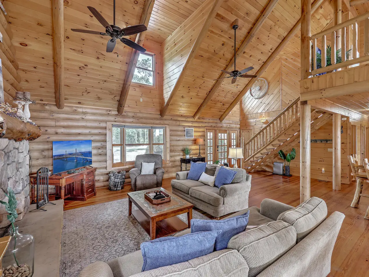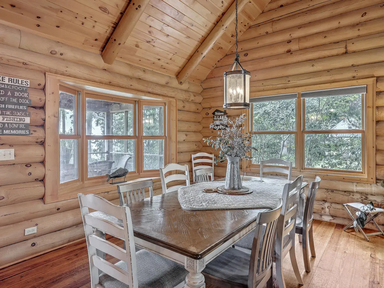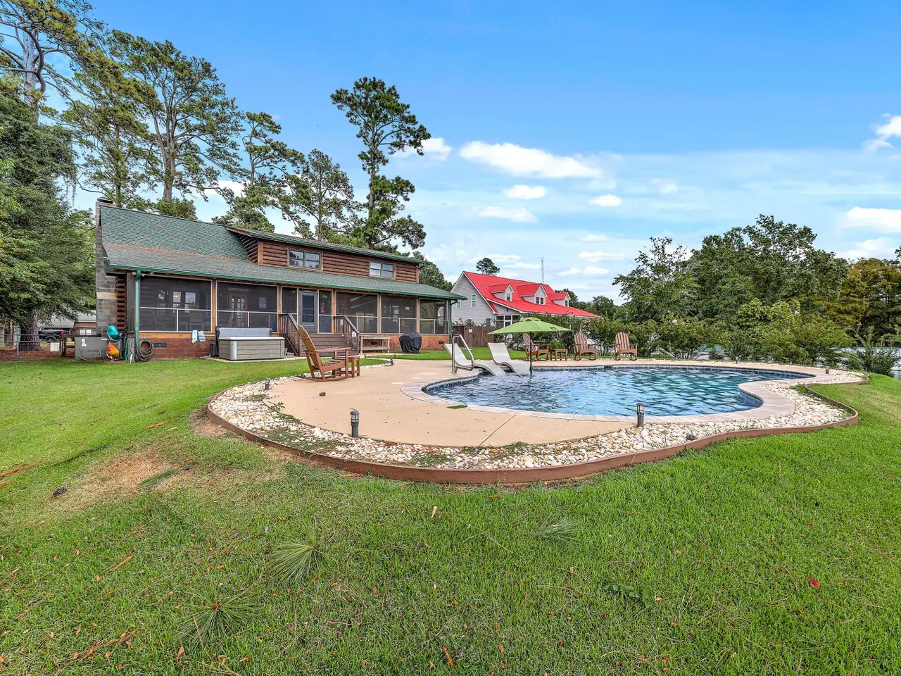 Discover a tranquil escape with this custom-built log cabin situated on the serene shores of Lake Marion. This property masterfully combines rustic elegance with modern amenities, offering an ideal opportunity for a second home, primary residence, or a lucrative short-term rental investment.Experience the grandeur of an open-concept living space with soaring ceilings crafted from tongue-and-groove heart pine, centered around a magnificent stone fireplace. The fireplace, enhanced by a reclaimed mantle originating from the 2002 San Juan forest fire, provides the perfect ambiance for cozy evenings. Culinary enthusiasts will delight in the chef's kitchen, which features custom live-edge countertops from Texas, bespoke Cypress and Hickory cabinetry, and premium appliances including an ice maker and wine cooler. The first floor offers two spacious bedrooms and a well-appointed bathroom with dual sinks and granite counters, complemented by a full laundry room for ultimate convenience. Upstairs, a private primary suite awaits, featuring a walk-in closet and an en suite bath with a clawfoot tub, walk-in shower, and dual vanities. Step outside to a screened porch, complete with a custom bar offering seating for eight, a sink, mini-fridge, and gas burner, making it an ideal space for entertaining. The backyard oasis includes a custom Gunite pool, a six-person hot tub, a grilling station, a firepit area, and a private fishing pier perfect for savoring Lake Marion's stunning sunsets. This log cabin is crafted with 9-inch spruce logs using the Swedish coping style, professionally sealed in 2022, ensuring sturdy construction. An oversized 4-car garage, equipped with a full bath, and an unfinished upstairs offers excellent potential for additional living space. Recent upgrades include a 40-year architectural roof, new gutters, a Rinnai tankless water heater, and an efficient 2022 HVAC system. Located on the north shore of Lake Marion, this property is just minutes from I-95, providing convenient access for day trips to Charleston, Myrtle Beach, and Columbia. The area is renowned for its natural beauty and tranquility, making it an appealing retreat for water sports enthusiasts, nature lovers, and those seeking a peaceful lifestyle. Currently operating as a successful short-term rental, this property accommodates up to 14 guests and boasts over 150 five-star reviews, consistently generating well over $100,000 annually. Whether you're looking for a charming home to call your own or an investment property with proven income potential, this Lake Marion cabin offers a perfect blend of appeal and practicality. Contact us to schedule a viewing or for more information about this exceptional property. Disclosure: The ability to operate a short-term rental in this jurisdiction is subject to local laws and regulations, which may change over time. There is no guarantee that the current permissions or allowances for short-term rentals will remain in effect in the future. Prospective buyers are encouraged to conduct their own due diligence regarding the current and future status of short-term rental regulations.
