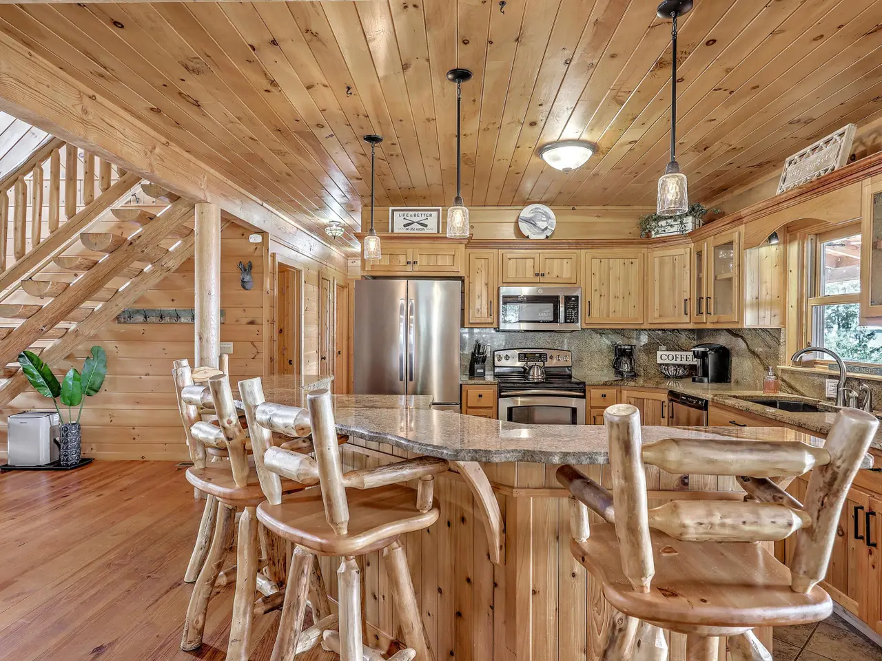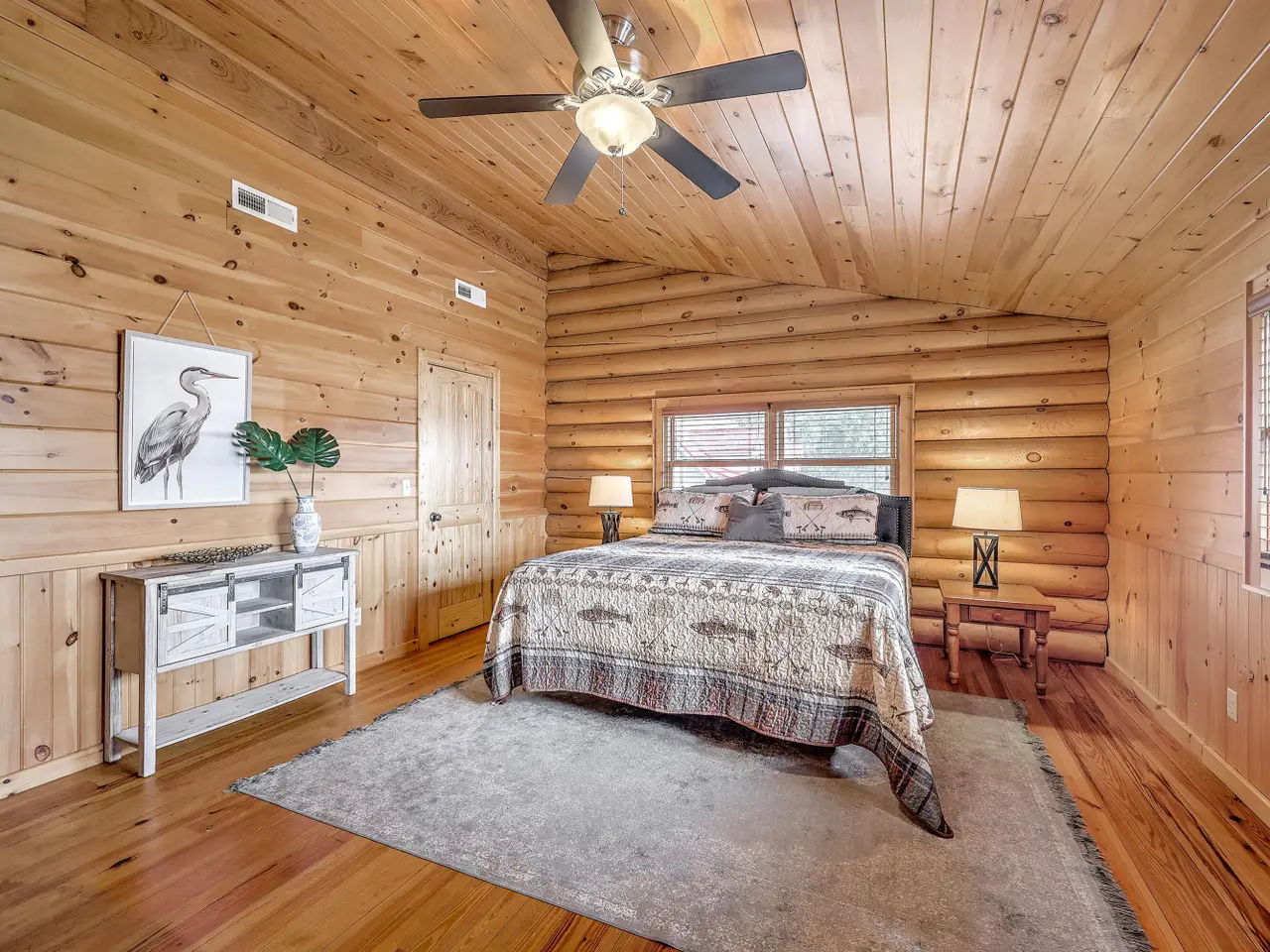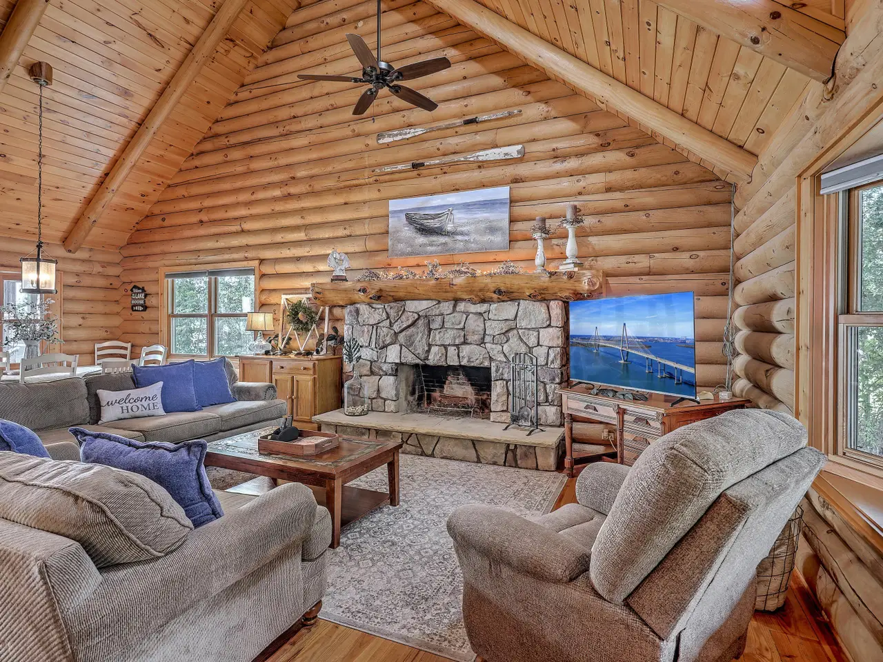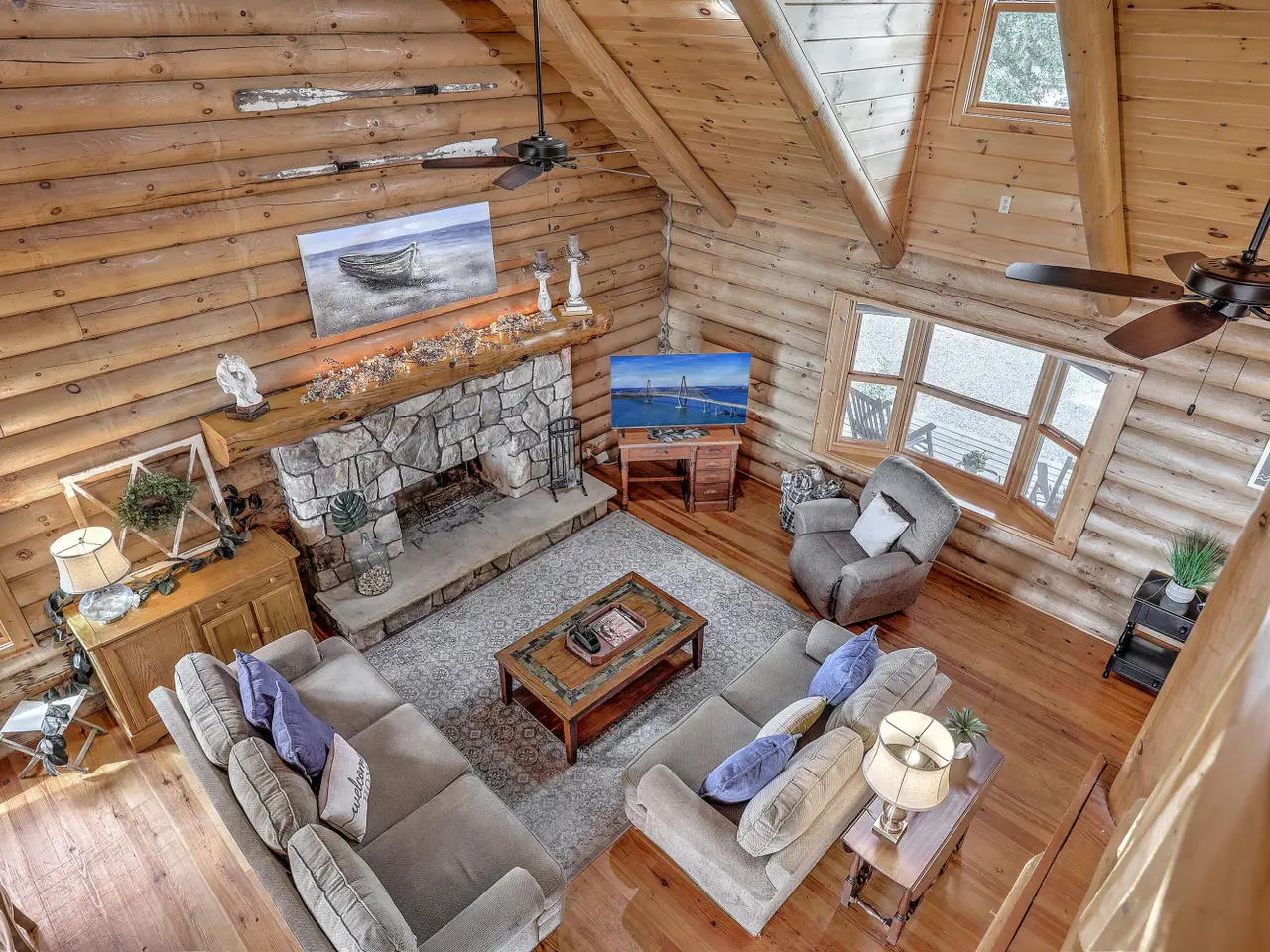 Discover a tranquil escape with this custom-built log cabin situated on the serene shores of Lake Marion. This property masterfully combines rustic elegance with modern amenities, offering an ideal opportunity for a second home, primary residence, or a lucrative short-term rental investment.Experience the grandeur of an open-concept living space with soaring ceilings crafted from tongue-and-groove heart pine, centered around a magnificent stone fireplace. The fireplace, enhanced by a reclaimed mantle originating from the 2002 San Juan forest fire, provides the perfect ambiance for cozy evenings. Culinary enthusiasts will delight in the chef's kitchen, which features custom live-edge countertops from Texas, bespoke Cypress and Hickory cabinetry, and premium appliances including an ice maker and wine cooler. The first floor offers two spacious bedrooms and a well-appointed bathroom with dual sinks and granite counters, complemented by a full laundry room for ultimate convenience. Upstairs, a private primary suite awaits, featuring a walk-in closet and an en suite bath with a clawfoot tub, walk-in shower, and dual vanities. Step outside to a screened porch, complete with a custom bar offering seating for eight, a sink, mini-fridge, and gas burner, making it an ideal space for entertaining. The backyard oasis includes a custom Gunite pool, a six-person hot tub, a grilling station, a firepit area, and a private fishing pier perfect for savoring Lake Marion's stunning sunsets. This log cabin is crafted with 9-inch spruce logs using the Swedish coping style, professionally sealed in 2022, ensuring sturdy construction. An oversized 4-car garage, equipped with a full bath, and an unfinished upstairs offers excellent potential for additional living space. Recent upgrades include a 40-year architectural roof, new gutters, a Rinnai tankless water heater, and an efficient 2022 HVAC system. Located on the north shore of Lake Marion, this property is just minutes from I-95, providing convenient access for day trips to Charleston, Myrtle Beach, and Columbia. The area is renowned for its natural beauty and tranquility, making it an appealing retreat for water sports enthusiasts, nature lovers, and those seeking a peaceful lifestyle. Currently operating as a successful short-term rental, this property accommodates up to 14 guests and boasts over 150 five-star reviews, consistently generating well over $100,000 annually. Whether you're looking for a charming home to call your own or an investment property with proven income potential, this Lake Marion cabin offers a perfect blend of appeal and practicality. Contact us to schedule a viewing or for more information about this exceptional property. Disclosure: The ability to operate a short-term rental in this jurisdiction is subject to local laws and regulations, which may change over time. There is no guarantee that the current permissions or allowances for short-term rentals will remain in effect in the future. Prospective buyers are encouraged to conduct their own due diligence regarding the current and future status of short-term rental regulations.