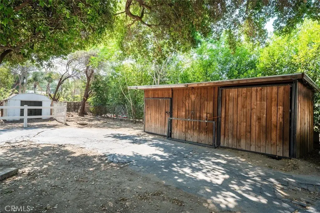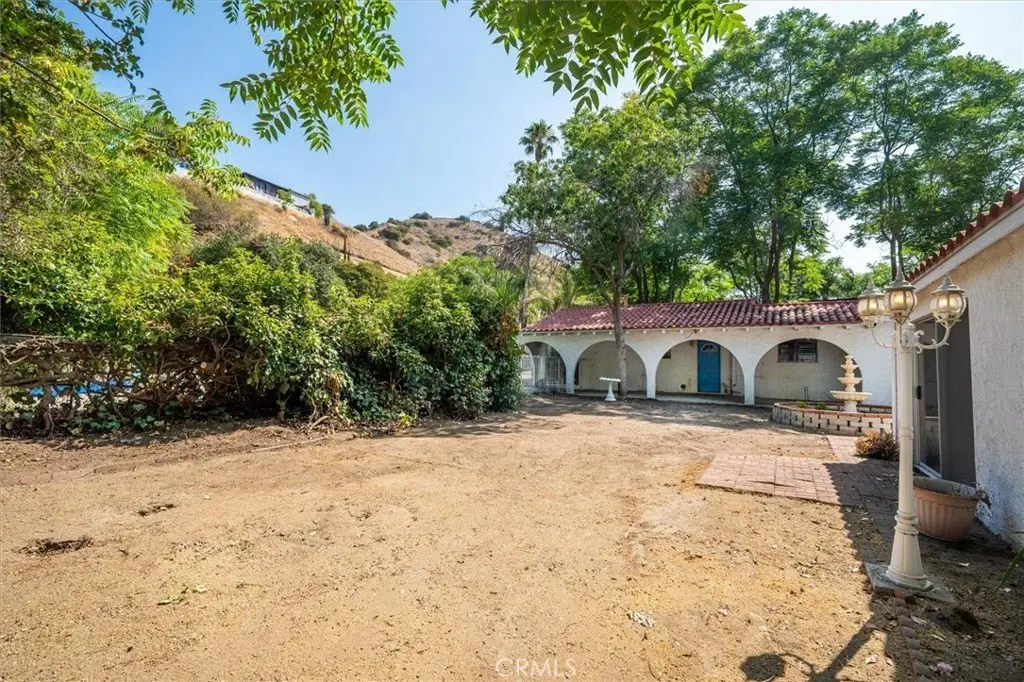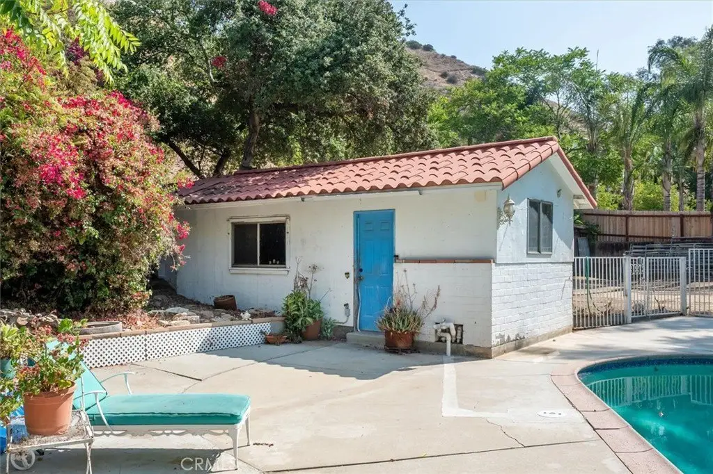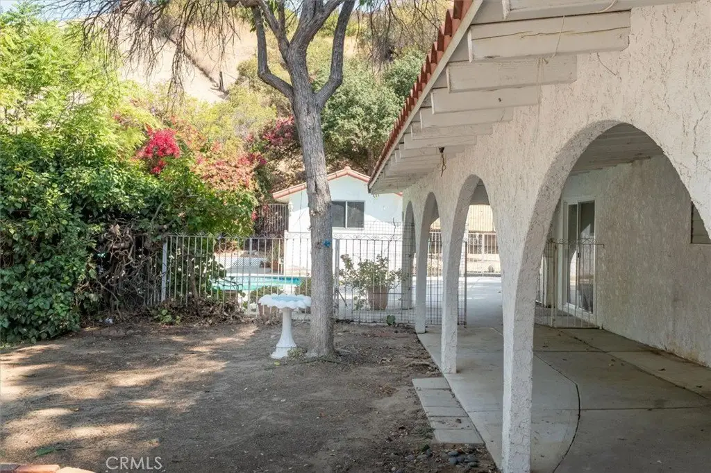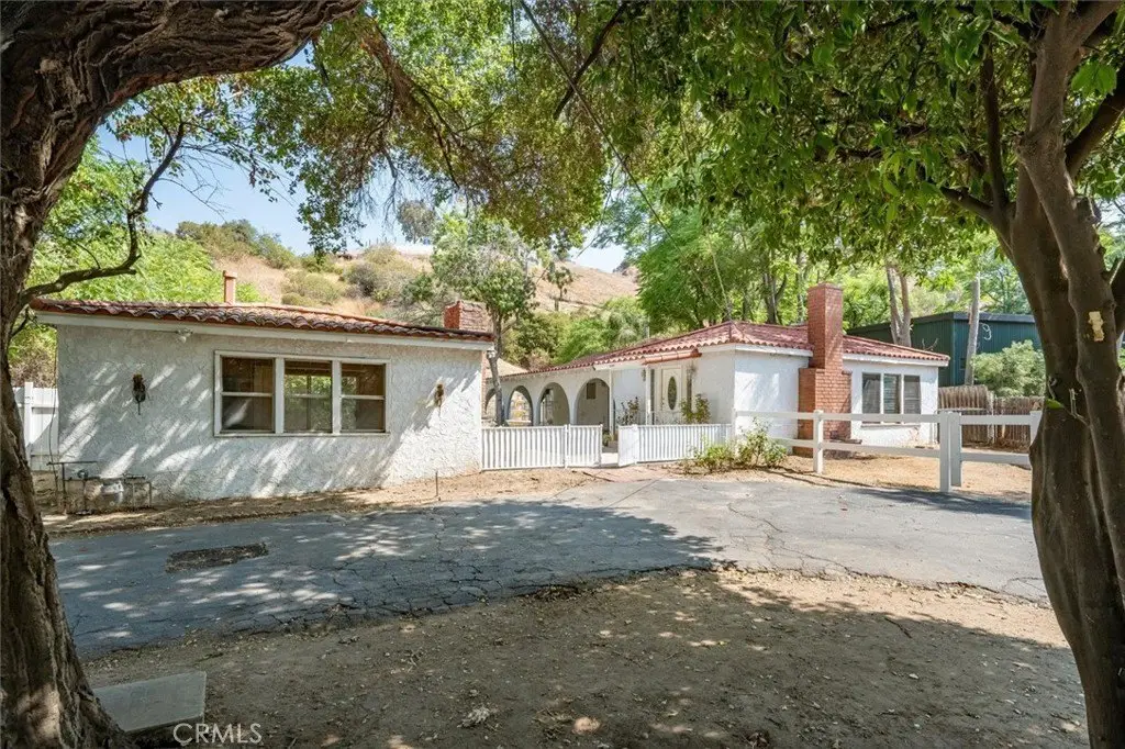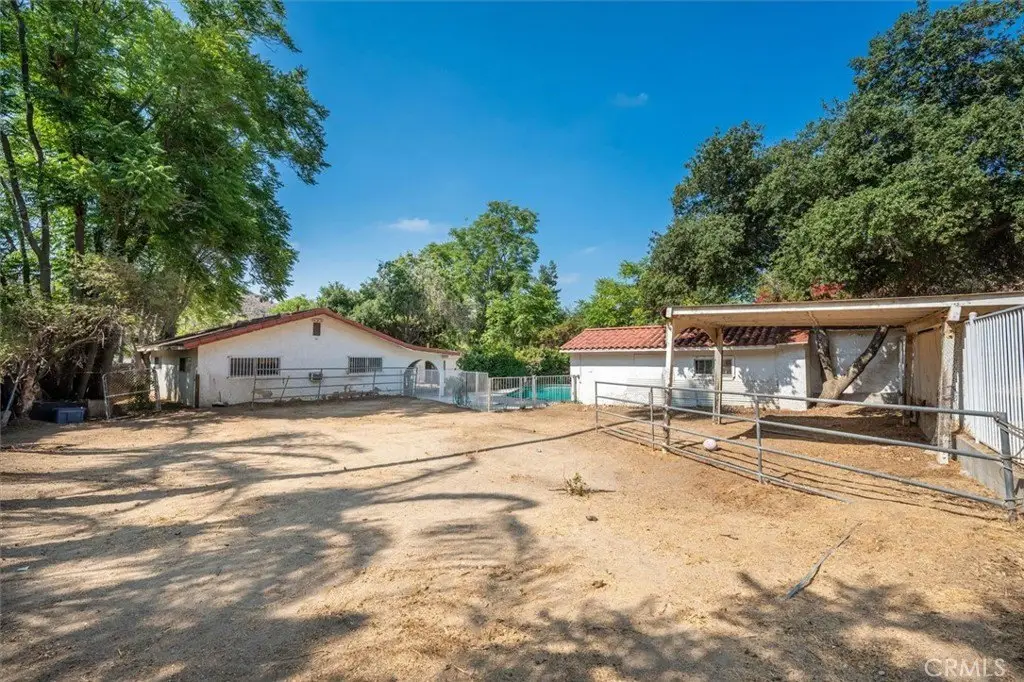 An exceptional opportunity presents itself with this remarkable “diamond in the rough” property. Seeking investors, developers, & contractors to showcase their expertise & transform this breathtaking half-acre Sun Valley Ranch Property, conveniently located just a short distance from Shadow Hills. This property presents a dream come true for horse enthusiasts. Welcome to SHANGRI-LA, a private driveway leads you to a secluded, gated entry with ample parking amidst majestic mature trees. The rural setting evokes the ambiance of a classic Western movie, complete with a rustic wooden tool shed & ample space for a horse trailer & its accessories. The courtyard boasts the main house & a charming converted garage guest home (with permit status unknown). A spacious, open area awaits your personal touch, featuring a covered front porch that invites you to create your own tranquil oasis with landscaping tailored to your preferences & budget. The pièce de resistance is a built-in pool with a concrete deck surrounded by picturesque foliage, complemented by a large, enclosed shed for pool equipment & additional storage. Additionally, the fenced-in horse paddock is nestled amidst a picturesque hillside, providing a peaceful retreat for your equestrian companions. For those seeking adventure, local trails offer the opportunity to explore the enchanting countryside. Step inside the main house, which features three generously sized bedrooms off the hallway corridor. The primary bedroom boasts a full-sized bathroom & an expansive closet. A sliding glass door opens to the front porch, overlooking the courtyard, fountain, & outdoor fireplace. Two additional bedrooms & a bathroom are conveniently located off the hallway. A dedicated laundry room provides ample storage space & cabinetry, including a washer & dryer, & option to install a separate cabinet with a sink and faucet utilizing existing plumbing connections. The inviting kitchen features a cheerful dining area with windows, granite countertops, wood cabinetry, a large double sink, dishwasher, & oven. The living room boasts an impressive floor-to-ceiling brick fireplace with hearth, situated adjacent to a formal dining room area with surrounding windows that offer tranquil views of the surrounding trees & hills. This property possesses significant potential for further enhancement, making it an attractive option for both investors seeking to increase its value & individuals seeking to create a personalized living space.
