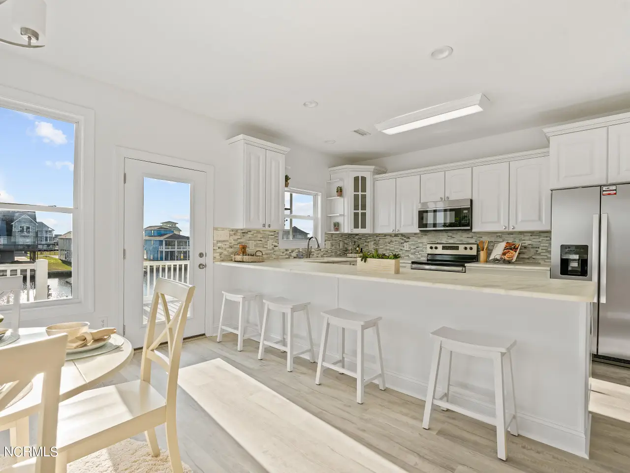 Welcome to canal-front living on 9th Street, where every day feels like vacation! This inviting home with tons of natural light offers an open floor plan with four bedrooms, 3.5 baths, designed for both everyday living and easy entertaining. At the heart of the home, the kitchen and living room flow seamlessly together, creating a gathering space that you are guaranteed to make memories. The kitchen features stainless appliances, sleek quartz countertops and a generous bar that seats five -- all with sweeping views of the canal. Also, on this level, an additional bedroom and full bath create the perfect guest suite -- comfortable, private and just steps from the heart of the home. The spacious master suite opens onto a serene sun porch, ideal for sipping your morning coffee while watching the sunrise over the sound. On this same level you will find two additional bedrooms connected by a large Jack and Jill bath. Entertaining comes naturally here--relax on the back deck while grilling your fresh catch or host an oyster roast with friends and family. The outdoor space is a boater's dream, complete with a private dock featuring composite decking and a 10,000-pound boat lift and a convenient boat ramp for launching paddleboards, kayaks or smaller vessels--making it easy to hop on your boat for a day of fishing or sandbar hopping. Located just a short walk or quick ride to the beach, dining, shopping, and entertainment, this property puts the best of coastal living right at your fingertips. Don't miss your chance to own this slice of paradise!