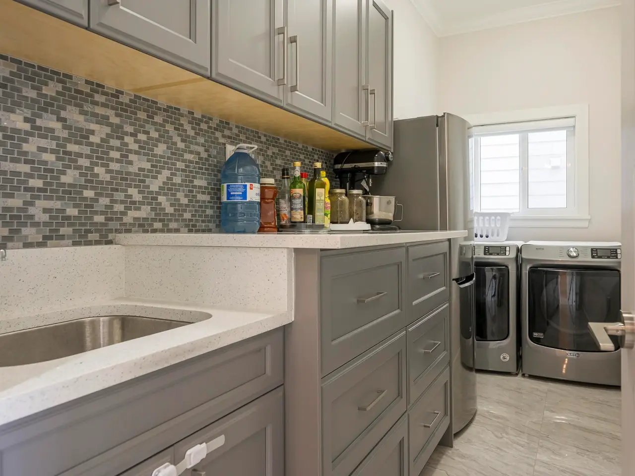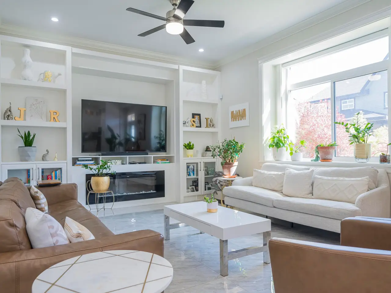 This beautifully kept, high-end home offers 8 spacious bedrooms and 8 bathrooms, with soaring ceilings and luxury finishes throughout. The main floor features a formal living + dining area, central A/C, a chef-inspired kitchen with quartz counters, a full spice kitchen, cozy family room, and a bedroom with ensuite – perfect for guests or in-laws. Upstairs, enjoy a grand primary suite with a spa-like 5-piece ensuite and walk-in closet, plus three more generously sized bedrooms. The fully finished basement offers incredible flexibility with a 2-bedroom legal suite (1.5 baths), a separate 1-bedroom suite, and extra storage – ideal for extended family or mortgage helpers. Located in a prime neighbourhood, this home blends comfort, style, and income potential. An unmissable opportunity!