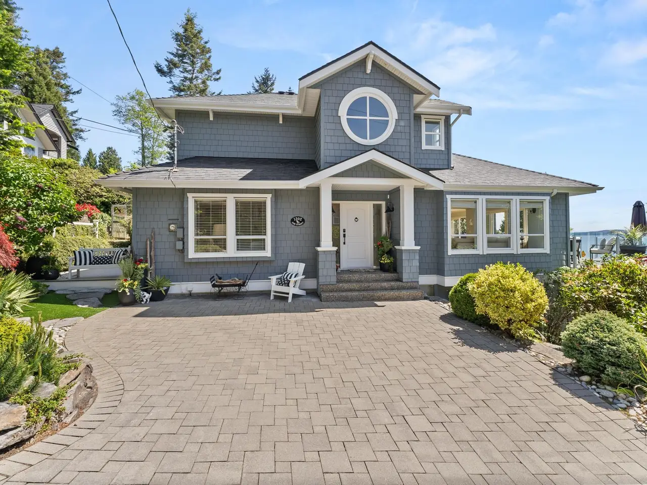 A rare opportunity to own on the bluff along a peaceful no-through road, where breathtaking ocean views and soaring eagles are part of everyday life. This impeccably maintained three bed, two-storey home with a full basement has been extensively renovated with quality craftsmanship and thoughtful design. All three levels provide vantage points to enjoy the stunning ocean scenery. Tastefully decorated in a coastal palette, the home blends elegance and warmth. The main floor offers bright, open living spaces designed for everyday comfort. Upstairs, the resort-style primary bedroom is a true retreat, complete with a private deck and ensuite. The basement includes a bedroom, large rec room, and wet bar. Surrounded by beautifully landscaped gardens, this home embodies the essence of coastal living.