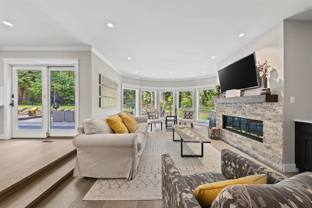 Gorgeous and completely renovated, this estate home is situated on a quiet no-through property in Elgin. Reimagined and finished in a timeless transitional style, this family home exudes quality workmanship with functionality. Walking into the grand foyer, you’re greeted by a curved staircase and leads into a spacious formal living room and adjacent dining room. Great room at the rear of the home captures beautiful views of the backyard and is finished with an updated eat-in kitchen. Four spacious bedrooms upstairs and one flex room/bedroom on the main floor with heated floors in the bathrooms. Bonus detached guest suite complete with a full kitchen. Situated on a picturesque 33,535sqft property backing onto a greenbelt with a gentle creek in the backyard creating a serene park-like oasis.
