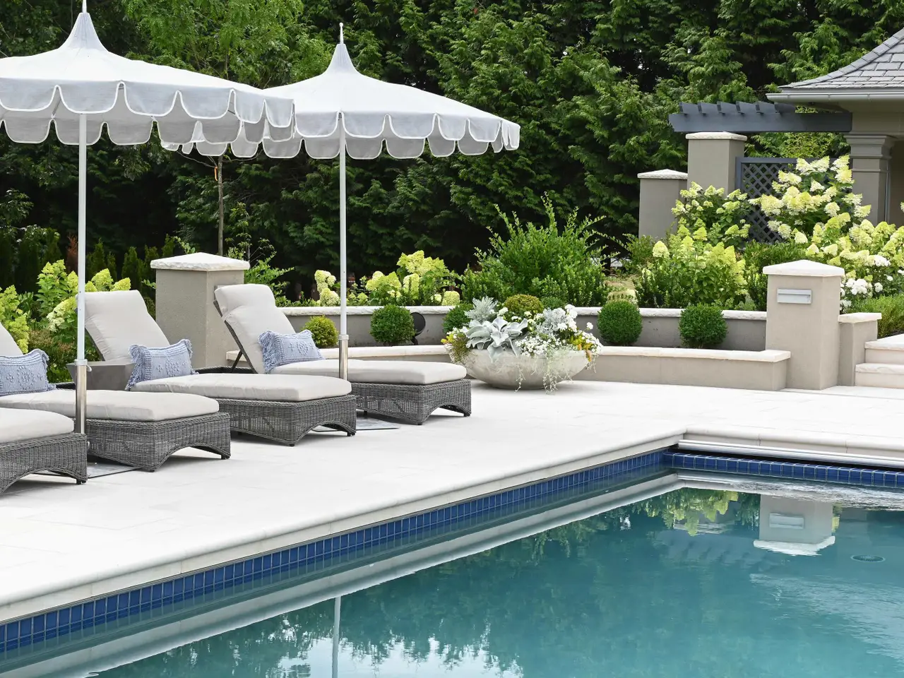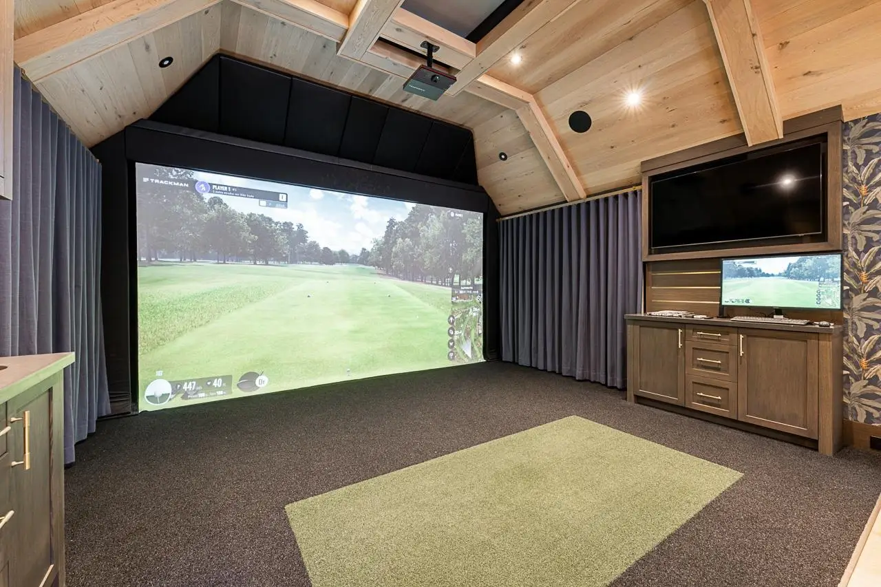 Resort-like outdoor pool Separate pool house with golf simulator