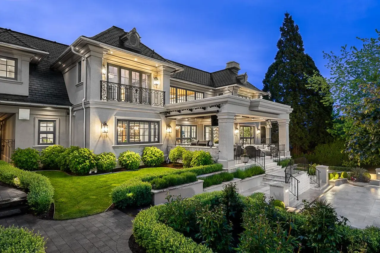 GRAY OWL MANOR; the Finest Estate Offering in the Lower Mainland. This 12,000+ sqft estate is the pinnacle of luxury living. Designed in a timeless French inspired aesthetic & situated on a gated acre manicured to perfection. Custom finishes inside and out for year-round entertaining. Full home automation, an elevator, rich millwork details, limestone fireplaces, temperature controlled wine room, home theatre, and a separate pool house complete with a golf-simulator. Open-concept great room, beautiful kitchen with a striking La Cornue range, and additional prep kitchen, formal dining room with a bar. 8 bedrooms total with the primary suite tucked away on the main floor, plus a two bedroom guest suite. Resort-like outdoor pool and hot tub, with a full sports court. A True Masterpiece!