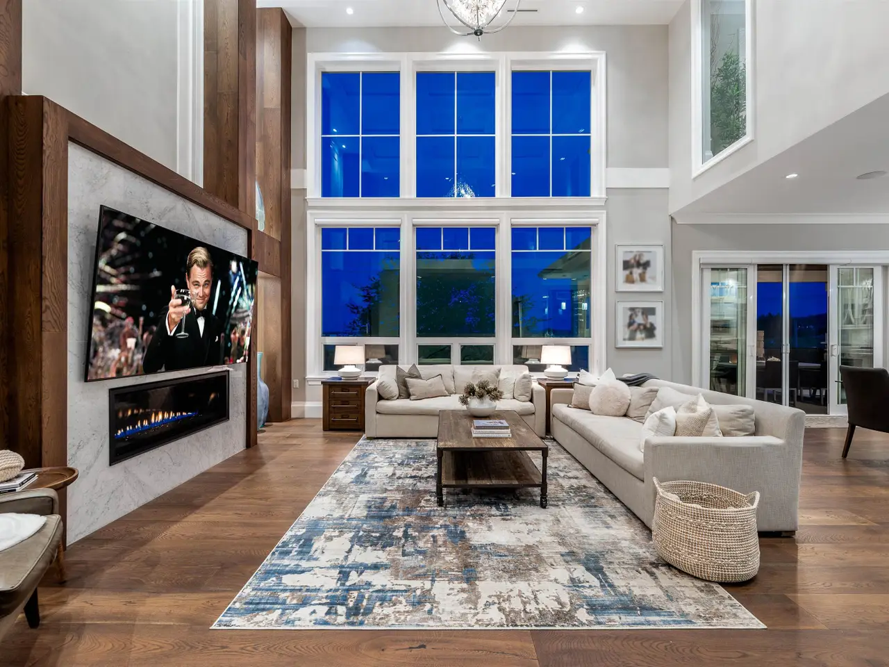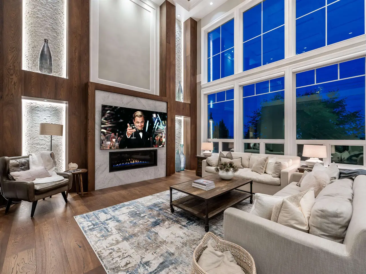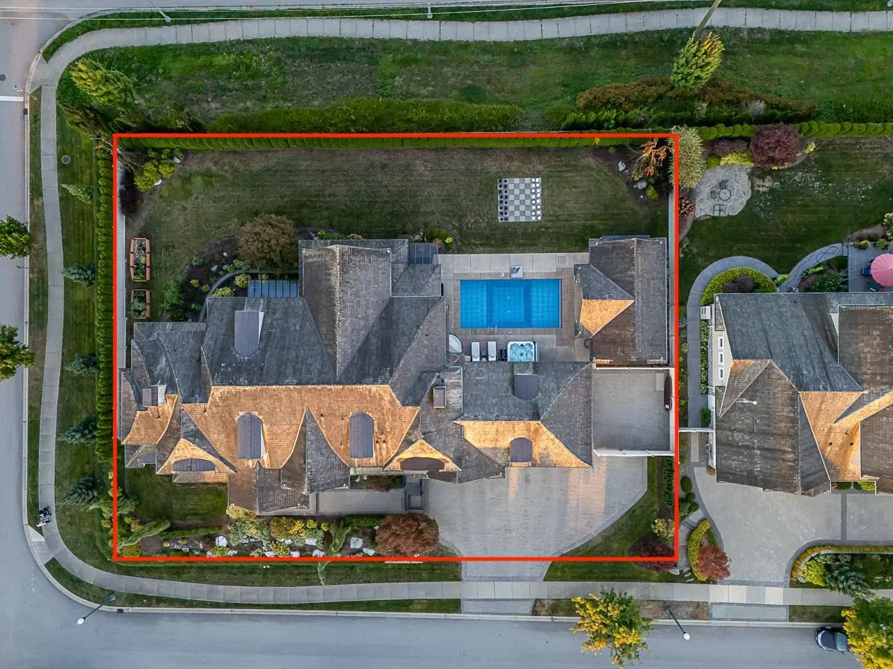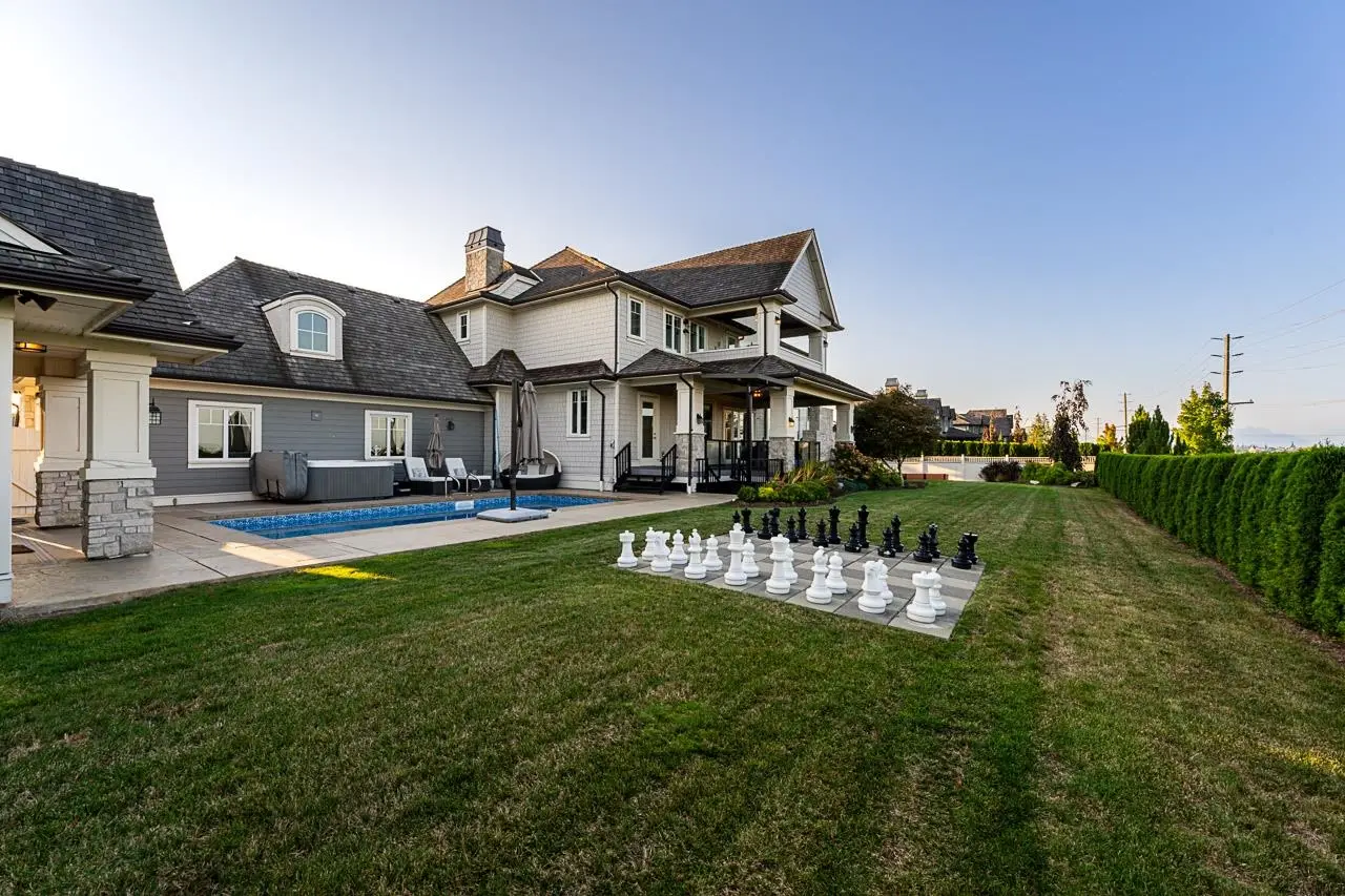 Luxurious Morgan Creek mansion situated on a beautiful and private street with every modern amenity desirable. Almost 9100 ft.² of living space on three spacious levels, this transitionally designed home is perfect for your family’s needs. Grand Foyer with cross-hall formal living in dining rooms, flows into the great room. Designer inspired kitchen with a wok kitchen and walk in pantry, and convenient wet bar for entertaining. One primary suite tucked away on the main floor, and a secondary primary suite above with 3 additional guest bedrooms. Lower level is finished with a guest wing, gym with sauna & steam, theatre, bar, and games room. Bonus detached studio, 4 car garage, in-ground pool, with a hot tub and so much more. Situated on a full half acre with mountain and farm views.