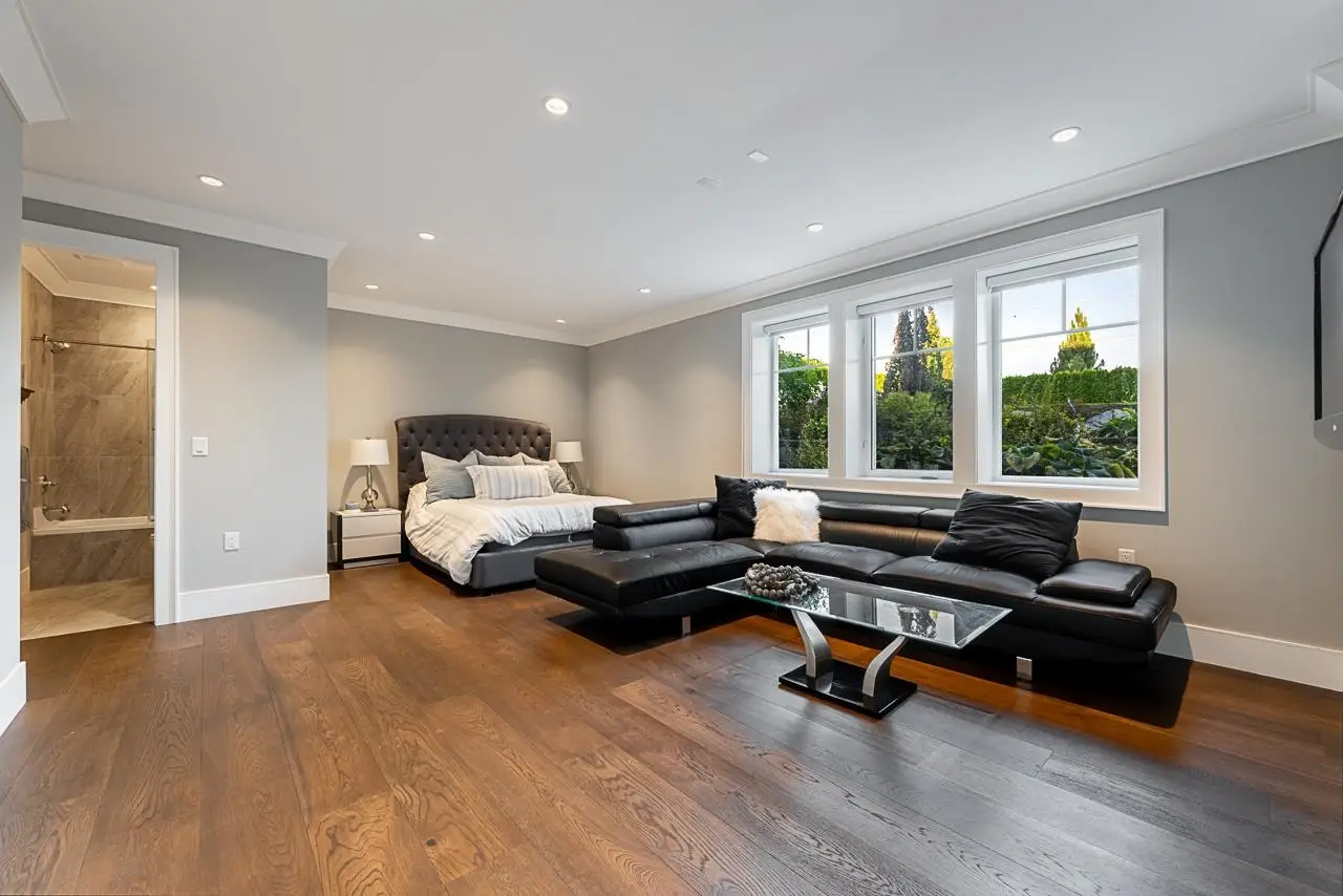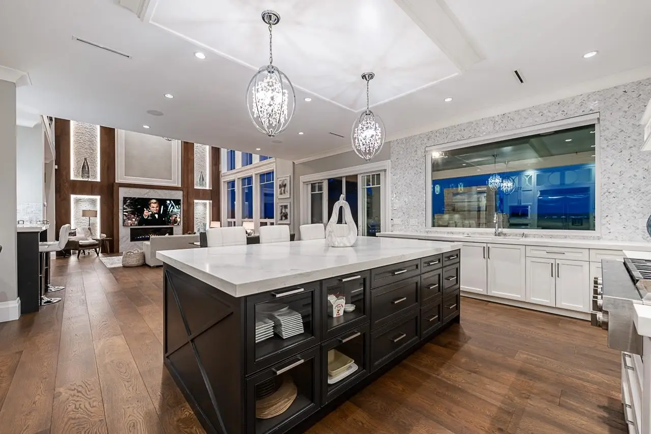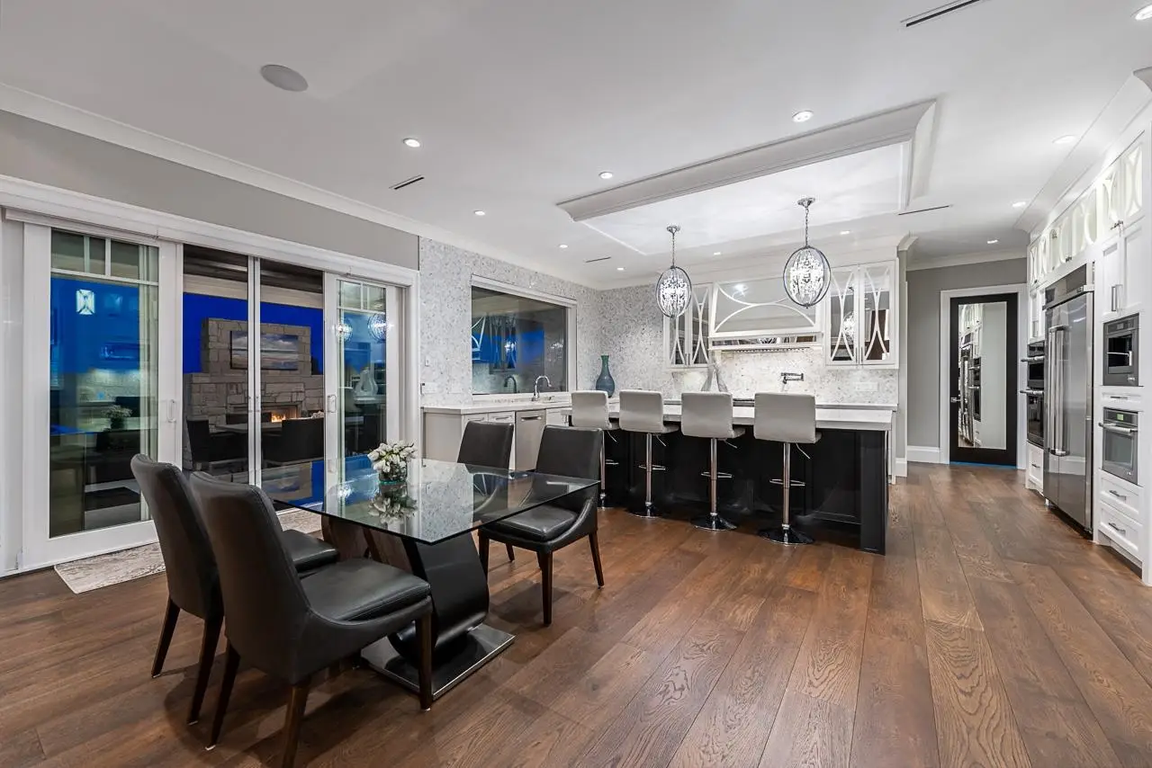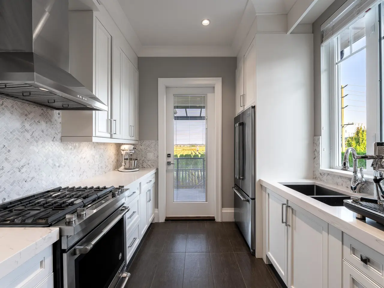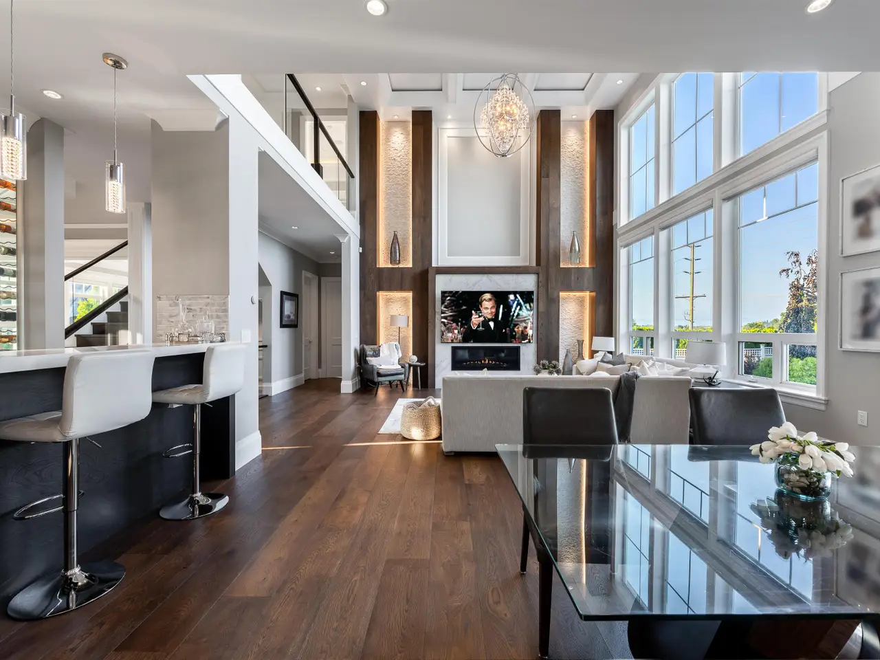 Luxurious Morgan Creek mansion situated on a beautiful and private street with every modern amenity desirable. Almost 9100 ft.² of living space on three spacious levels, this transitionally designed home is perfect for your family’s needs. Grand Foyer with cross-hall formal living in dining rooms, flows into the great room. Designer inspired kitchen with a wok kitchen and walk in pantry, and convenient wet bar for entertaining. One primary suite tucked away on the main floor, and a secondary primary suite above with 3 additional guest bedrooms. Lower level is finished with a guest wing, gym with sauna & steam, theatre, bar, and games room. Bonus detached studio, 4 car garage, in-ground pool, with a hot tub and so much more. Situated on a full half acre with mountain and farm views.