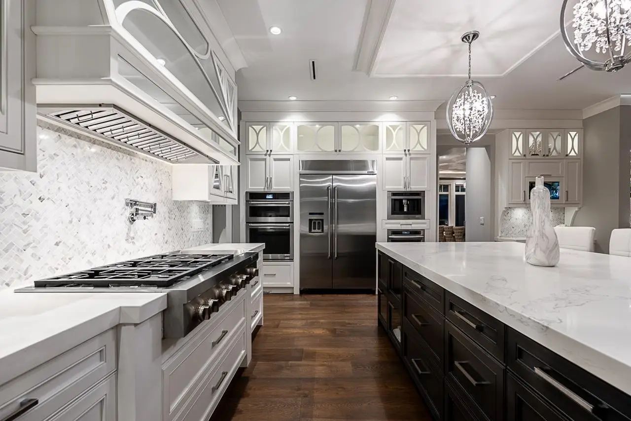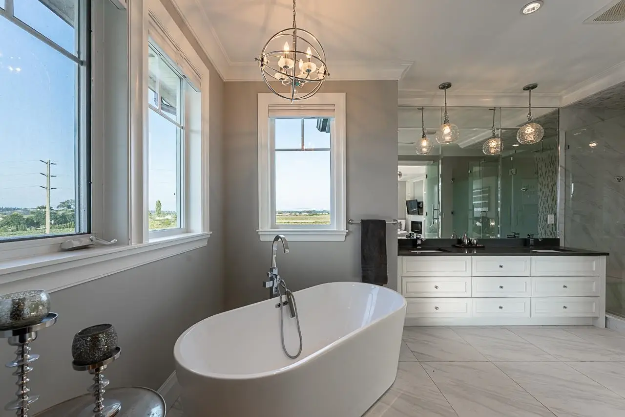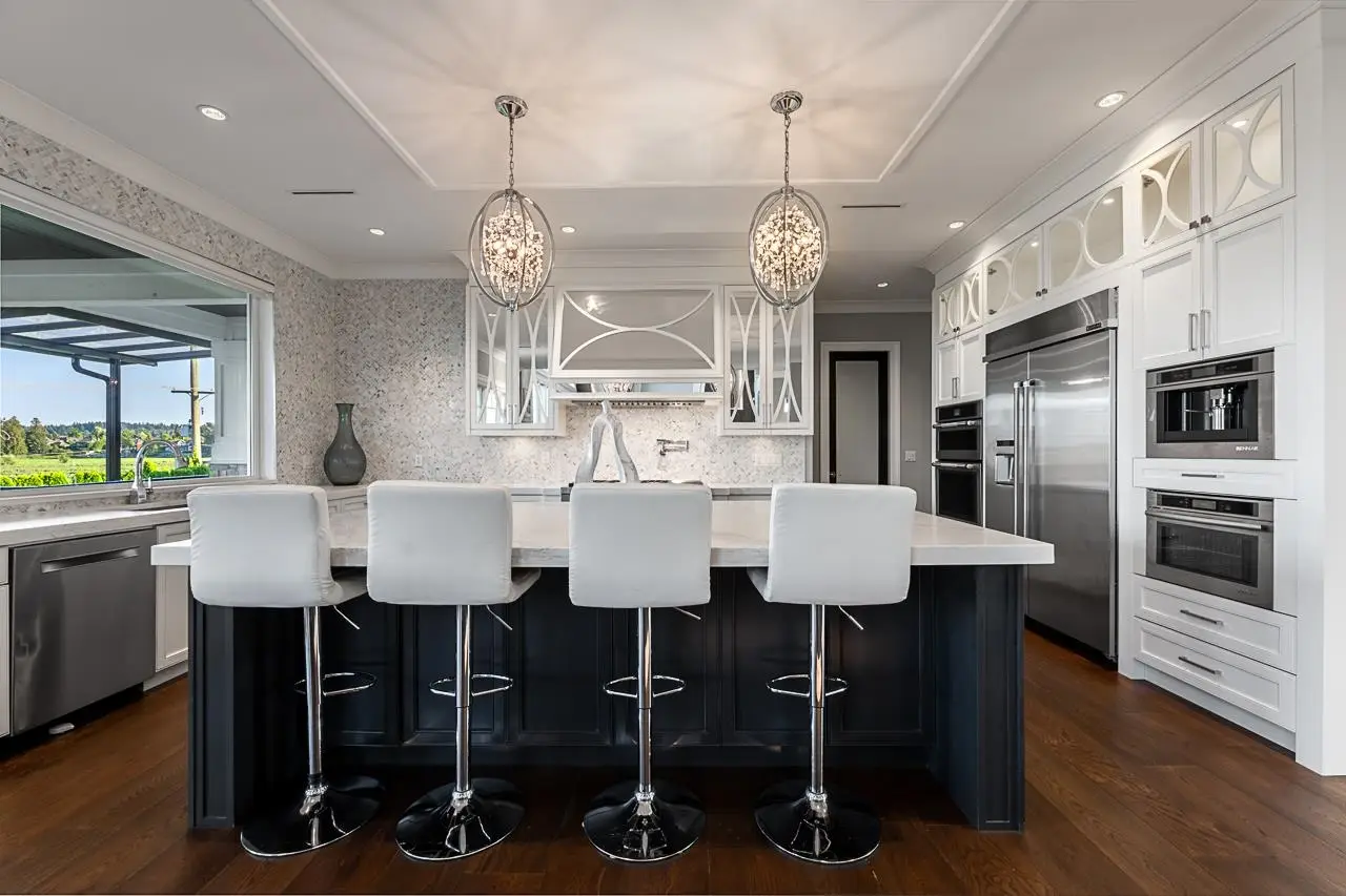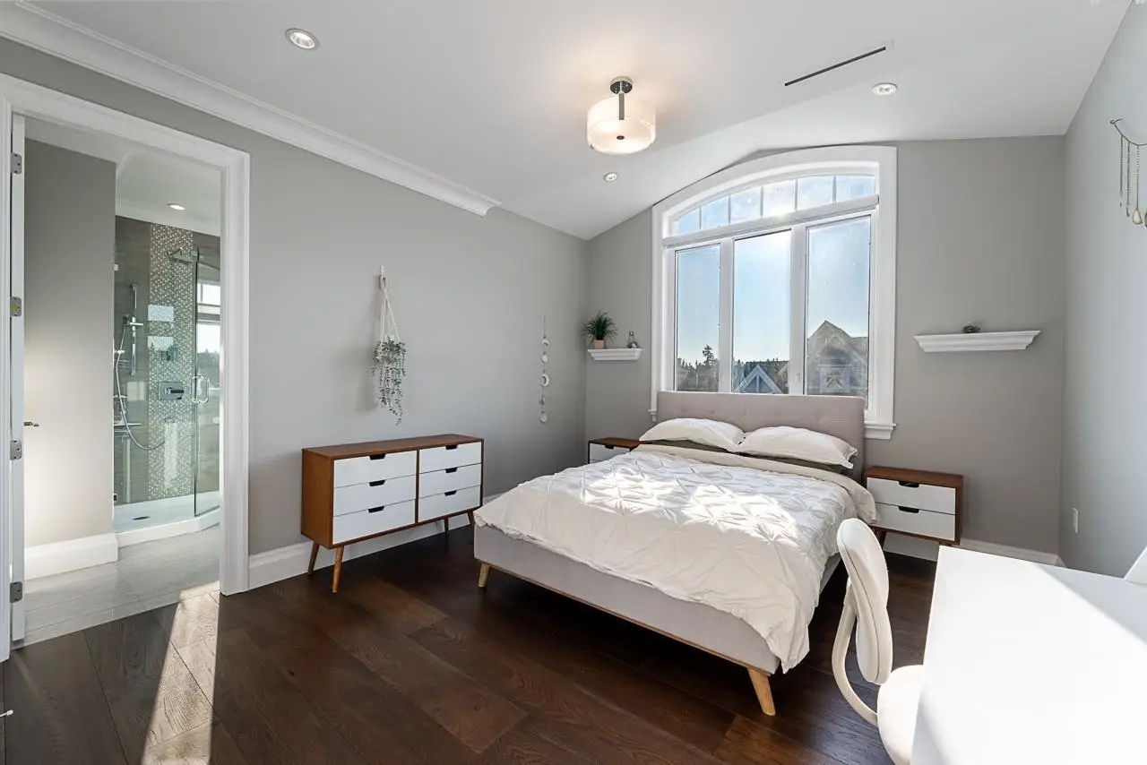 Luxurious Morgan Creek mansion situated on a beautiful and private street with every modern amenity desirable. Almost 9100 ft.² of living space on three spacious levels, this transitionally designed home is perfect for your family’s needs. Grand Foyer with cross-hall formal living in dining rooms, flows into the great room. Designer inspired kitchen with a wok kitchen and walk in pantry, and convenient wet bar for entertaining. One primary suite tucked away on the main floor, and a secondary primary suite above with 3 additional guest bedrooms. Lower level is finished with a guest wing, gym with sauna & steam, theatre, bar, and games room. Bonus detached studio, 4 car garage, in-ground pool, with a hot tub and so much more. Situated on a full half acre with mountain and farm views.