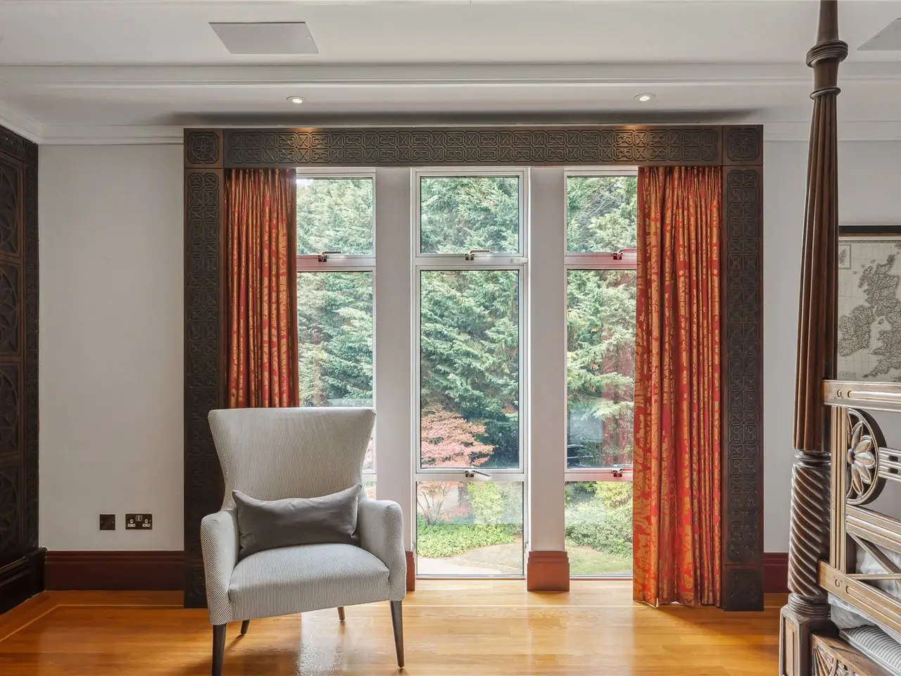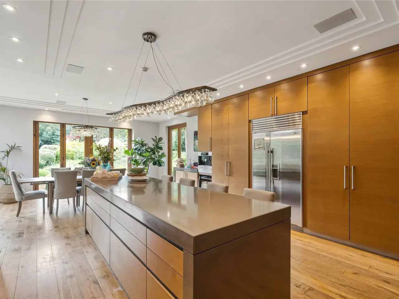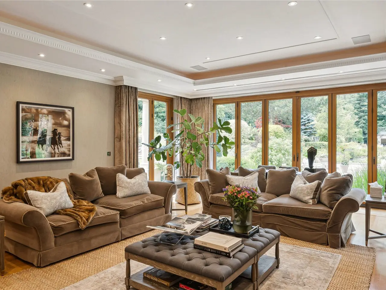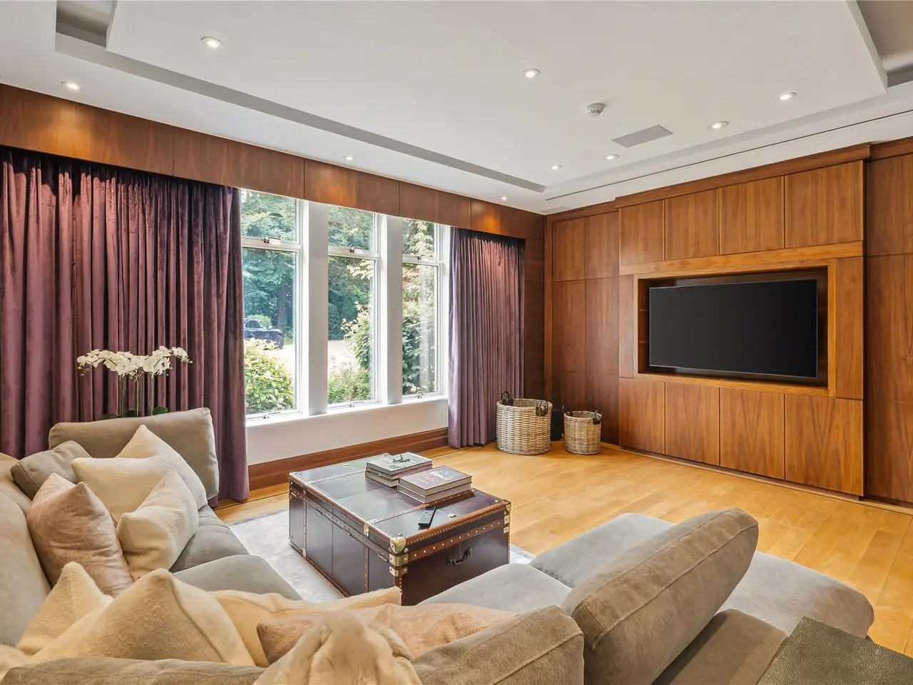 A magnificent eight bedroom estate set in about 2.6 acres of exquisitely landscaped, lily pond gardens on St George’s Hill’s premier road, East Road, and moments from the Lawn Tennis Club, with approximately 14,856 square feet of finely arranged accommodation, Park Hill is designed for both grand entertaining and effortless family living. Beyond an impressive reception hall, the drawing room opens via bi-fold doors to the grand water gardens. The drawing room is complemented by sitting and dining rooms, a study and a versatile family/TV room. The heart of the home is a generous kitchen with a family dining area and a living space. The ground floor further offers a utility and boot room. Upstairs, the principal suite features a private balcony and dressing room, with seven additional bedroom suites providing superb guest and family accommodation. A top-floor media/games room and separate office add further flexibility. Wellness and leisure are centre stage: an indoor swimming-pool complex with steam room, gym and changing facilities opens to the gardens, while a self contained staff apartment ensures discreet service. The specification includes air conditioning and underfloor heating. A double garage completes the offering. A byword for privacy and prestige, St George’s Hill is one of England’s most celebrated private estates. Set amid mature woodland and sweeping avenues, the estate combines grand architecture on generous plots with 24 hour security and discreet well-kept private roads. Daily life revolves around exceptional amenities: the historic St George’s Hill Golf Club, a renowned Harry Colt design, and the Lawn Tennis & Health Club with racket sports, pool and fitness facilities. Moments from Weybridge, Cobham and Esher, residents enjoy refined dining, boutique shopping and riverside walks, with the Thames and Surrey commons close at hand. Connectivity is effortless: fast services from Weybridge reach London Waterloo in around half an hour; the A3 and M25 are nearby; Heathrow and Gatwick are within easy driving distance. The area is also prized for schooling, with leading independents such as St George’s (Weybridge) and ACS Cobham among a strong local line-up. International in outlook yet reassuringly residential, St George’s Hill offers rare seclusion, first class amenities and seamless access to London—making it a perennial choice for UHNW families and global executives. Situated close to the St George’s Hill Lawn Tennis Club, Park Hill enjoys excellent connectivity: Weybridge 2 miles, Esher 4 miles, Heathrow 15 miles, Central London 22 miles, Gatwick 27 miles (all approx.).