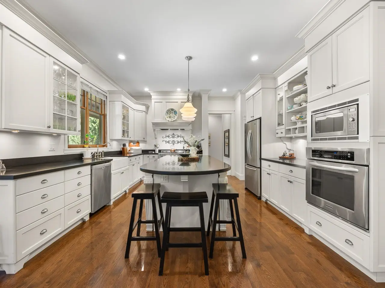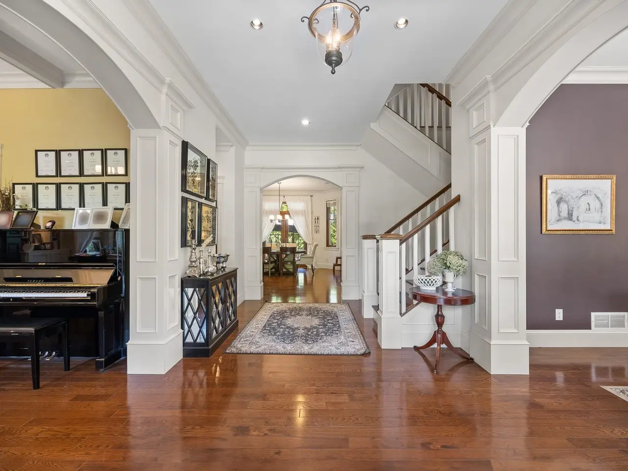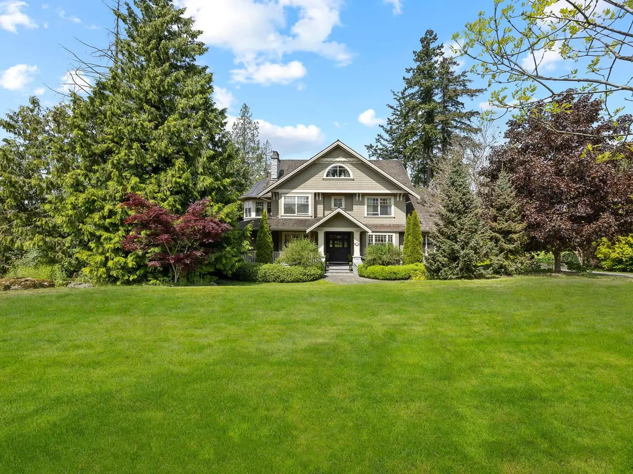 Timeless Shaughnessy-inspired estate residence situated on Grandview's most prestigious locations. Designed by renowned Loy Leyland, this 6,800sqft custom-built home exudes quality craftsmanship with traditional charm. Walking through the front porch, you’re greeted by cross-hall formal living and dining rooms, beautiful dream kitchen and a spacious family room. Seamless access to the outdoors through multiple sets of French doors and a private guest room tucked away on the main. 4 bedrooms above, including the charming primary suite with a private deck. Bonus loft floor above perfect for a games room or study area. Lower level complete with a spacious rec. room, bar, gym and guest bedroom. Situated on a full ACRE, this property offers North Shore Mountain views with ample privacy.