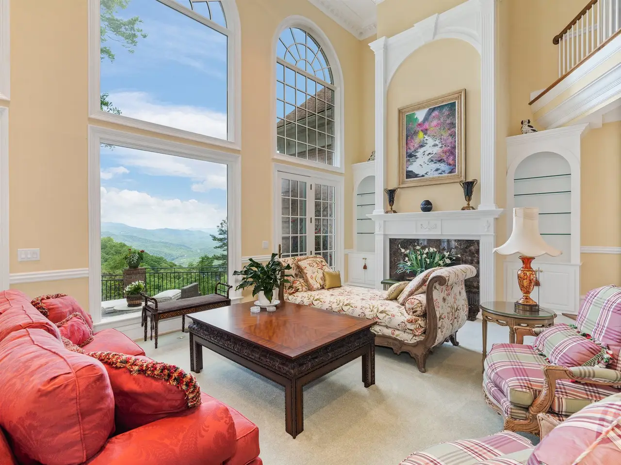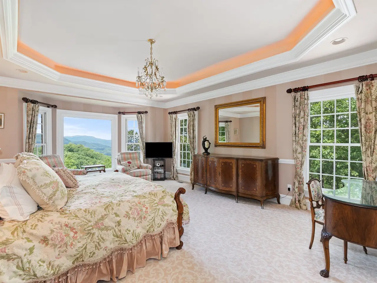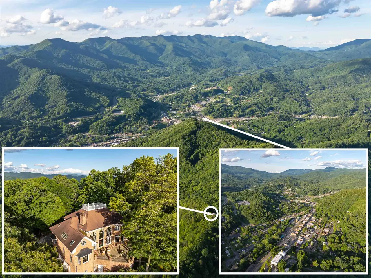 Welcome to "Two Pines," an exquisite, gated, and private mountain retreat minutes from the Great Smoky Mountains and downtown Sylva, North Carolina. This property offers approximately 161 acres of beauty with stunning mountain and city views. A grand foyer leads to a sunken living room and formal dining room with a discreet bar. The chef's kitchen features granite countertops and a breakfast nook. The primary suite boasts a backlit tray ceiling and luxurious amenities, with four additional en suite bedrooms. The 7,400-plus square feet of living space includes a family/game room with a bar and a four-level elevator for easy access. Outside, enjoy the private pond with a gazebo and fire pit. The home, built with 12-inch soundproof walls, ensures peace. A wine room caters to connoisseurs, and a three-car garage offers ample space for parking and storage. This retreat combines luxury living with natural beauty as it is perfectly positioned atop the ridge, yet easily accessible by the gated paved driveway.