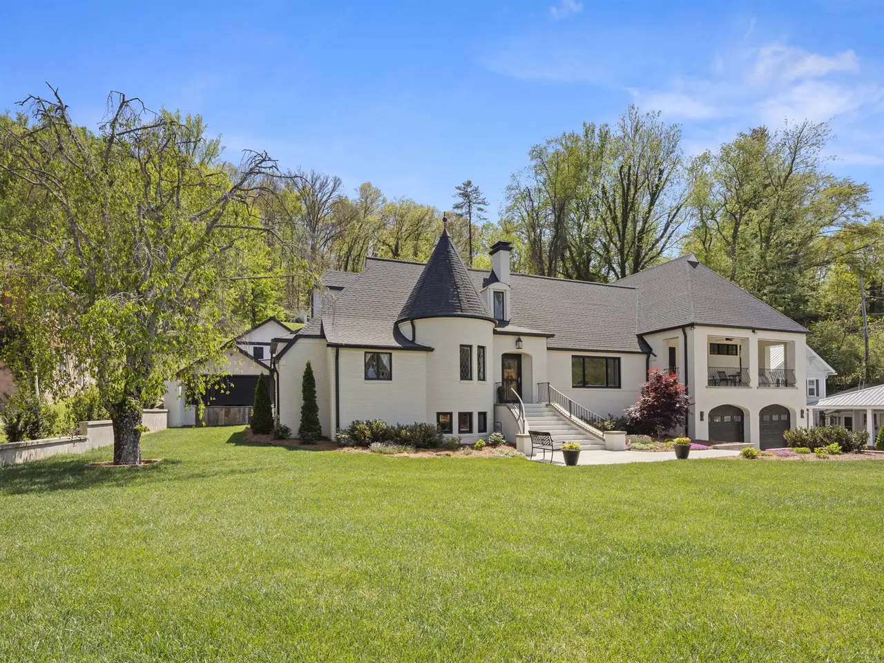Welcome to the perfect spot for unparalleled in-town living at its finest. Located in the heart of Downtown Sylva, this meticulously restored 1939 French provincial home offers breathtaking views of the surrounding mountains and charming Sylva. Designed by the celebrated architect Charles N. Parker of Asheville's iconic Grove Arcade, this home is a rare opportunity to own a piece of history. Relax in the epic four-season outdoor living space, perfect for entertaining or unwinding, complete with living and dining spaces, a cozy fireplace, TV, grill station, and hot tub. The property also boasts a heated 4-car garage, 500 SF workshop, heated sidewalks, laundry on two levels, and a full terrace level with media room, home gym, and ample storage. Best of all, this exquisite home is just steps away from Sylva's vibrant shops, restaurants, and breweries. Whether you're seeking an enchanting second home or a unique local residence steeped in history, this gem offers appeal and sophistication.