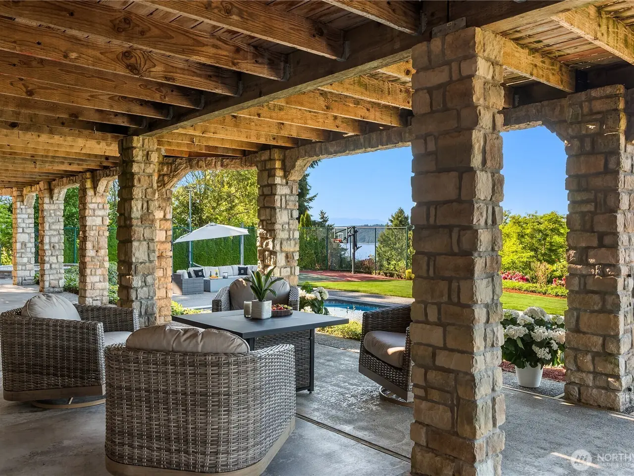 Panoramic Puget Sound views and vacation-worthy amenities beckon at every turn; this Browns Point residence is a true Pacific Northwest treasure. Splendid living spaces promise epic entertaining & luxurious relaxation. Chef's kitchen boasts rare Koa wood cabinetry, heated granite floors, dual Sub-Zero fridges, butler's pantry. Absolutely dreamy suites feature view decks & spa-inspired ensuite baths; guest suite features 2nd kitchen. Home theater, premium wine storage, office, gym, 6-car detached garage ready to impress. Heated in-ground pool & spa, sport court, manicured gardens offer outdoor bliss! Full security system w/12-camera surveillance ensures peace of mind. Close to Dash Point State Park, Center at Norpoint, golf, shopping, marinas.