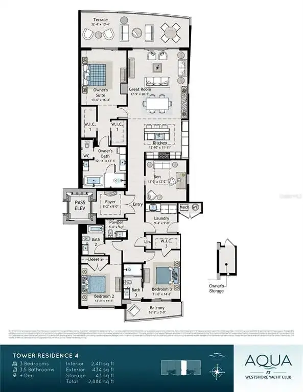 One or more photo(s) has been virtually staged. Under Construction. Introducing AQUA at Westshore Yacht Club on the grounds of the exclusive gated waterfront community in South Tampa. Residence #904 a 3 bedroom, 3.5 bath plus a den with 2,411 Sq. Ft and an additional East facing terrace accessed from the 3rd bedroom. Westshore Yacht Club’s newest residential tower: standing 17 floors, offering 77 luxurious condominium residences with sweeping sunset views and sunrise city views. Secure fob private elevator that opens into your private entry foyer. Interiors boast the finest finishes such as Italkraft premium cabinetry, quartz waterfall countertops, large format porcelain tile, Sub-Zero and Wolf appliances with induction stove top. Wide-open sun filled living and dining rooms with floor to ceiling windows and sliders accessing the West facing terrace, offering amazing sunset and Bay views. Generously sized Owner’s Suite enjoys 2 walk-in closets, spa-inspired Owner’s bath with large walk-in-shower and freestanding soaking tub, private lavatory enclosure, 2 separate vanity locations with premium fixtures. Amenity rich, the building features a rooftop sky pool with bay views and private cabanas, with breathtaking views of Old Tampa Bay, plus a 3rd floor pool with spa, outdoor grilling station and lounge area. Spacious and elegantly appointed club room with conversational seating areas, sports lounge and billiard area and private dining room. State of the art golf simulator, theater with plush seating, private offices, children’s playroom and 2 fully furnished guest suites. Bay Front fitness center on the 17th floor with yoga and spin room. Climate controlled storage for each residence on the same level. Residents and guests will be welcomed by valet attendant under the covered porte-cochere entrance leading to the residential lobby, with signature ceremonial staircase that leads to the second floor lounge library. 24/7 staffed lobby, on site property manager and service personnel ensure an effortless lifestyle. Westshore Yacht Club is South Tampa’s premier unique Gated waterfront community, boasting the exclusive members-only Bay Club and Marina, 149 boat slips, two resort style swimming pools, outside Tiki Bar, and indoor fine dining, 806 Sunset bar, Day Spa, fitness center, community, and dog parks. All this and only 30 minutes to the beaches, 15 minutes to downtown Tampa and St. Petersburg, as well as Tampa and St. Pete Airports, and all the restaurants & shopping Tampa Bay has to offer. AQUA offers a stunning amenity package… Including free-flowing pools, private resident’s lounge, 3 rooftop sky pools, state of the art fitness, private screening room, pickleball in future phases and so much more! This indulgent lifestyle is all included at AQUA. Combining this with an optional membership to the Bay Club, AQUA stands out as one of the most enviable lifestyles in all of Tampa at a price point that can’t be matched by any other development in the Tampa area! For a limited time, Westshore Group is offering a 1 year membership to the Bay Club included in the price, as well as other incentives. Come and explore our sales gallery and take a tour of the last available site at Westshore Yacht Club… Discover the AQUA difference!
