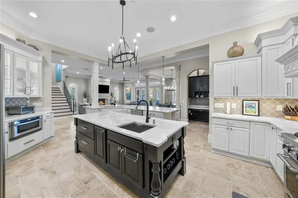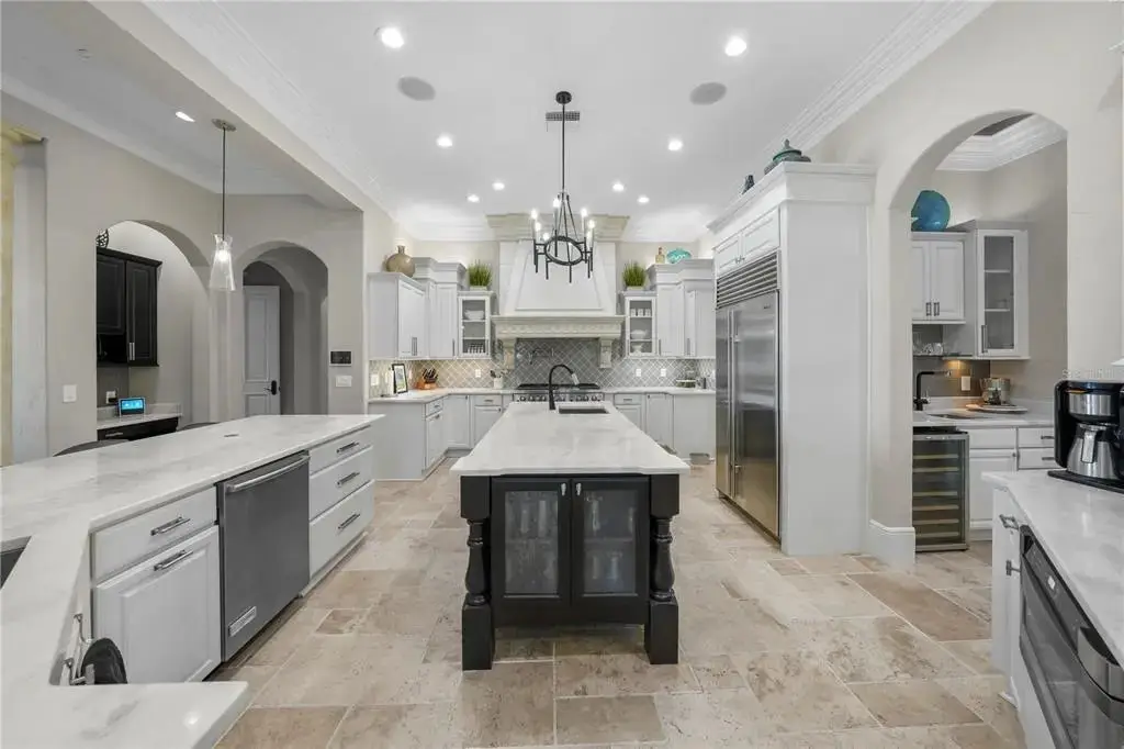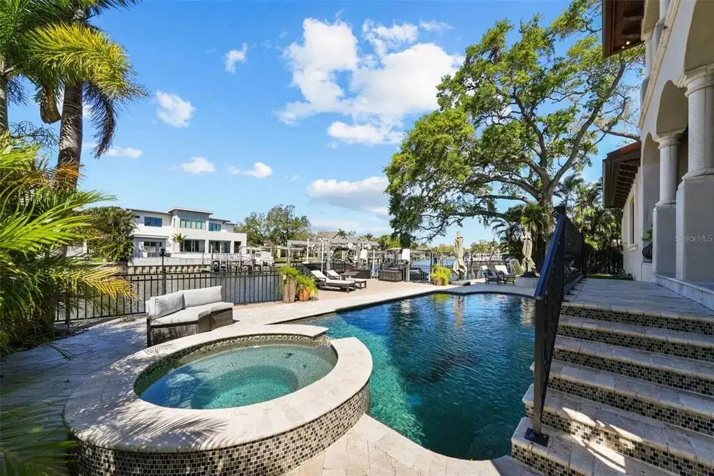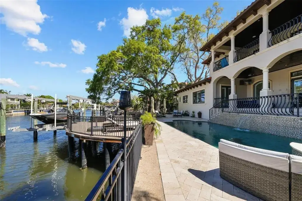 Beautiful Mediterranean style, custom Boss and Mennie home on coveted Davis Island. This stunning, move-in ready home is on a wide deep water canal with two electric lifts and is a short boat ride to the open bay. This beautiful and functional floor plan features just shy of 6,300 heated square feet with 4 generous bedrooms and 5 full and 2 half baths. Upon walking in the stunning double door arched entry, you will find an expansive and open floor plan with a spacious recently updated master on the ground floor. The gourmet and recently updated kitchen is in the center of the home and features top of the line appliances, custom cabinets, a large Butler's pantry and features beautiful views of the water. This home is perfect for entertaining as the kitchen also overlooks the family room with gas fireplace and a climate controlled wine cellar. Also on the ground level, is a formal dining area, expansive storage/laundry room and a bonus room/office. The master retreat overlooks the backyard area with a sitting area, large walk-in closet with custom shelving and a beautiful bathroom area with a jetted spa soaking tub and a multi-jetted spa shower that boasts water views from the expansive windows. Upstairs, you will find three ensuite and sizable bedrooms and a fully functional movie theater (could be made into 5th bedroom), Huge loft/game area, entertaining bar and French doors that lead out to a large back balcony area, perfect for relaxing or entertaining. The outdoor area features a pool, spa and firepit area as well as a side yard that has been turfed with enough area for a play set or outdoor activities. The home also features a 3 car garage and a large dock with one boat lift and two jet ski lifts. Bring your toys and start living the Islands lifestyle! Located on beautiful Davis Islands just across from the walking and bike path and just a short distance away from Davis Islands Village with many restaurants, shops, and bars. Bring your golf cart and enjoy the Island lifestyle with walking / biking paths, baseball fields, public tennis courts, public historic pool, two dog parks (one wet and one dry), a beach, public marina, and an airport. Located only minutes from Downtown Tampa, Water Street, Sparkman Wharf, and the Tampa Riverwalk, makes this neighborhood the most desired in South Tampa!