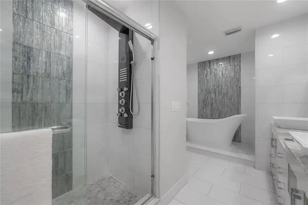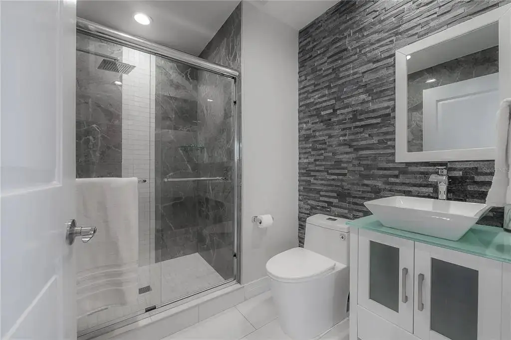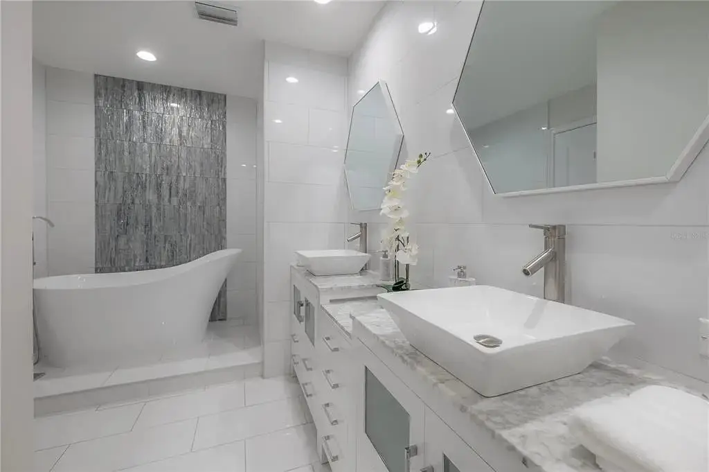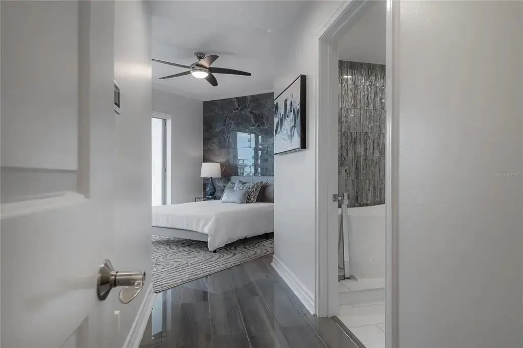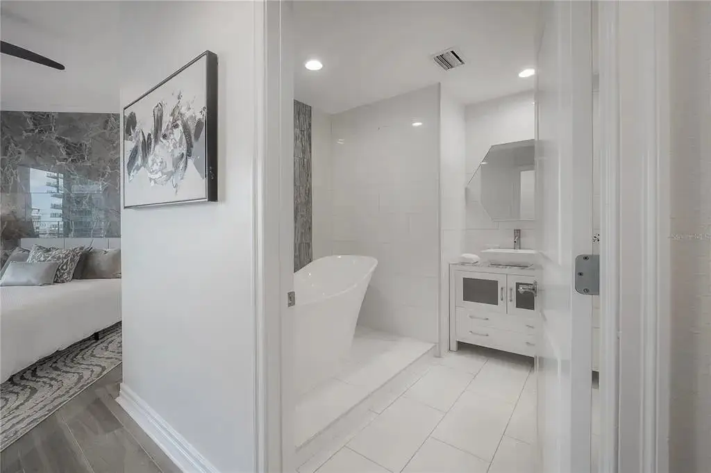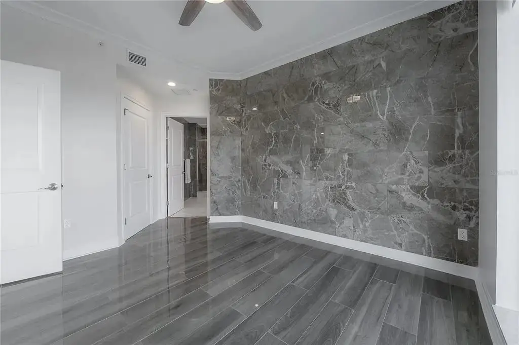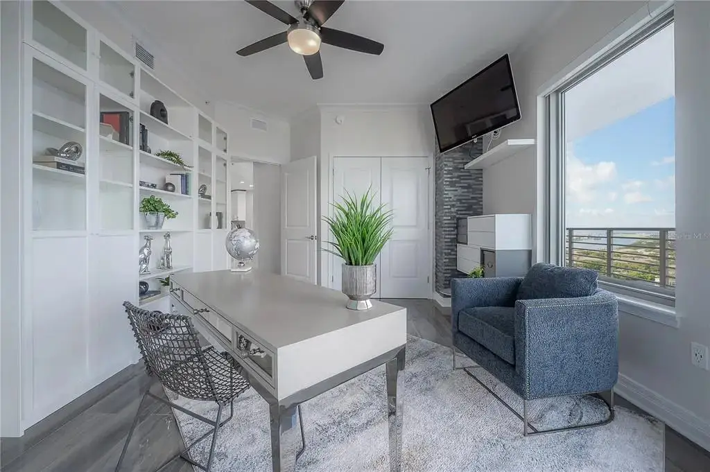 Discover contemporary elegance in this beautifully renovated 20th-floor residence showcasing stunning views of Water Street, Harbor Island, Garrison Channel, and the downtown skyline. Offering 1,733 square feet of open living space, this unit features newer porcelain tile floors throughout, a sleek updated kitchen with marble countertops and white cabinetry, and floor-to-ceiling windows with electric blinds. The luxurious primary suite boasts a modernized ensuite bath with dual sinks, separate tub with a walk-in shower, custom built walk-in closet, and sliding doors to the expansive 1,322 square foot wrap-around terrace, updated with new pavers—perfect for entertaining, enjoying the sunrise or relaxing outdoors. Renovated bathrooms add sophistication throughout. Residents enjoy resort-style amenities including a tropical pool and spa, 24-hour concierge and security, and two rooftop dog walks. This unit comes with two assigned garage parking spaces. Ideally located, with walkable access to Sparkman Wharf, the Tampa Riverwalk, Channelside, top dining, as well as concerts and Lightning hockey at the nearby Benchmark International Arena.