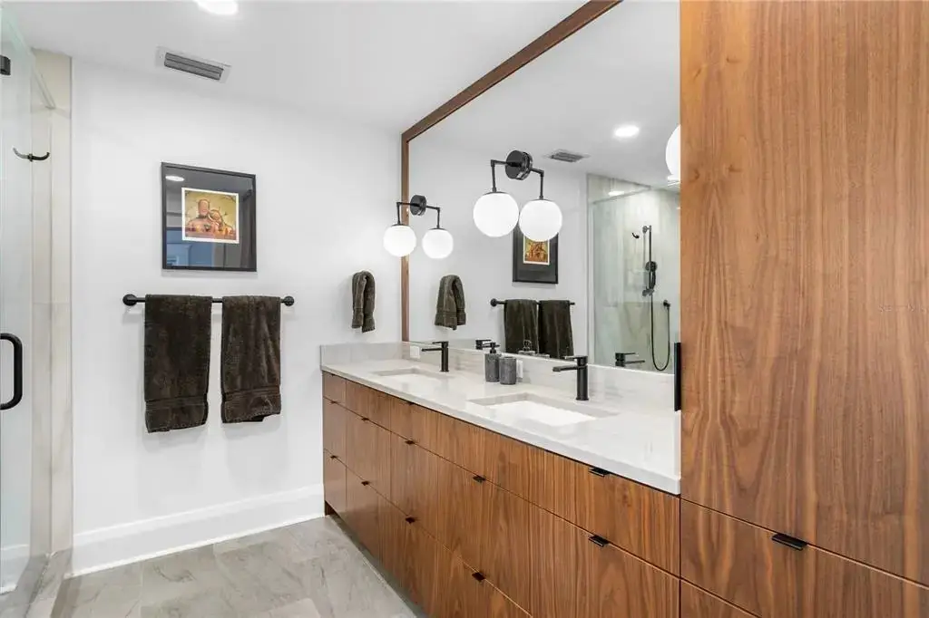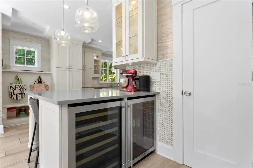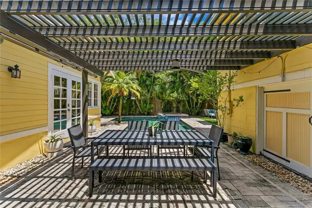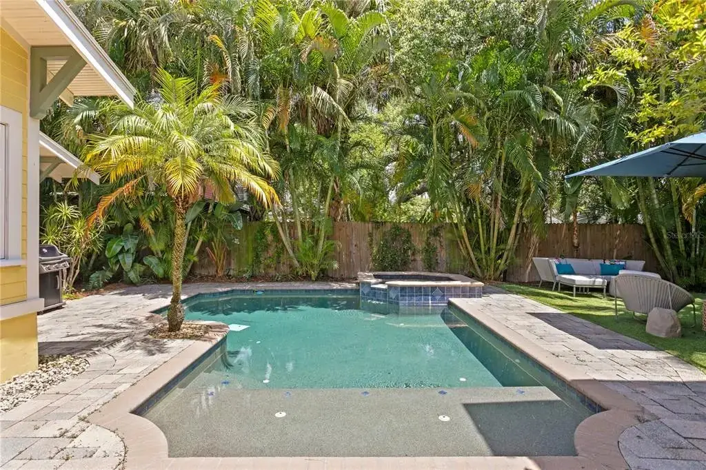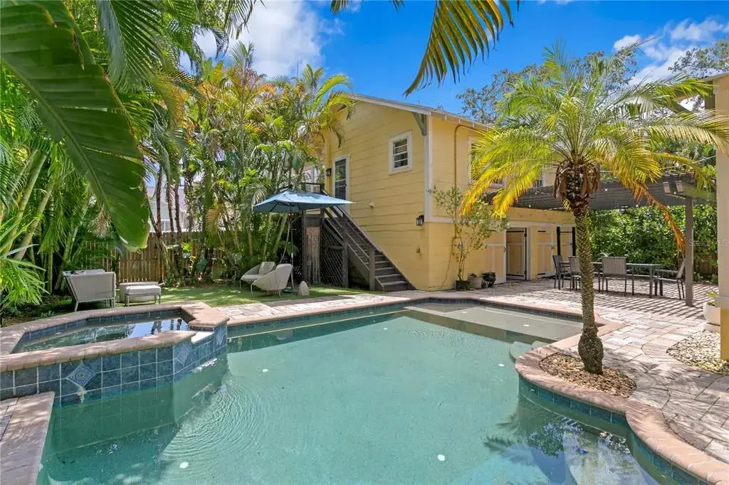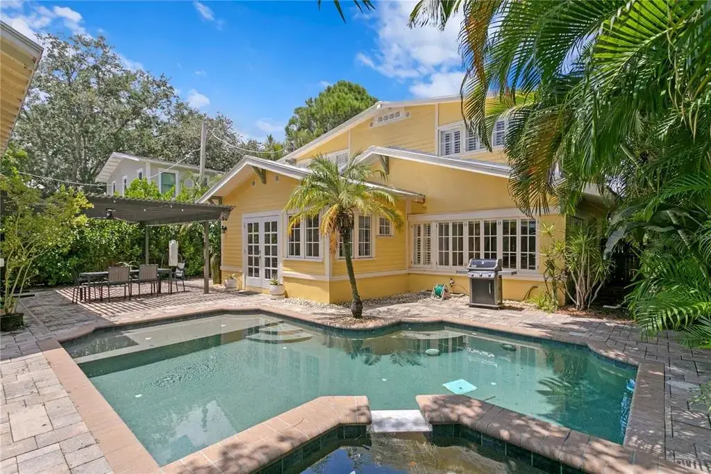 Introducing one of Hyde Park’s most remarkable homes! This beautiful Craftsman-style bungalow in Historic Hyde Park North blends timeless architectural character with more than $200,000 of carefully selected upgrades. The main home offers four bedrooms, three full baths, and 2,564 square feet, while the detached guest house provides two bedrooms, one bath, and 672 square feet of independent living space—ideal for extended family, long-term guests, or a private retreat. A wide front porch sets the tone for what’s inside. The living room welcomes you with original hardwood floors, French doors, custom built-ins, and a beautiful white brick fireplace that anchors the space with warmth and charm. The flow continues into the dining room and chef’s kitchen, which pairs quartz countertops and stainless steel appliances with thoughtful upgrades like double wine refrigerators and a built-in Miele coffee maker. A new dishwasher (2023) and whole-home water softener and filtration system further elevate convenience and comfort. The main-level primary suite is a private sanctuary, offering a potential sitting area, spacious walk-in closet, and a spa-style bath renovated in 2023 with dual vanities and high-end finishes. Also on the first floor, a dedicated office that doubles as a fourth bedroom sits adjacent to a fully renovated guest bath, creating the perfect setup for hosting guests or multigenerational living. Upstairs, two oversized bedrooms with walk-in closets share a renovated double-vanity bath—completing the 2023 transformation of all three full bathrooms in the main home. Everyday life is made easier with two laundry areas, one upstairs and one downstairs just to add another touch of convenience. Behind the scenes, this home is as modern as it is beautiful: a new HVAC system with a 24-volt thermostat adapter and EcoBee Pro WiFi thermostat (2023) ensures efficiency, while an integrated outside air intake improves indoor air quality by creating a positive pressure system. Further updates include attic ventilation (2023), new refrigerant piping and insulation, waterproofing beneath the home (2023), and a sump pump and a French drain installation (2022). Step outside and you’ll find an entertainment-ready backyard retreat. A custom pergola (2023) frames the outdoor living area, leading to a heated, in-ground saltwater pool with a new motor and filter (2024). Surrounded by lush landscaping, turf play areas, and a paver patio, the backyard is designed for everything from weekend pool parties to quiet evenings dining al fresco. The guest house above the garage functions as a complete residence, with a living room, full kitchen, two bedrooms, and a full bath—perfect for guests, in-laws, a rental opportunity, or a private workspace. With a resurfaced driveway (2022), the durability of a 2016 metal roof, and extensive recent updates, this home offers peace of mind as well as beauty. Just steps from Hyde Park Village’s shops and dining, the waterfront charm of Bayshore Boulevard, and located in the coveted Plant High School district, this home delivers history, luxury, and location in one. A rare Hyde Park gem where every detail has been thoughtfully elevated.