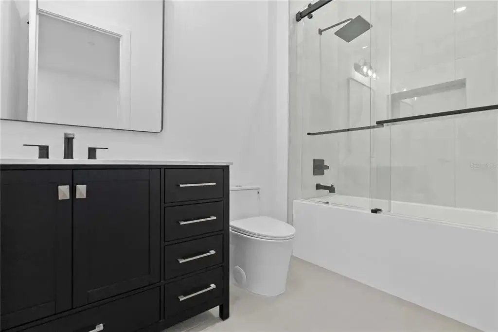 UNDER CONSTRUCTION. Anticipated completion 10/31/2025. Welcome to this design-forward masterpiece where farmhouse charm meets sleek contemporary design in the heart of Midtown. This brand new 5-bedroom, 5.5-bath home spans 3,420 square feet of elevated living, expertly crafted with luxury finishes and thoughtful functionality throughout — and best of all, not located in a flood zone. Inside, smooth Level 4 walls and engineered oak hardwood floors create a refined, minimalist backdrop. The open-concept great room features a statement fireplace, flanked by designer sconces and bathed in natural light. The chef’s kitchen stuns with fluted black paneling on the island, custom white and black oak cabinetry, and striking pendant lighting — all seamlessly connected to the bar and pantry for effortless entertaining. Retreat upstairs to the second-floor primary suite, where spa-like serenity awaits with a freestanding tub, dual rain showerheads, a chandelier over the tub, and a white oak vanity layout accented by bold black plumbing fixtures.