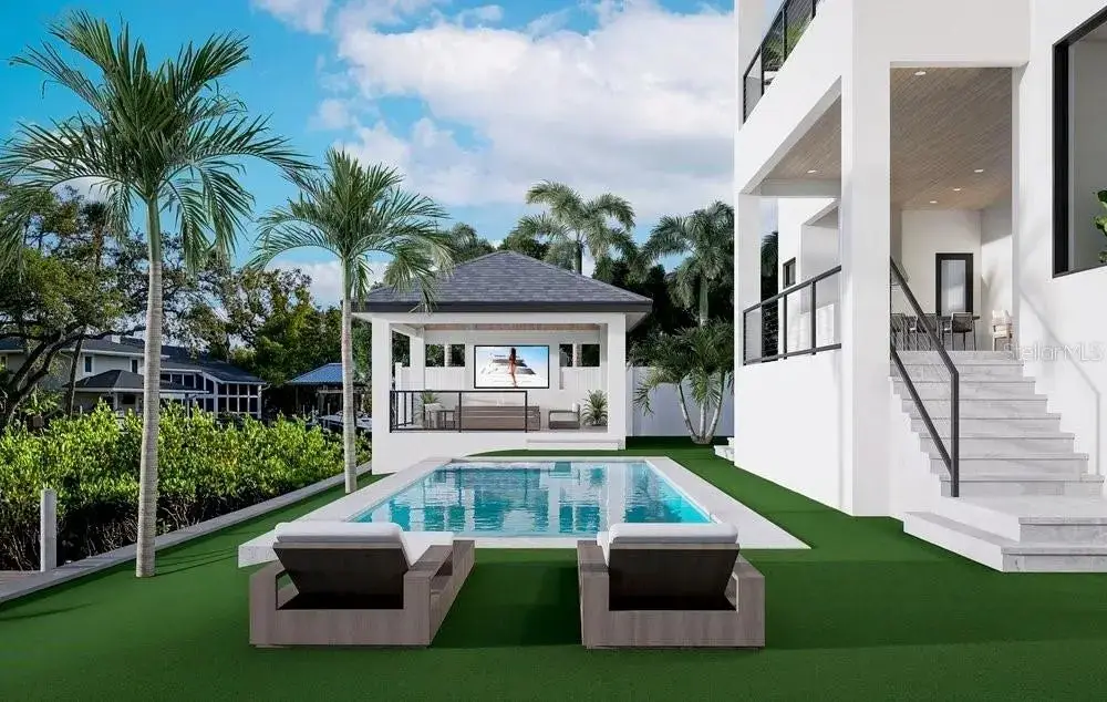 Under Construction. An elegant blend of Modern Design and Comfort. Brookshire Homes, a luxury home builder in South Tampa presents 5011 Shore Crest Dr. This new construction waterfront home features 5 bedroom suites, 5 full baths and 2 powder rooms, an elegant office, large media room, formal dining with a adjacent wine room, a chef's kitchen with state-of-the-art Thermador appliances, sleek cabinetry and a spacious island and a breakfast nook. In addition, a "dirty kitchen" with sink/dishwasher & coffee maker plus space for a second refrigerator and washer /dryer hook-up. Easy access from garage thru mudroom for deliveries of groceries. The kitchen opens up to a light & bright family room with an elegant gas fireplace and large glass sliders to the very spacious covered patio, with outdoor kitchen and views of the canal as well as the pool/spa and detached cabana. On this level you will also find the 5th bedroom suite. The second level encompass a large Primary suite, with an attached balcony, huge primary bath with separate vanities, free standing tub, large shower and a walk-in closet to die for! The main laundry room conveniently located on this level as well as 3 additional bedroom suites. In addition the home features a 3 car garage (split 2+1) with a circular driveway, heated pool and spa, cabana with built-in fire pit, new seawall, dock with 10000 LBS lift + a very convenient elevator from garage to first and second level Hardwood floors throughout except in wet areas, 12-foot ceilings on first level, 10ft on second floor, all block construction, wired for Smart Home, and so much more!