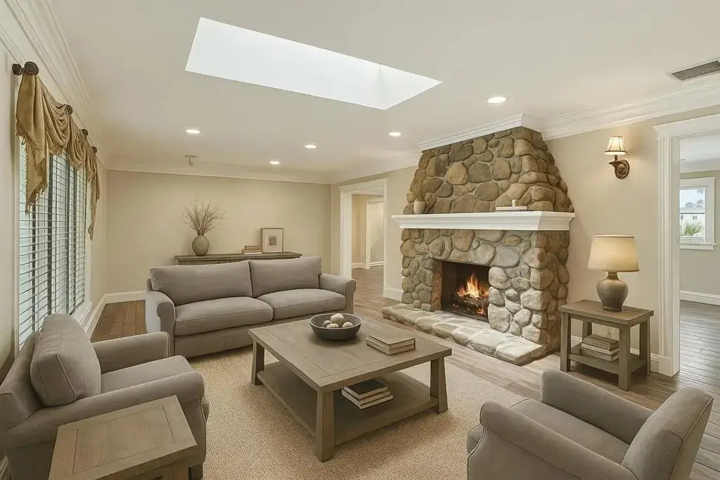 Experience Exceptional Waterfront Living in Tampa’s Coveted Beach Park Neighborhood. Welcome to one of Tampa Bay’s most desirable waterfront properties—peacefully tucked away on a quiet, tree-lined street in the prestigious Beach Park community. Despite its tranquil setting, this home offers unbeatable convenience—just 6 minutes to Tampa International Airport, 8 minutes to Downtown Tampa, and with quick access to I-275 and Veterans Parkway—making it perfect whether you're commuting locally or arriving from anywhere in the world. Sitting on an expansive 16,500+ sq ft lot with over 105 feet of waterfront and direct bay access, this 6,250 sq ft custom residence is one of the largest estates in Beach Park—blending timeless design with modern luxury. Completely remodeled in 2008 and further transformed again in 2018, this move-in-ready home features expansive living spaces ideal for both relaxation and entertaining. The layout includes 7 bedrooms, 4 natural gas fireplaces, and dramatic custom industrial beamed ceilings in both the living room and first-floor primary suite—complete with its own fireplace and spa-like bath. The 2018 renovation elevated the heart of the home, including the kitchen, dining, and main living spaces, creating seamless indoor-outdoor flow perfect for Florida’s year-round lifestyle. Step outside to your private backyard oasis featuring a detached pool house, oversized pool, and lush landscaping—perfect for hosting gatherings or unwinding in total privacy. Enjoy stunning sunsets from your west-facing backyard. Additional features include a 3-car garage and an assumable flood insurance policy for added peace of mind. Located in one of Florida’s top-rated school districts, this home provides access to A-rated public schools, renowned International Baccalaureate (IB) programs, and award-winning private schools—making it an ideal choice for families. Whether you’re seeking the most competitively priced, move-in-ready waterfront estate of this size in Tampa or envisioning your custom dream home on one of the area’s premier waterfront lots, this property delivers a rare and exceptional opportunity. Schedule your private tour today and experience the best of Tampa Bay living.