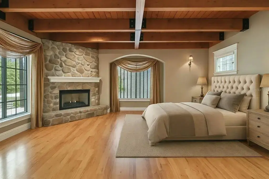 First-floor primary suite with fireplace
