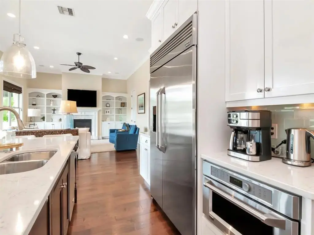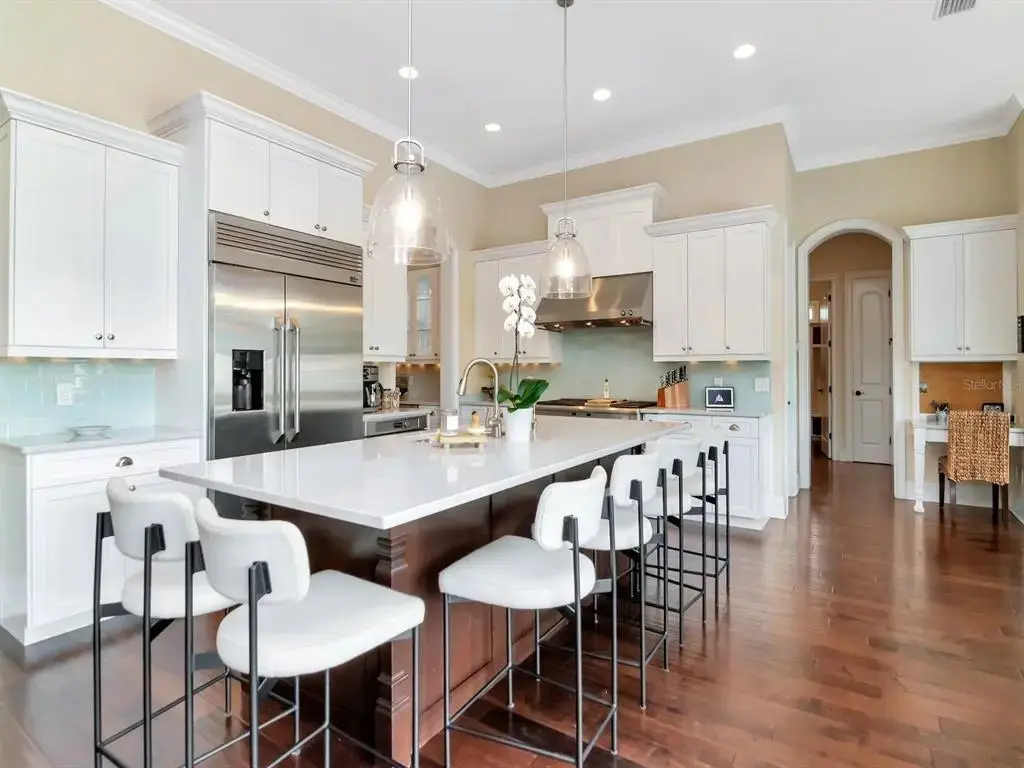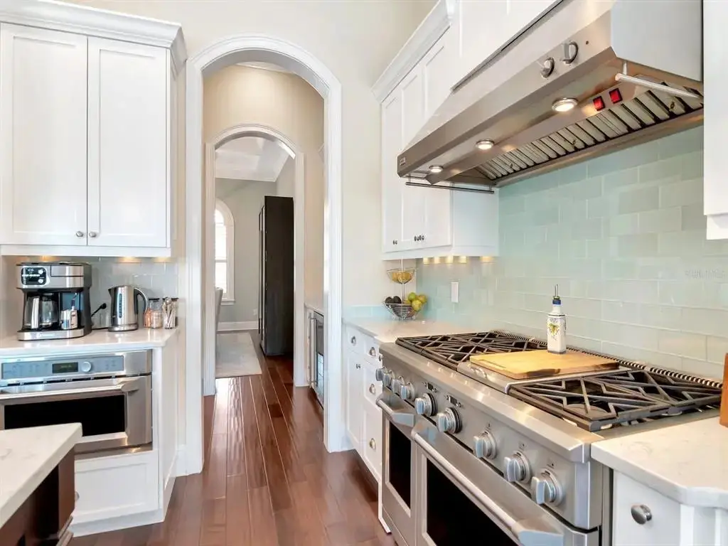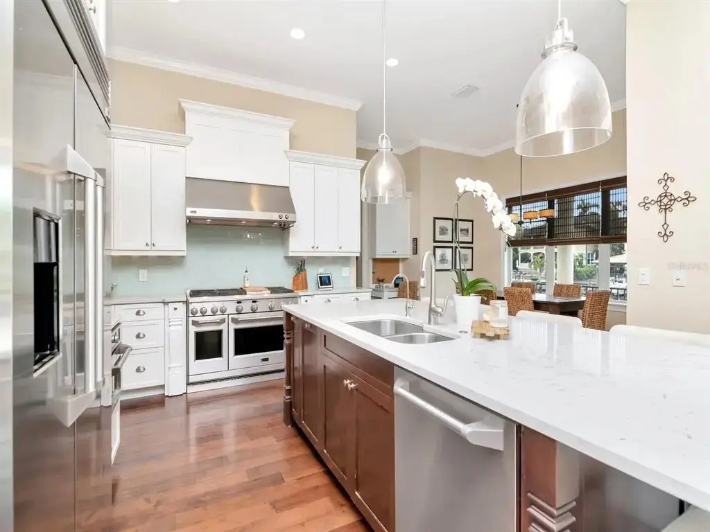 Chef's kitchen with custom cabinetry and top-of-the-line appliances