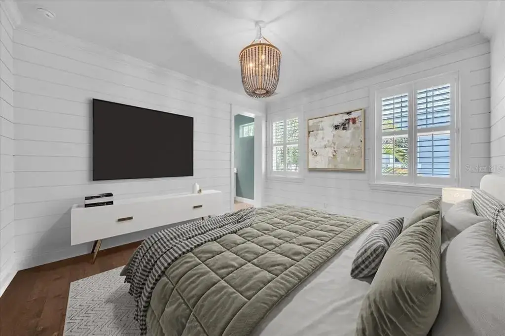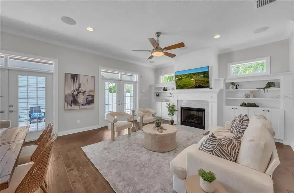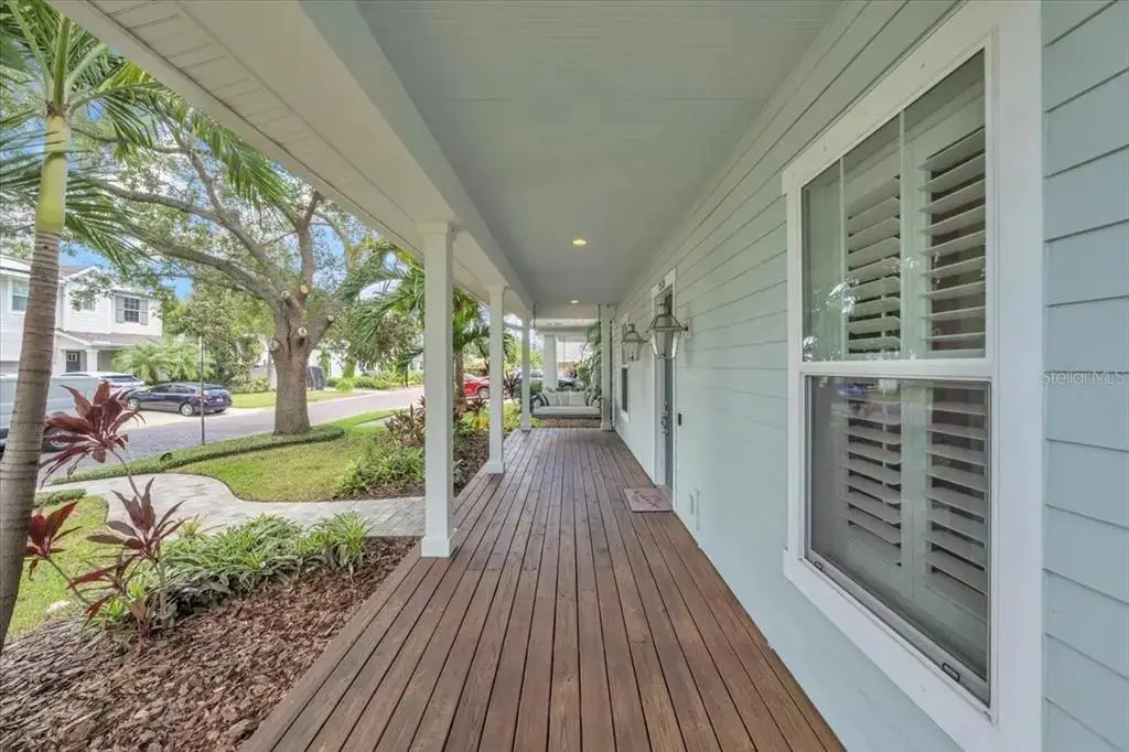 Under contract-accepting backup offers. This timeless Key West Craftsman, built in 2016, sits proudly on a corner lot in the heart of Palma Ceia. With 3,004 sq ft of living space, this home offers an open-concept design, high ceilings, and a detached garage topped by a private guest suite complete with full bath and kitchenette. You'll enjoy peace of mind knowing that this residence sits in flood zone X with no impact from last year's hurricanes. The first floor features a welcoming font porch with Bevolo gas lanterns wood-detailed ceiling, and swing, a flexible office or formal dining room, and a guest suite with private bath and walk-in closet. The spacious living area centers around a gas fireplace with custom built-ins and flows seamlessly into the chef's kitchen, boasting Quartz countertops, 6-burner Wolf gas range, large prep island, wine fridge, and butler's pantry. Upstairs, the Owner's Retreat includes vaulted beadboard ceilings, dual walk-in closets, and a spa-like bath with double vanities and a walk-in shower. Two additional bedrooms share a Jack & Jill bath. The outdoor living area is designed for entertaining, complete with a 10x25 saltwater pool, outdoor kitchen and full pool bath. Additional features include hardwood floors, marble tile in baths, plantation shutters, surround sound with outdoor speakers, camera system, and custom closets. Located in one of South Tampa's most desirable neighborhoods, this home offers a rare combination of craftsmanship, modern upgrades, and indoor-outdoor living.