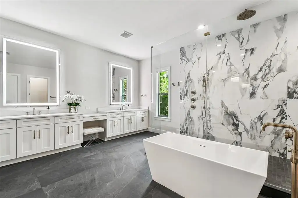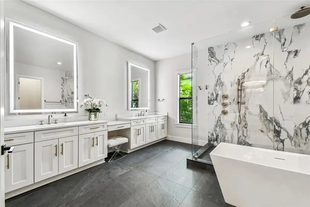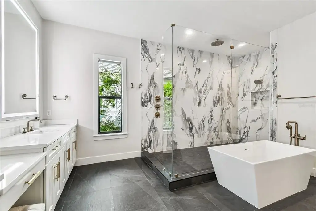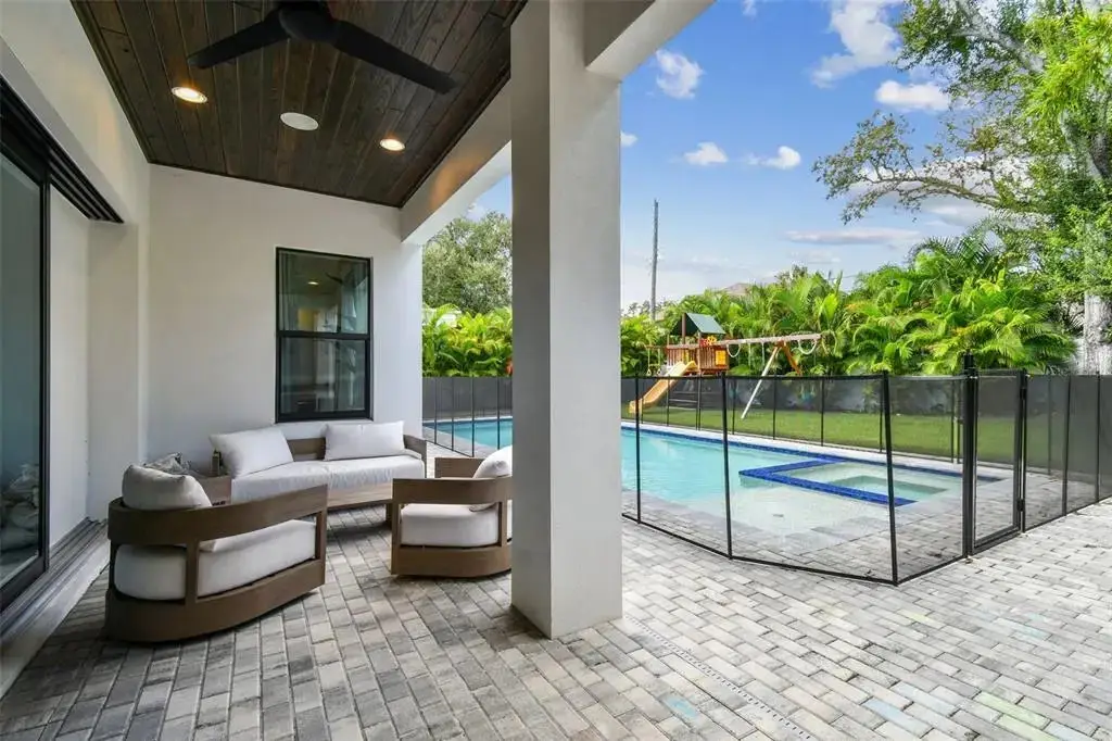 Luxury Living in the Heart of Swann Estates Experience elevated living in this newly constructed 5-bed, 4.5-bath custom home by Momentum Homes, featuring 4,597 sq ft of designer-curated interiors, a sparkling pool + spa, and zoned for A+ schools (Grady, Coleman, Plant). Built with solid block on both levels and outfitted with impact-rated Low E windows, this home blends timeless architecture with modern efficiency. Inside, enjoy wide-plank white oak flooring, custom wood cabinetry, and a chef’s kitchen with Thermador appliances, 48” gas cooktop, quartz island, butler’s pantry, and mudroom. The open-concept layout includes a spacious family room with a statement gas fireplace, private office, and media room. A first-floor guest suite offers en-suite bath and pool access. Upstairs, the luxe primary suite boasts an oversized walk-in closet and spa-style bath with freestanding tub and frameless glass shower. Professionally landscaped with a brick-paver driveway, covered patio that features a grill with skin and refrigerator as well as resort-style backyard—this home is an unmatched opportunity in one of South Tampa’s most prestigious neighborhoods. Please note that this home did not have flood damage from hurricanes in 2024.