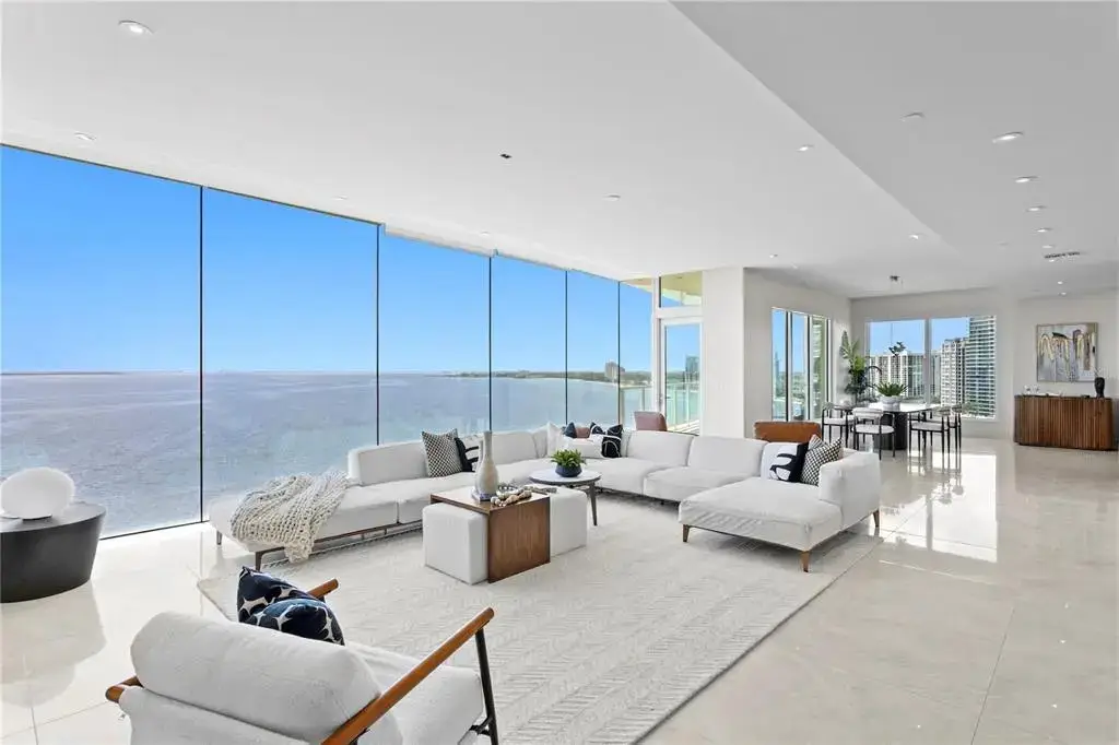 Welcome to The Sanctuary on Bayshore, South Tampa’s most exclusive residential address — where timeless architecture meets modern luxury, and offerings are as rare as they are exceptional. Perched high above Bayshore Boulevard on the 14th floor of this coveted 17-story tower — with only one residence per floor — Unit 1400 delivers a truly private, sky-high living experience that is as breathtaking as it is serene. Step directly from your private elevator into a dramatic double-door foyer that opens to 3,884 square feet of sweeping elegance. Spanning an impressive 48 feet across the front of Bayshore, this one-of-a-kind residence is framed by floor-to-ceiling glass walls and two expansive terraces, capturing unobstructed, panoramic views from sunrise to sunset — of Tampa Bay, downtown, and beyond. Designed with intentionality and flair, the home features 10-foot ceilings, a gracious open floor plan, and sophisticated finishes throughout. With three bedrooms, three and a half baths, and a versatile den, the layout seamlessly balances effortless entertaining with relaxed everyday living. The chef’s kitchen is a work of art — outfitted with a quartz waterfall island, Sub-Zero refrigerator and freezer, dual Gaggenau ovens, a Sub-Zero wine fridge, two dishwashers, and a gas cooktop — all while offering front-row views of the bay. Retreat to your primary suite, a true sanctuary within The Sanctuary, complete with a spa-inspired bath featuring an oversized soaking tub, a glass-enclosed shower, and bayfront views that soothe the soul. The custom California Closets-designed wardrobe is an unexpected luxury — nearly the size of the bedroom itself and expertly appointed. For peace of mind, the residence includes a full-home generator, offering true “lock and leave” confidence. Amenities include a resort-style pool and spa, state-of-the-art gym, and the security and discretion only a building like this can provide. Homes in The Sanctuary rarely come to market —This is a lifestyle for those who expect excellence, on Tampa’s most iconic avenue.