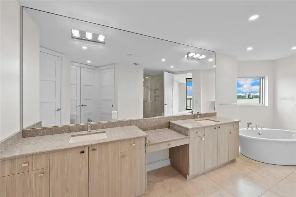 One or more photo(s) has been virtually staged. Don't miss this rare opportunity at VIRAGE BAYSHORE! This gorgeous front Bay-facing 3 bedroom + den/office, 3.5 bath condo boasts sweeping views of Hillsborough Bay and the downtown Tampa skyline. Step off the elevator directly into your private foyer and enter into gorgeous Bay and Bayshore Blvd. views. This home features beautiful porcelain tile throughout the open living area, gorgeous cabinetry, Wolf Induction Cooktop (gas available), Subzero Refrigerator and Pantry with dry bar. This kitchen is open to the light-filled Great Room and perfect for entertaining. The refrigerator located in the storage closet is excluded from the sale. Start the day on the spacious covered terrace, watching the sunrise with a cup of coffee. The Primary Bedroom also has access to the front balcony, a large spa-like bath with an oversized glass shower, separate tub, and a nicely finished custom walk-in closet. The corner den/office has access to the 2nd balcony, and is a great spot for sunsets and views looking South down Bayshore Blvd. Each guest suite has a private ensuite bath and a large walk-in closet. Bonus features include: high ceilings with added recessed lighting, motorized window shades, air conditioned storage closet adjacent to residence, and 2 parking spaces. The Virage is a luxury high-rise featuring 24/7 front desk concierge, resort-style pool overlooking Bayshore, spa, grilling area, fire-pit & social seating, club room, meeting room, a large gym, massage room, private dog walk, dog spa, bike room, air-conditioned storage, and 2 guest suites which can be reserved for your guests. Don't miss this rare opportunity to live the Virage Bayshore lifestyle!