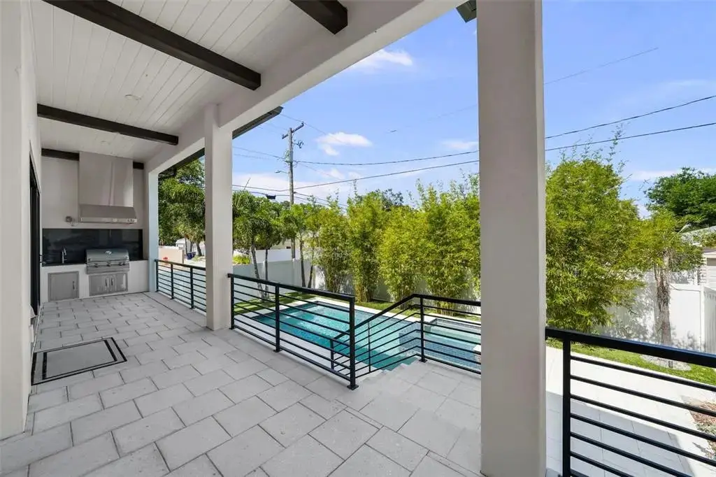 Built in 2022, this stunning 5-bedroom, 5.5-bath, 4,451 sq. ft. pool home offers modern luxury just steps from Davis Islands Village and minutes from Downtown Tampa. Elevated 12 inches above FEMA base flood elevation, the home remained high and dry with no water intrusion during both Hurricane Helene and Hurricane Milton—providing rare peace of mind. Designed with an open floor plan, the home features 12’ ceilings, wide-plank French oak flooring, and large impact-rated windows throughout. The gourmet kitchen includes Viking appliances, quartz countertops, walk-in pantry, and custom cabinetry. The great room showcases a linear gas fireplace and a climate-controlled wine room. A first-floor guest suite with private bath and dry bar offers ideal flexibility for use as a home office or in-law suite. Upstairs, the spacious primary suite includes two custom walk-in closets and a luxurious bath with a vessel tub and oversized shower. Three additional en-suite bedrooms and a bonus room complete the second floor. Enjoy year-round outdoor living with a covered lanai, built-in summer kitchen, and a resort-style pool with sun shelf and spillover spa. Additional highlights include a 2-car garage, tankless water heaters, upstairs storage room, and custom closet systems throughout.