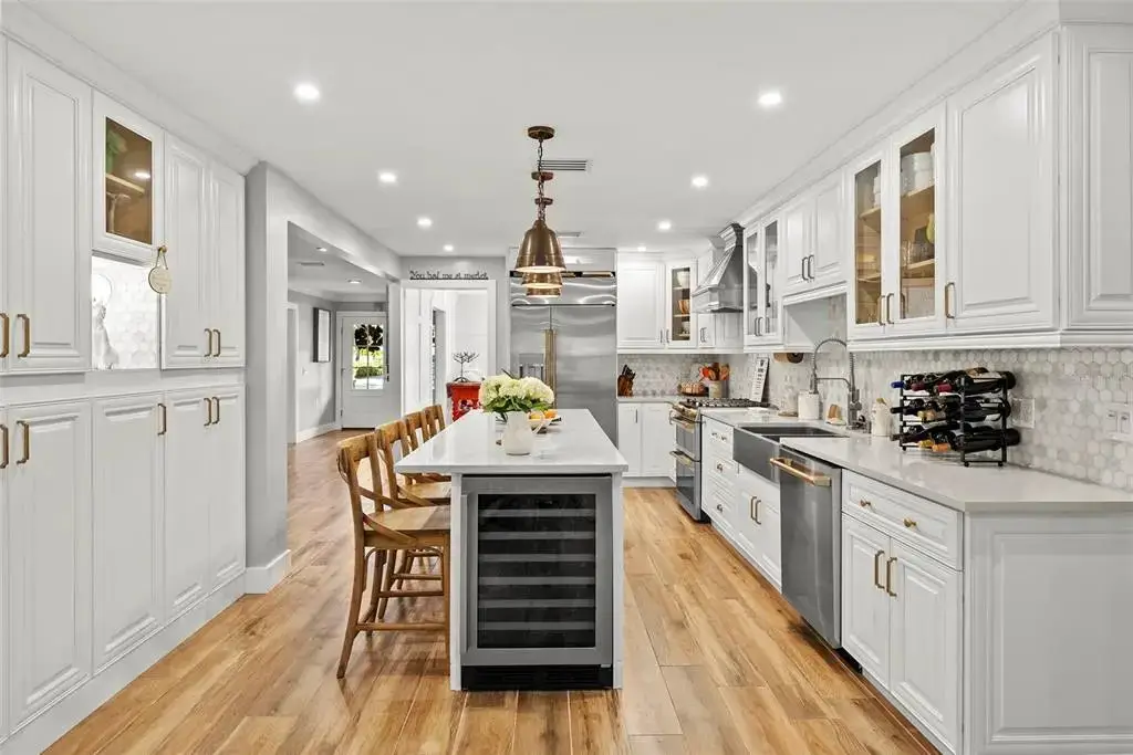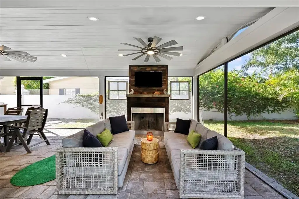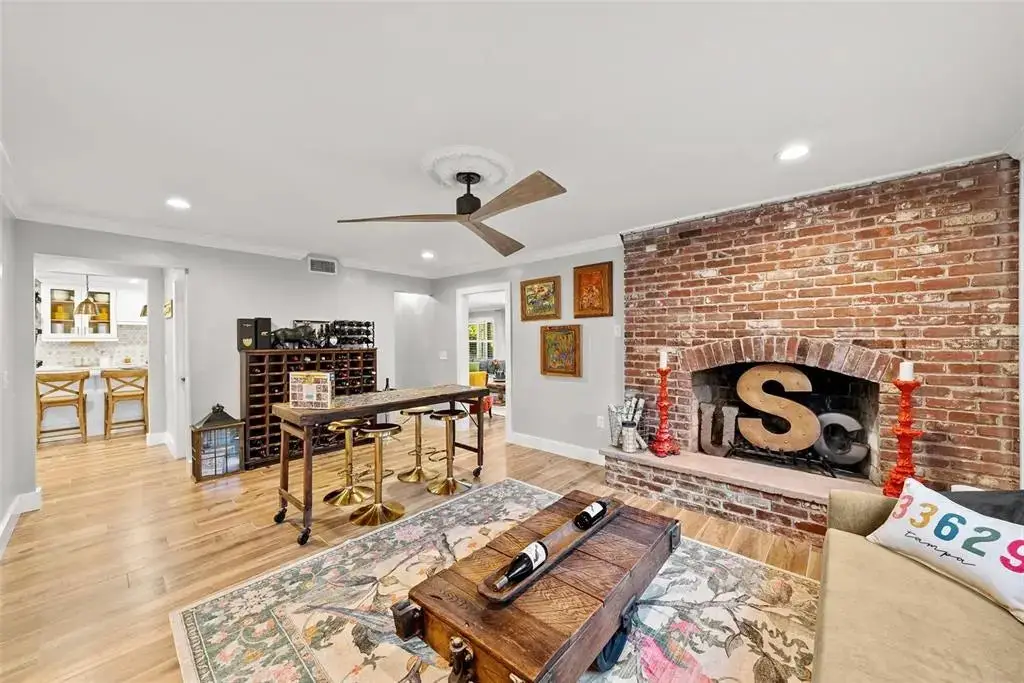 Tucked away on a quiet cul-de-sac in the heart of South Tampa, this reimagined modern farmhouse is where design and lifestyle intertwine. Beyond its classic façade lies a home that has undergone a complete transformation — a blend of timeless architecture and the art of modern living. Step inside and feel the energy of open, sun-filled spaces that invite connection and creativity. Every room flows seamlessly into the next — from the welcoming front living area (perfect for cocktails and conversation) to the expansive family room that opens effortlessly to the outdoors. Whether it’s movie night, a dinner party, or a spontaneous Sunday brunch, this home adapts to every mood and moment. At its heart is a brand-new chef’s kitchen and dedicated bar area that inspire culinary play. Outfitted with high-end GE Café appliances, a gas range, wine fridge, and generous cabinetry, it’s a space designed for both cooking and gathering. The adjacent flex room doubles beautifully as a creative studio, home gym, or vibrant workspace. Slide open the doors and step into your own backyard retreat — a reimagined entertainment oasis. The sparkling pool shimmers beneath string lights, while the paver deck, outdoor kitchen, and gas fireplace set the stage for unforgettable evenings. Grill, gather, laugh, and lounge — this is where the best memories are made. Upstairs, the private quarters balance tranquility with sophistication. The primary suite feels like a boutique escape with dual walk-in closets and a spa-worthy bath. Two guest suites share a chic Jack-and-Jill bath, and a third-floor retreat offers perfect privacy for guests, an au pair, an independent teenager or an artist in residence. Completely move-in ready with new AC systems (2025), a newer roof (2023), new pool heater (2023), gorgeous landscape lighting (2022), newer lanai (2020), plus a 110V EV charger in the garage — every detail has been considered. Within walking distance to Mabry, Coleman, and St. Mary’s schools, this home captures the art of living beautifully — where every corner invites you to entertain, create, and simply be.