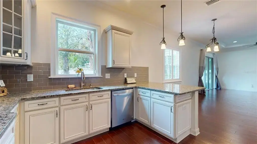 Gleaming wood floors and granite countertops
