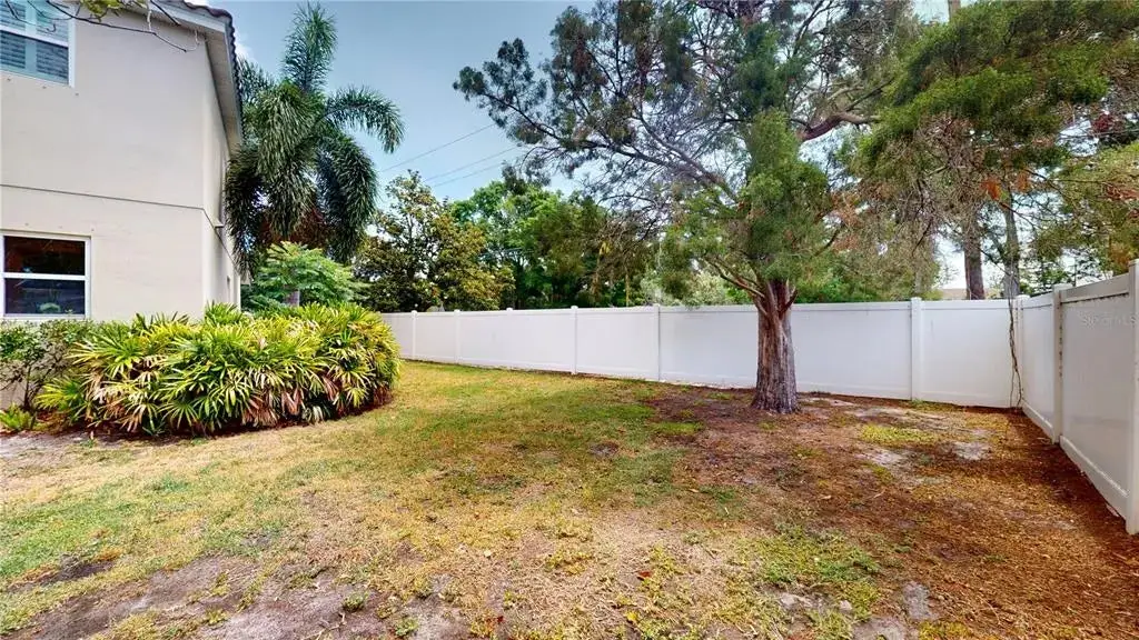 Large fenced yard with covered patio