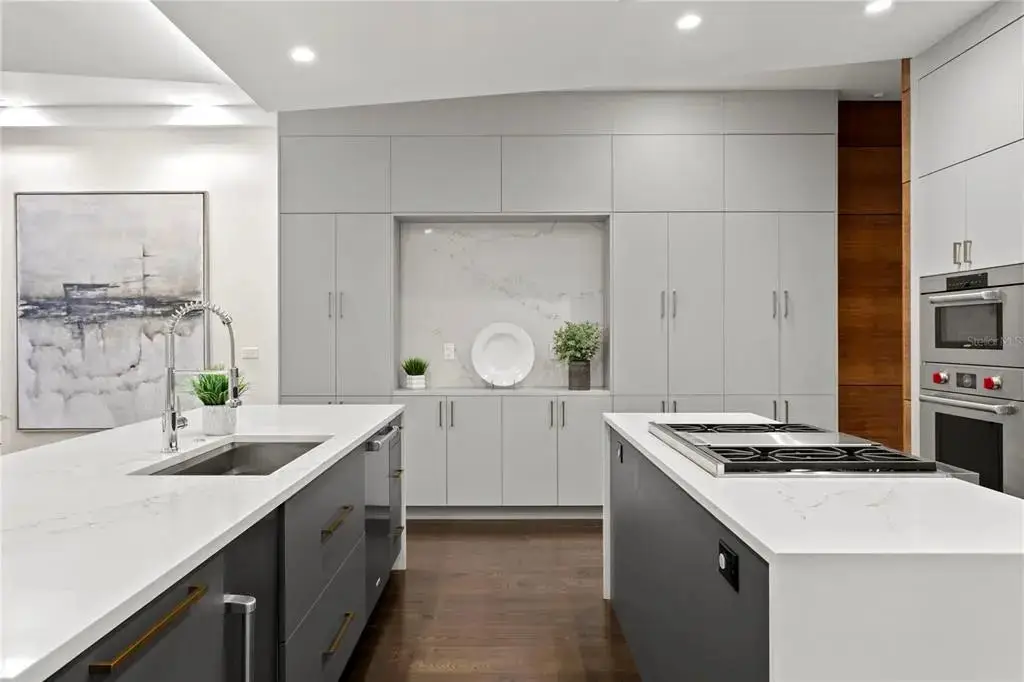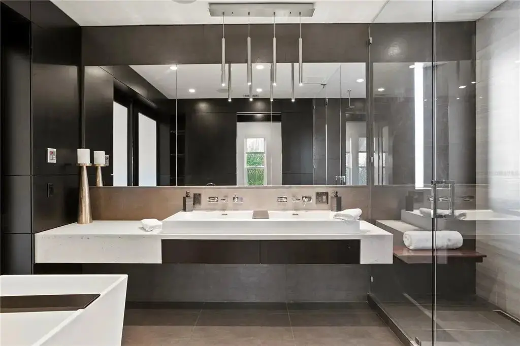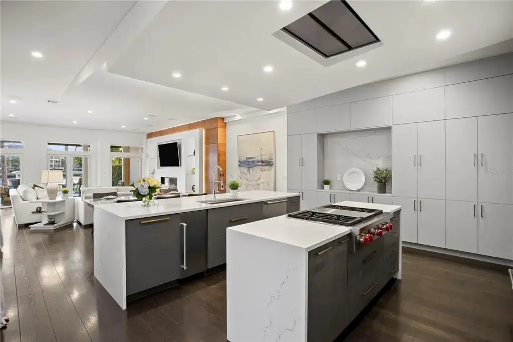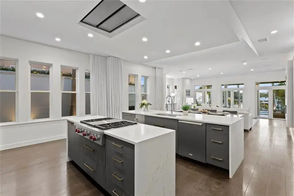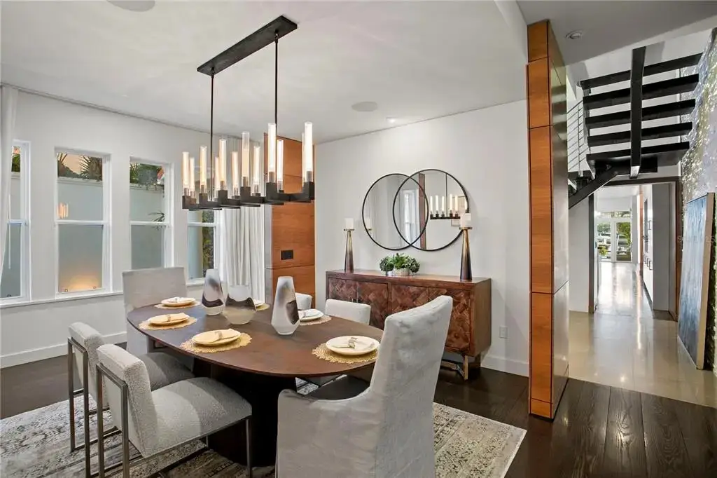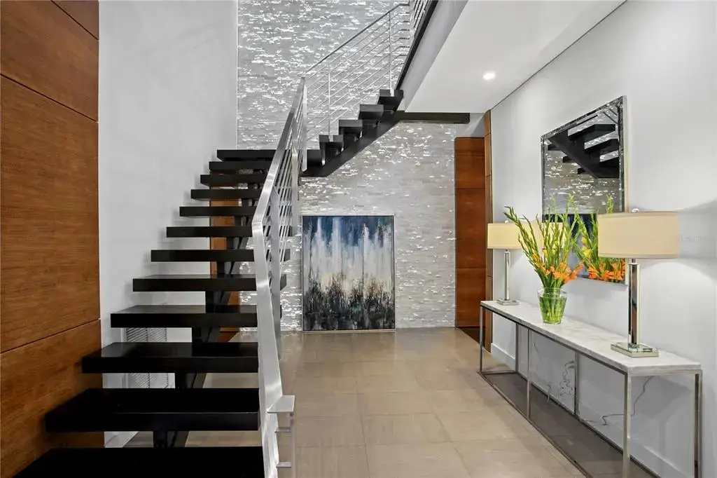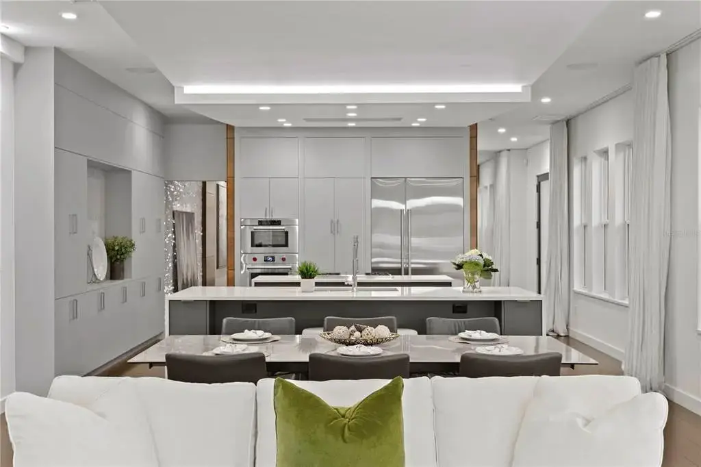 Welcome home to the pinnacle of casual sophistication on Harbour Island, where a completely redesigned three-level waterfront residence redefines luxury living in Tampa Bay. Framed by the artistry of SOL Design Architecture, this home greets you with a front entry hallway that effortlessly unfolds into a luminous great room. Towering windows capture daily sunsets over the water, while seamless sightlines invite the outdoors in, setting the stage for both intimate evenings and grand gatherings. Step into the chef’s kitchen, where Wolf and Sub-Zero appliances stand ready beneath custom millwork and expansive storage. The great room flows to a cantilevered deck suspended above the water and adds an additional nearly 600 sf of outdoor living, complete with a private pool, spa, covered lanai, and built-in Wolfe outdoor kitchen. Whether you’re hosting sunset cocktails or slipping into your boat for a day on the water, every moment here feels both private and jubilant. On the first floor, discover a versatile bedroom suite—ideal as a guest retreat, home office, or private workout studio—with its own ensuite bath. A solid steel and wood floating staircase sweeps you upward to a dedicated media and game room, where a wet bar and second-floor balcony offer panoramic water vistas. Two additional bedrooms share a nicely appointed full bath with double vanities and oversized tub and shower with chic finishes and beautiful pendant lights. Ascend to the third floor and enter an entire wing devoted to the primary suite, a five-star sanctuary overlooking the glistening waters. The spa-inspired bathroom flows directly into the bedroom, delivering uninterrupted water views from the oversized soaking tub to the glass doors. An adjacent custom closet provides an abundance of storage, ensuring that form and function unite in perfect harmony. The location of this residence is superior to others within the neighborhood providing exceptional privacy and expansive views, unlike others in the neighborhood, as it abuts the prestigious Pointe neighborhood. Harbour Island’s 24-hour guarded gates ensure serenity, yet you’re mere steps from Tampa’s vibrant Riverwalk, Bayshore Boulevard, Water Street, and the city’s premier arts and dining districts. Commuters appreciate quick access to I-275, the Lee Roy Selmon Expressway, and Tampa International Airport, making every aspect of daily life effortless. Move right in and begin living the waterfront dream you’ve always imagined—sunsets, sailing, and sophisticated entertaining await.