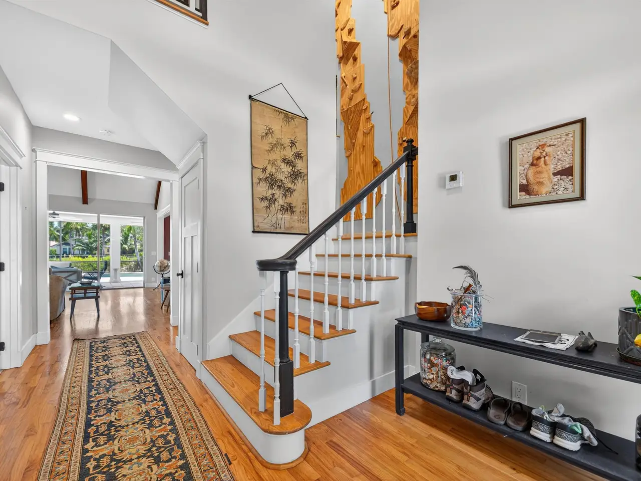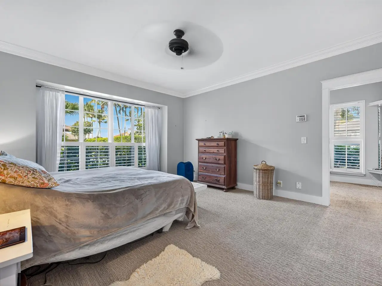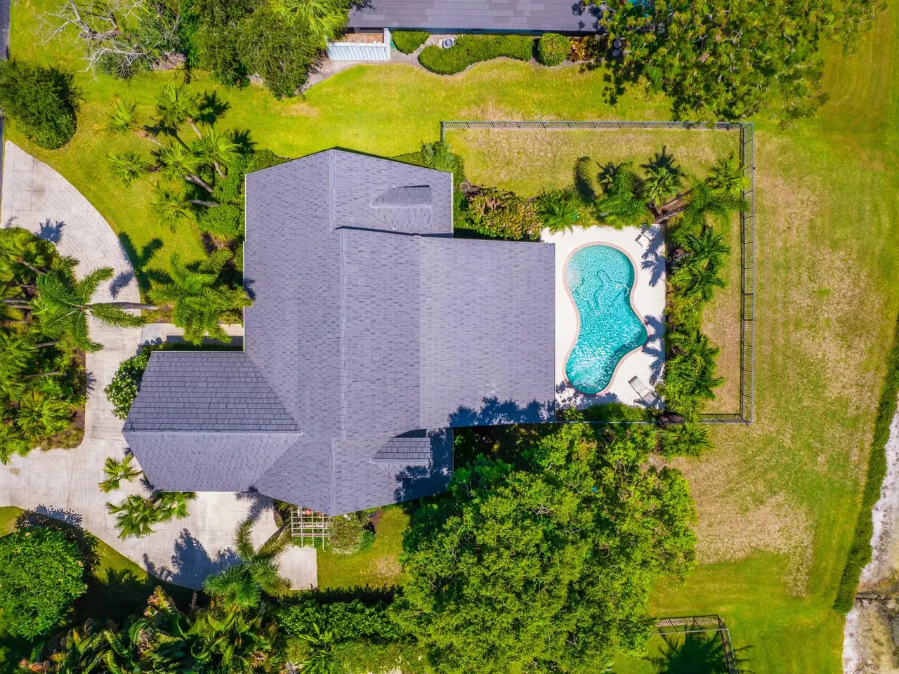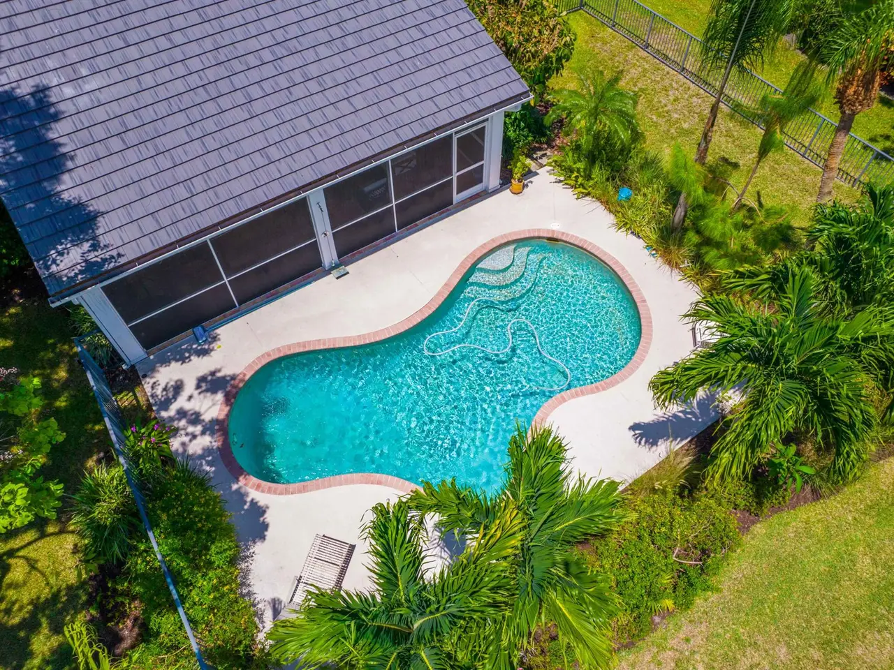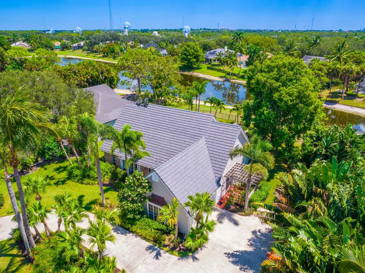 Nestled in the picturesque, tree-lined community of River Ridge, this inviting home blends comfort, style, and convenience. Set on a peaceful lake and just minutes from the beach, it offers a relaxed Florida lifestyle in a private, gated setting. Brand new 2025 Roof. The primary suite is located on the main floor and features plantation shutters, a large walk-in closet plus a built-in closet, and a spacious master bath. It also connects to a versatile flex room that works perfectly as an office, nursery, or guest space. The living room is filled with natural light with soaring ceilings, creating an open, welcoming atmosphere for everyday living or entertaining. Sliding doors lead to the covered patio and pool area--an ideal spot for sunsets and entertaining.