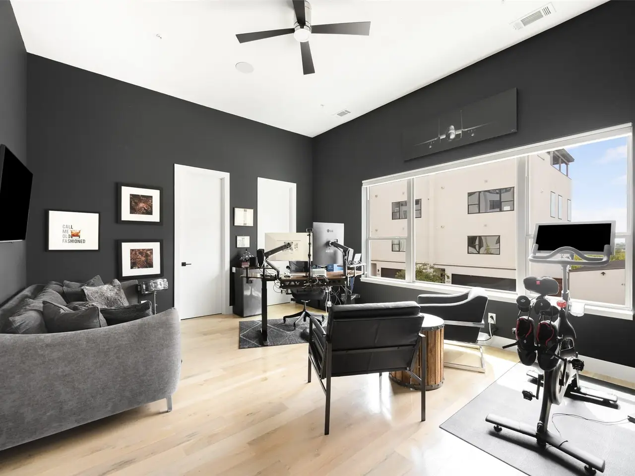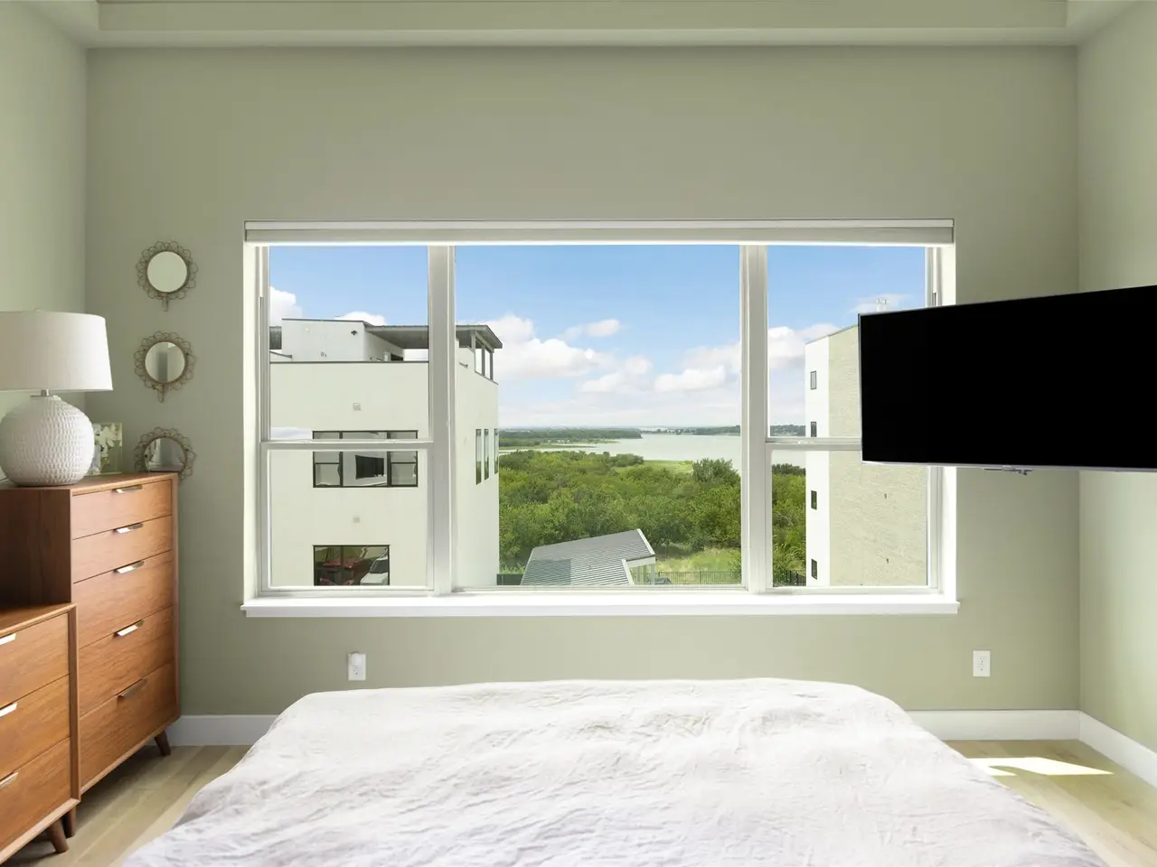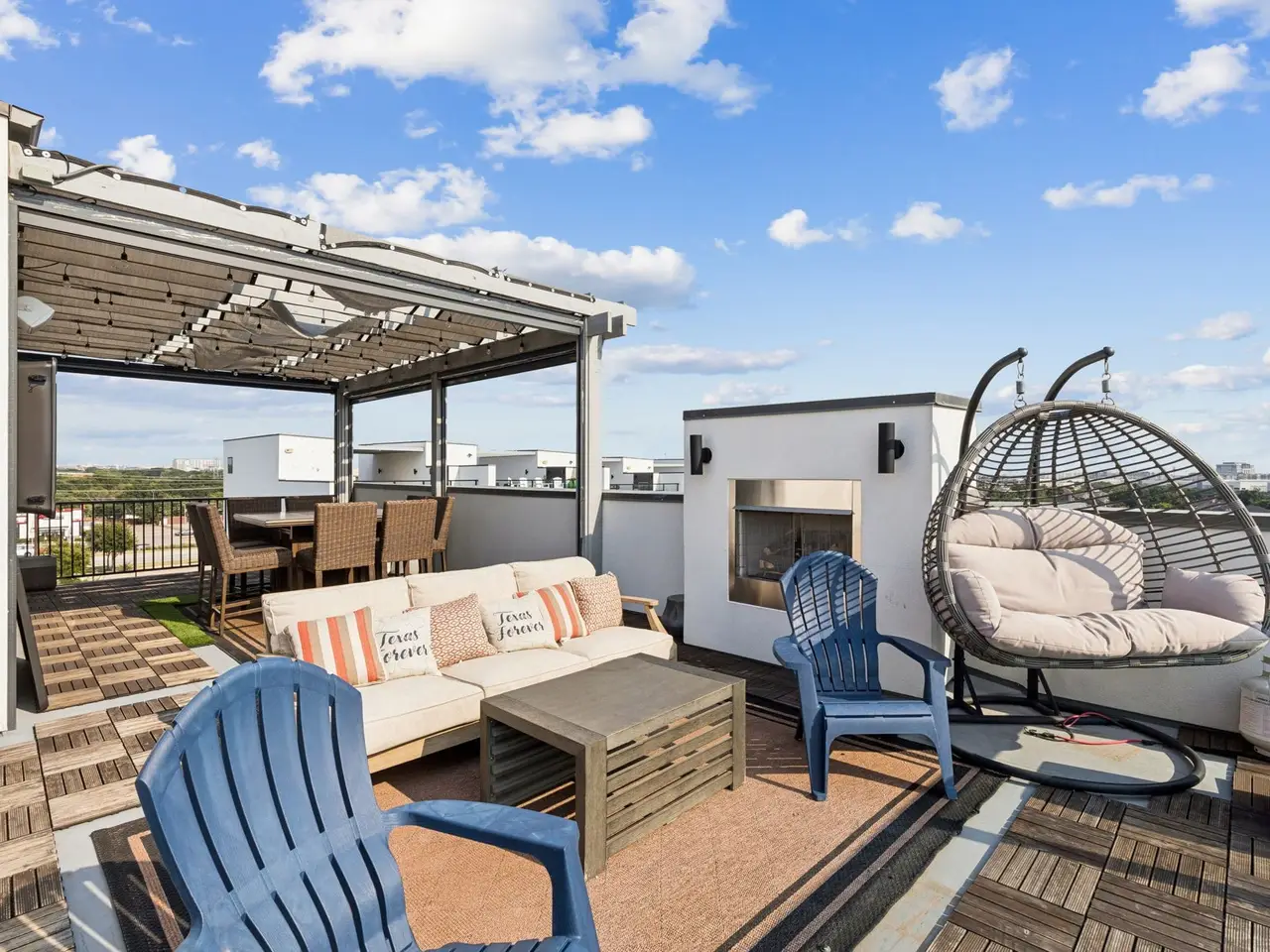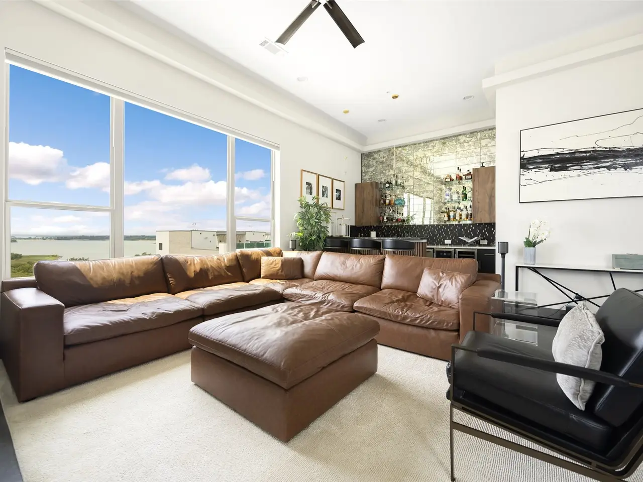 Luxury Corner Townhome with Rooftop Oasis + Smart Home Integration. Experience elevated living in this stunning four-story corner unit townhome featuring panoramic lake views + a fully integrated smart home experience. Built with contemporary elegance and top-tier materials, this newer construction boasts 5-inch wide plank real oak wood flooring throughout every level. With this Smart Home is complete control at your fingertips with whole-home audio, video, lighting, and blinds all operable via the RTI App. Speakers are integrated throughout every room, bathroom, and hallway. All lighting is on Lutron dimming switches, and every window is fitted with custom Hunter Douglas motorized shades. Step out to the Rooftop. Which is a true showstopper... complete with custom flooring, a built-in Coyote grill, outdoor fridge and sink, and two zones of outdoor speakers with a subwoofer. Relax year-round with a full sauna and motorized UV shades enclosing all sides of the pergola. An entertainers dream living room; the custom wet bar is the centerpiece of the living space, featuring a nugget ice maker, beverage fridge, dual-zone wine cooler, dishwasher, glass shelving, and a stunning glass tile backsplash. Step into the Chef's Kitchen with a professional Thermador appliance package, including a 48 6 burner range with griddle, steam and convection ovens, warming drawer, and commercial-grade hood. The showstopping 5x8 dual waterfall quartz island includes hidden storage and is complemented by a food-grade butcher block prep island. All cabinetry throughout the kitchen and bathrooms is high end Milania soft-close. Relax in the Spa-Inspired Bathrooms: Every bathroom features floating Milania vanities with vessel sinks. The primary suite showcases an oversized custom glass steam shower for the ultimate spa-like experience. This home effortlessly blends luxury, technology, + lifestyle perfect for the discerning buyer seeking modern elegance and convenience in one exceptional package.