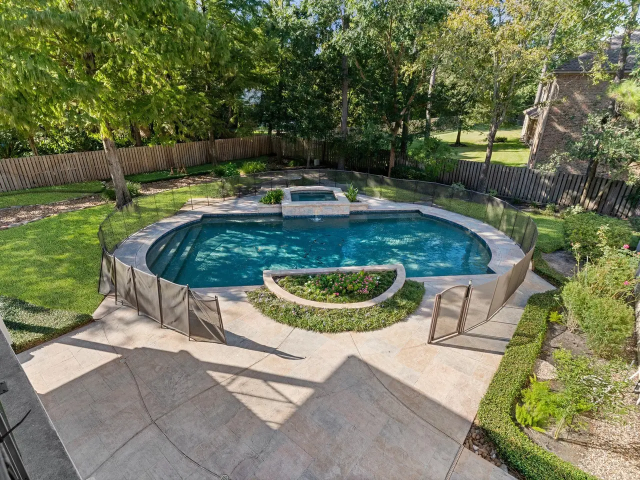 Discover timeless elegance in this stunning crafted custom home, ideally located on a quiet street in the heart of the Woodlands. Step through a luxury entryway that sets the tone of the home's exquite design. Featuring 4 spacious bedrooms, 4 opulent full baths, 2 half baths and soaring ceilings, the residence offers lights-filled living space designed for both comfort and style. Thoughtful details include custom millwork, built-ins, and rich architectural detail throughout. The updated Chef's kitchen features exquisite quartz countertops, premium stainless appliances, and abundant cabinetry, flowing seamlessly into a dramatic living area with a fireplace and panoramic views of the outdoor retreat. The luxurious primary suite offers a spa-like bath and custom walk-in closet. Step into a resort-style backyard featuring a sparking pool, lush landscaping, and a multiple lounging area, whole house generator. Ideally situated near world-class amenities and shopping.